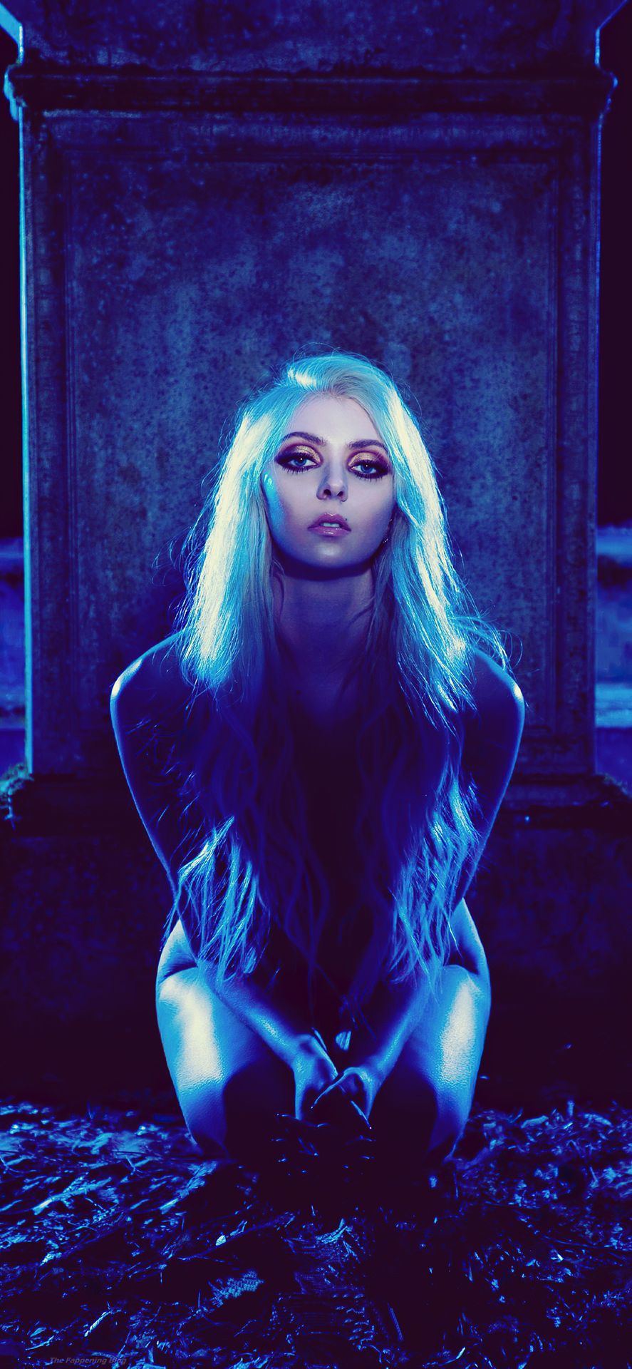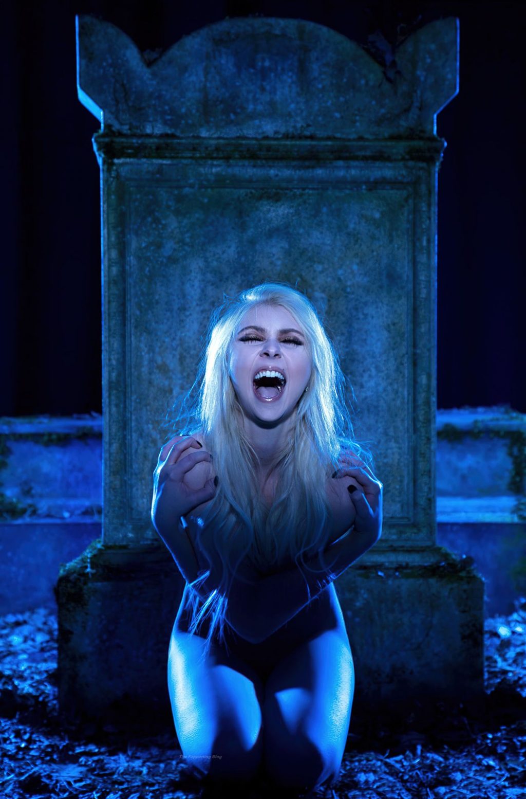 Confira as fotos nuas (cobertas) editadas de Taylor Momsen para seu álbum “Death By Rock And Roll” (2021). A cantora posa no cemitério sem roupas.