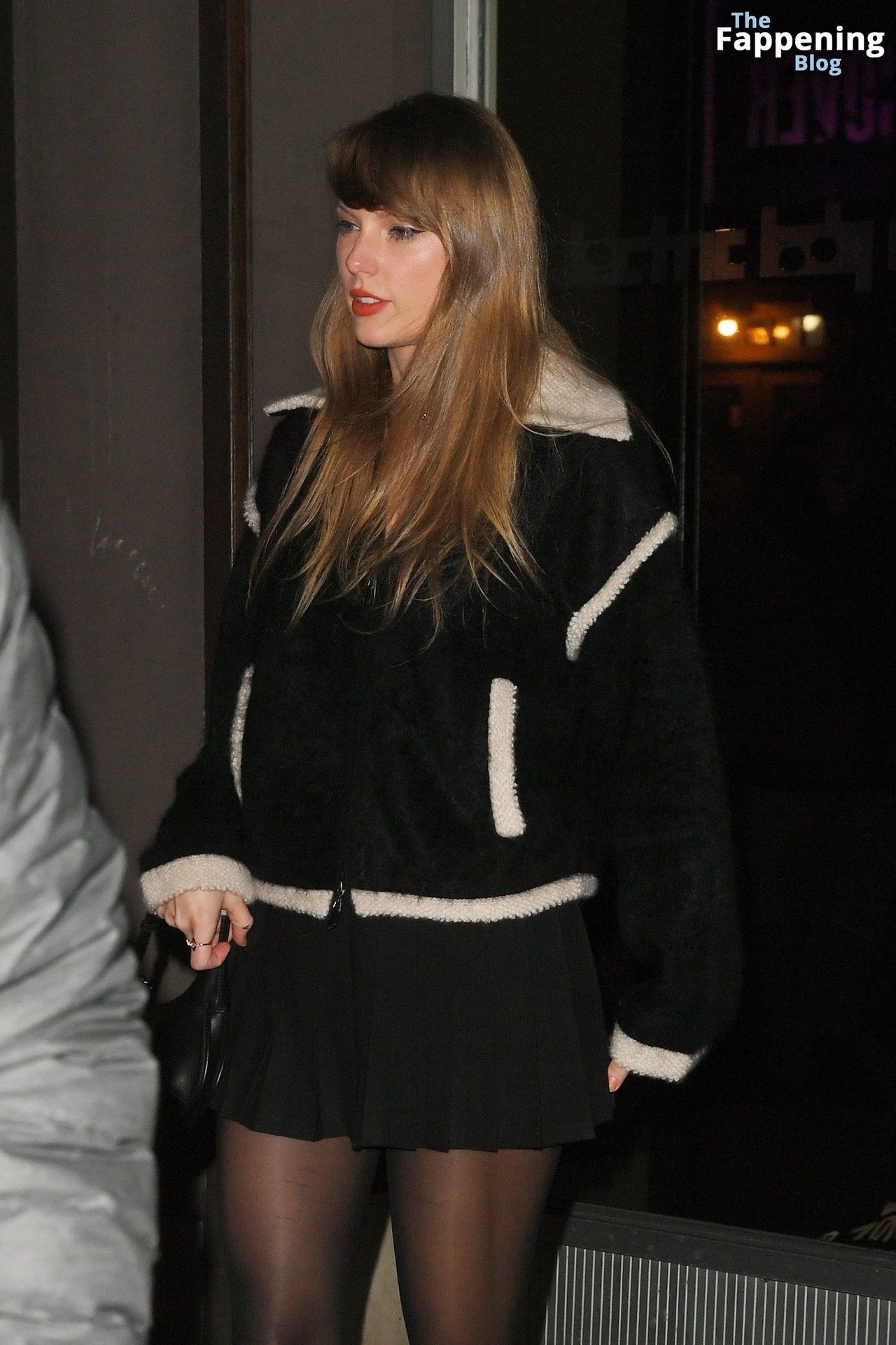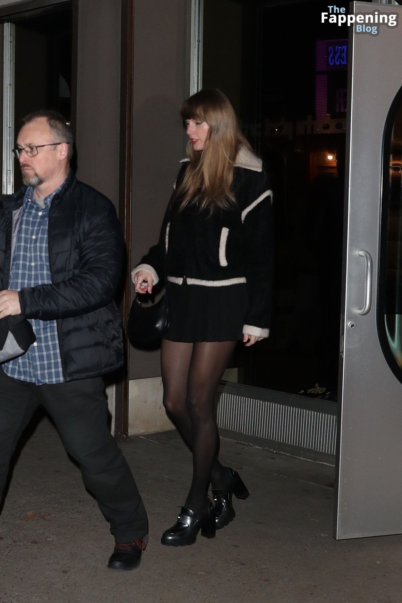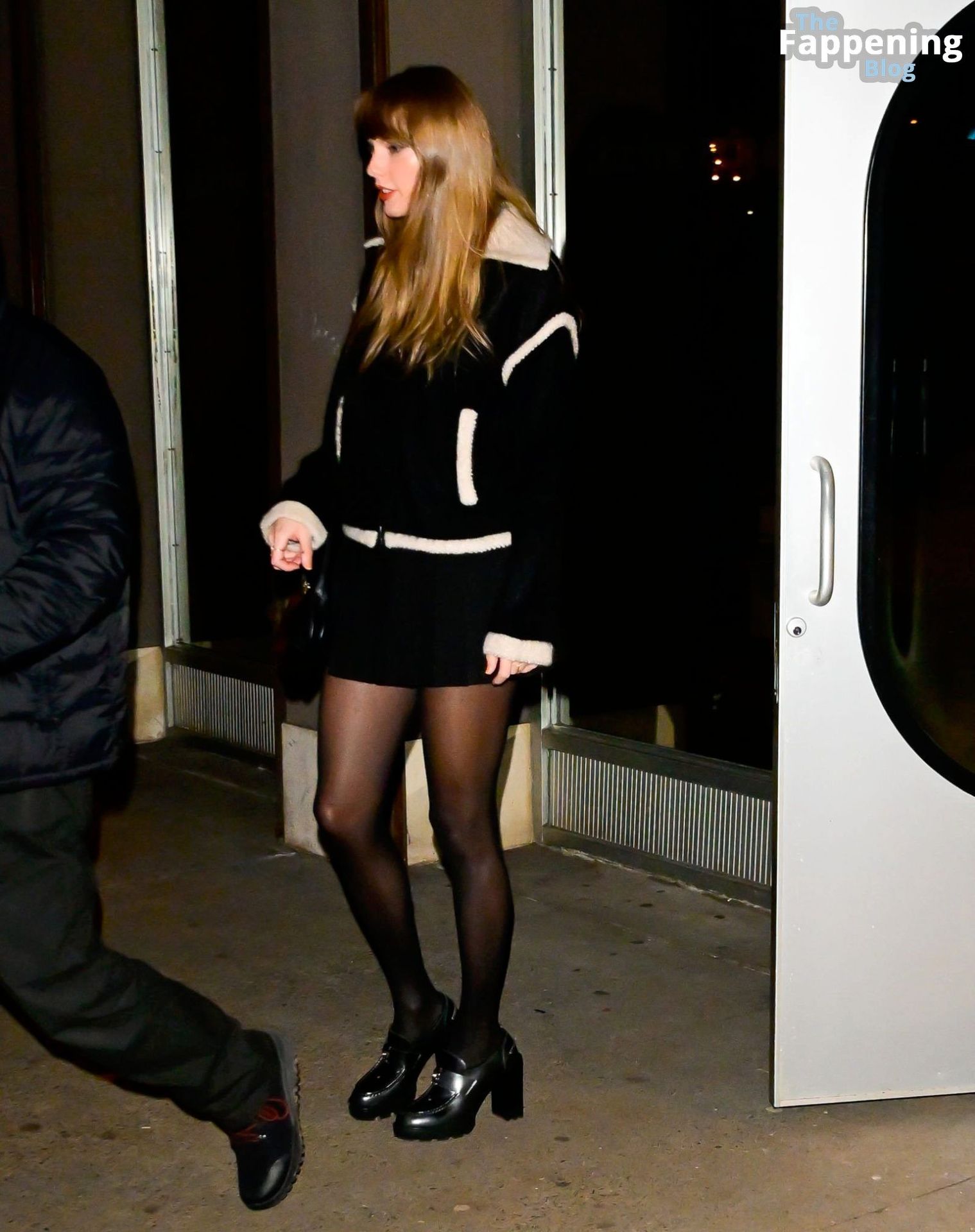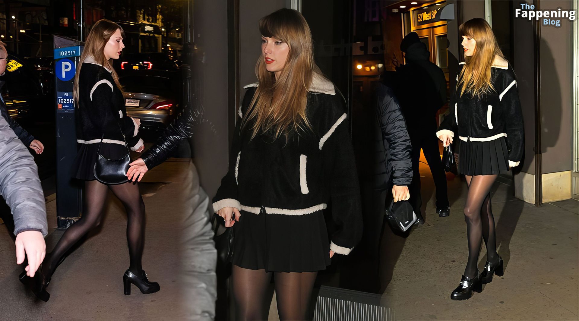 Confira Taylor Swift arrasando com meias pretas e uma minissaia, uma combinação de moda matadora que é cativante e totalmente fascinante enquanto ela sai do Electric Lady Studio em Nova York.