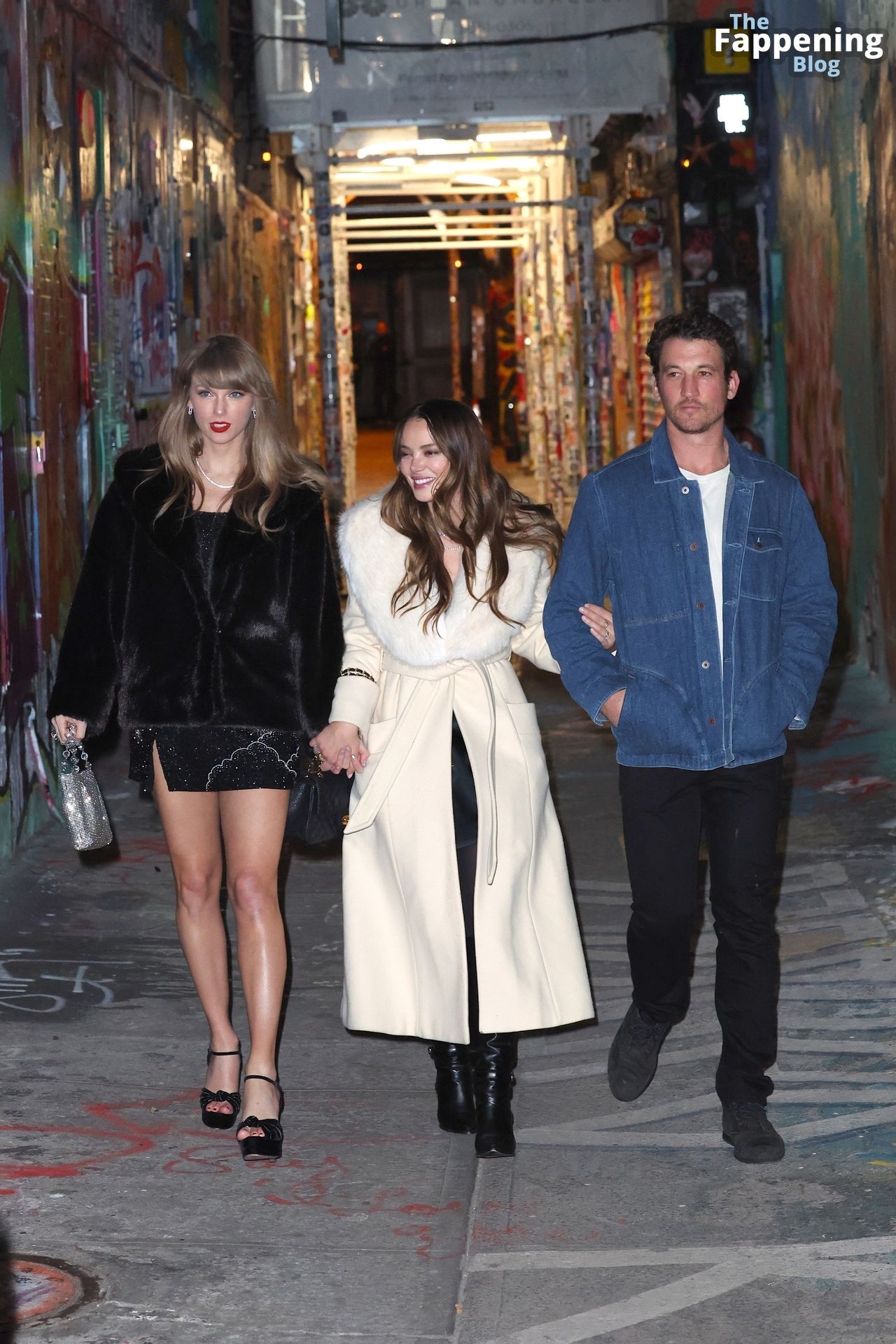 Taylor Swift e Blake Lively brilham com roupas combinando ao chegarem no The Box para a Festa de 34 Anos de Taylor Swift, 14/12/2023.
