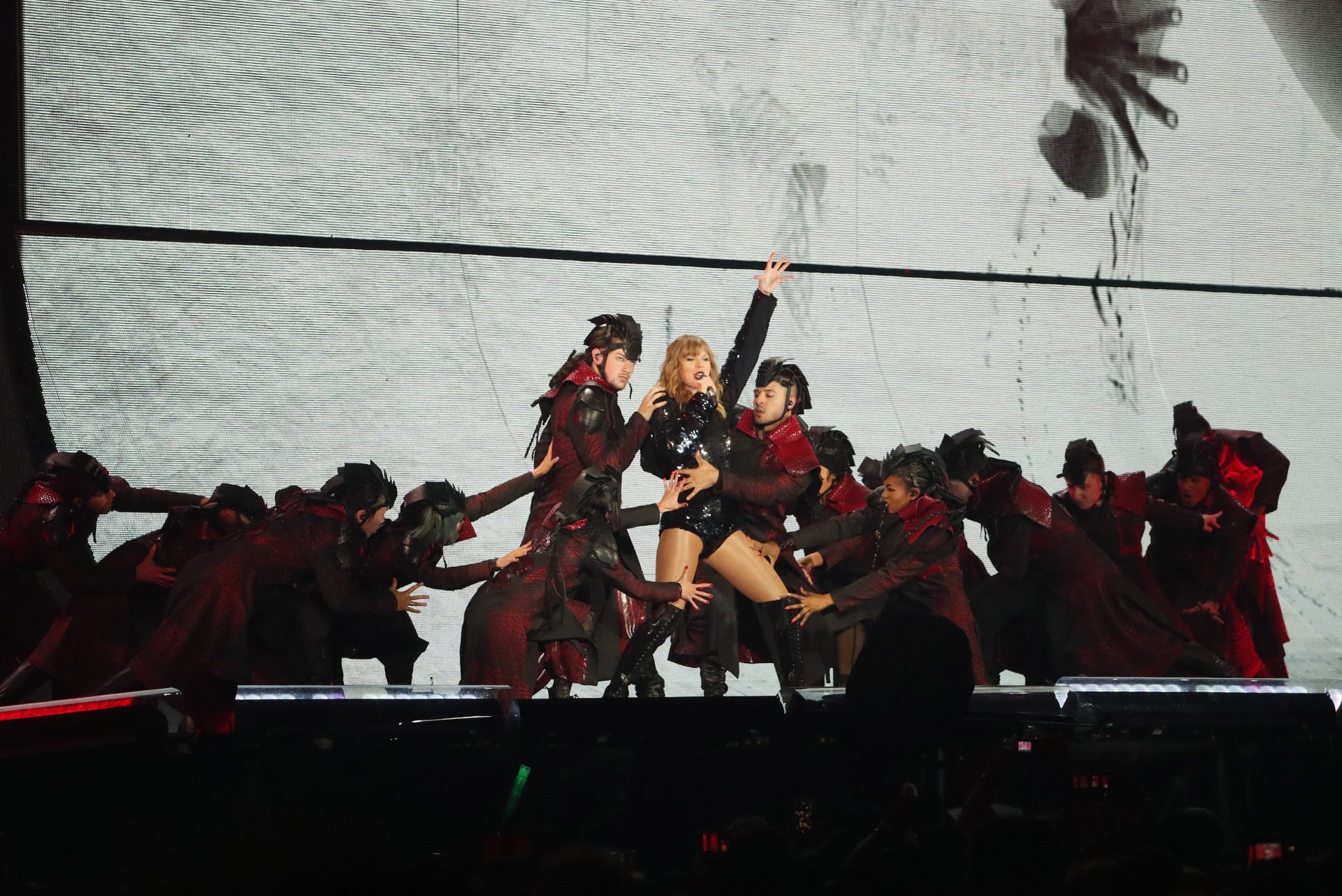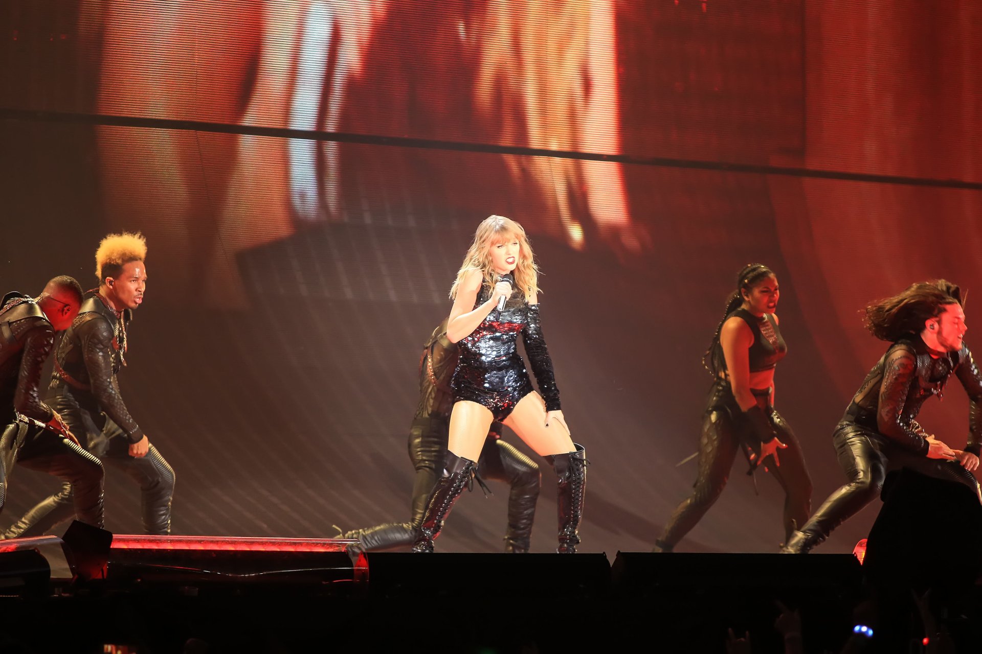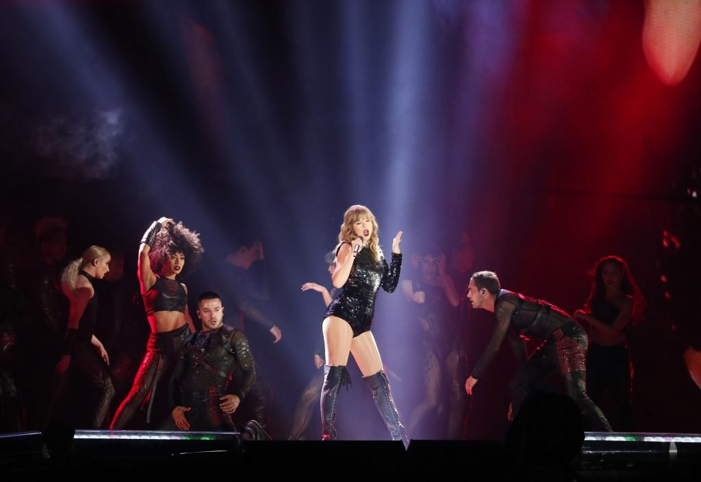 Taylor Swift se apresenta no palco durante a noite de abertura de sua turnê Reputation Stadium Tour 2018 no University of Phoenix Stadium em Glendale, Arizona, 08/05/2018. Taylor Alison Swift é uma cantora/compositora americana. Idade – 28 anos.
