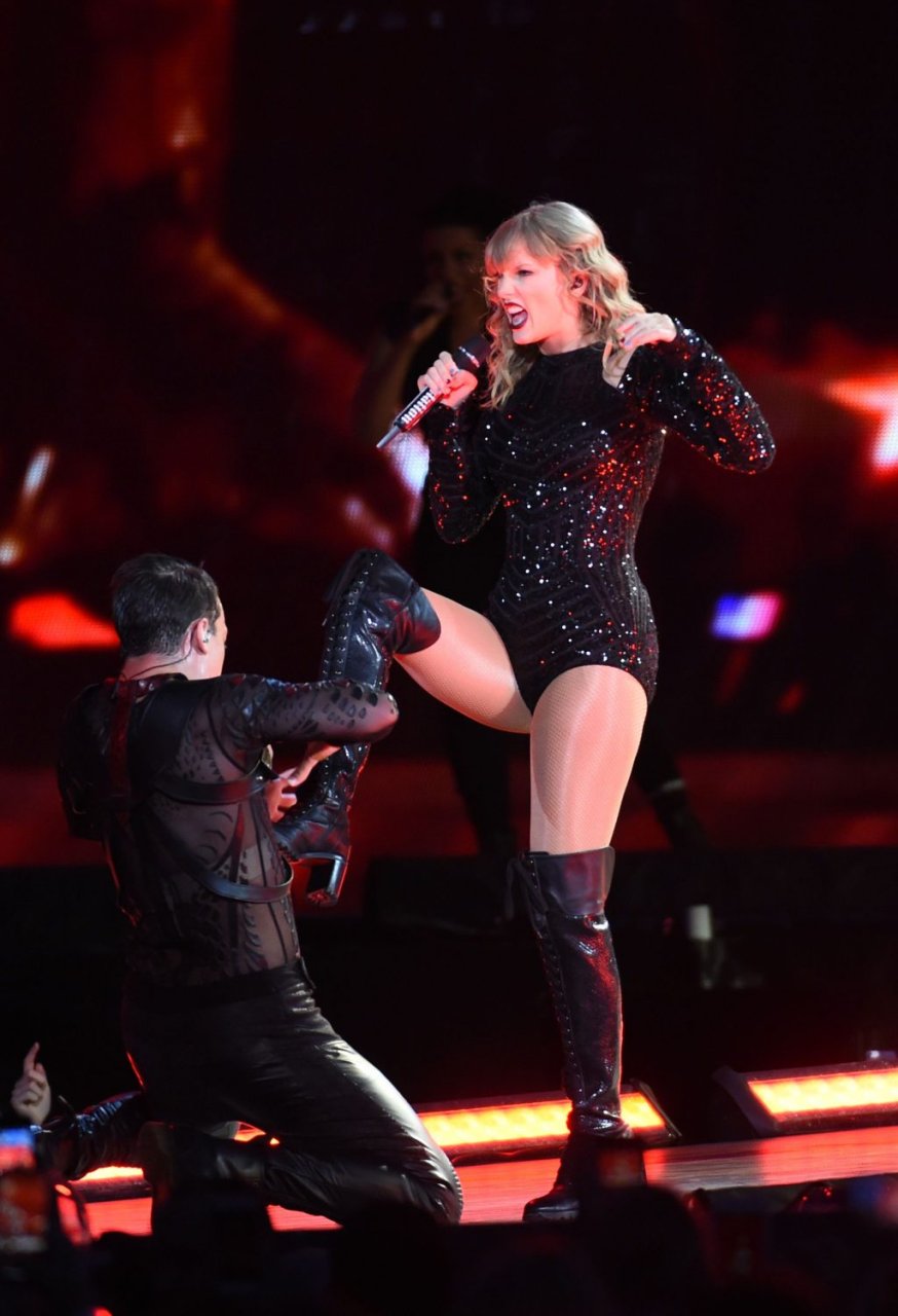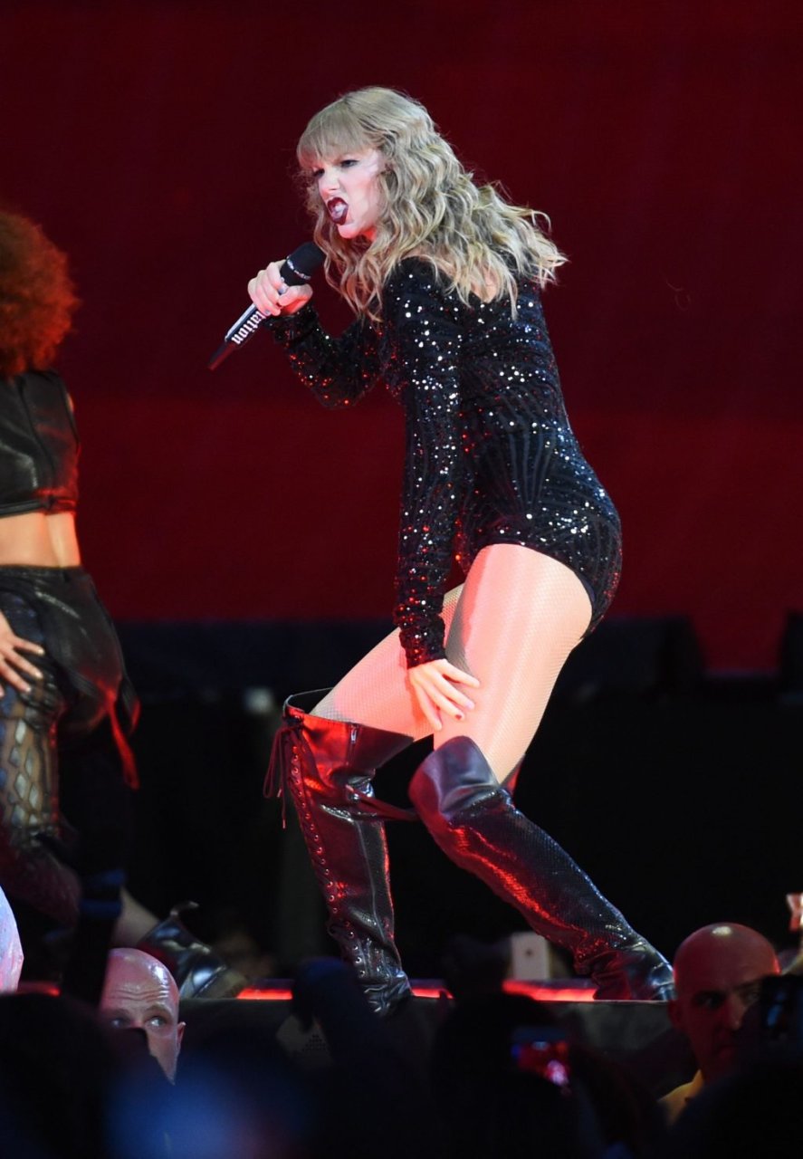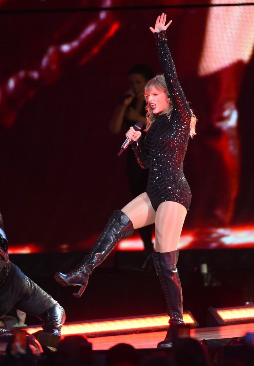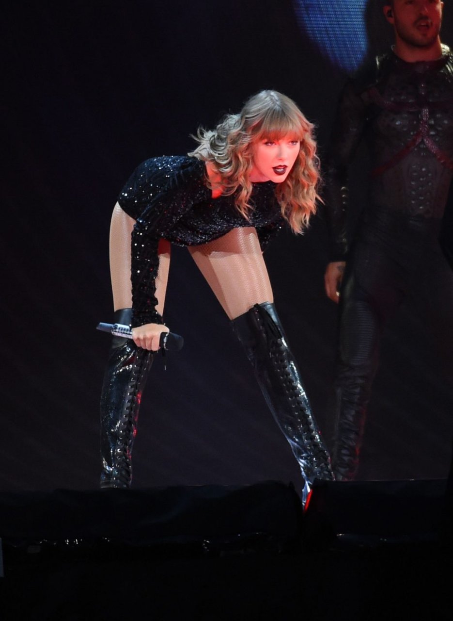 A cantora americana Taylor Swift se apresenta no concerto no Heinz Field, Pittsburgh, 08/07/2018. A superestrela de 28 anos usou seu body preto “clássico” e mostrou algumas poses eróticas no palco.