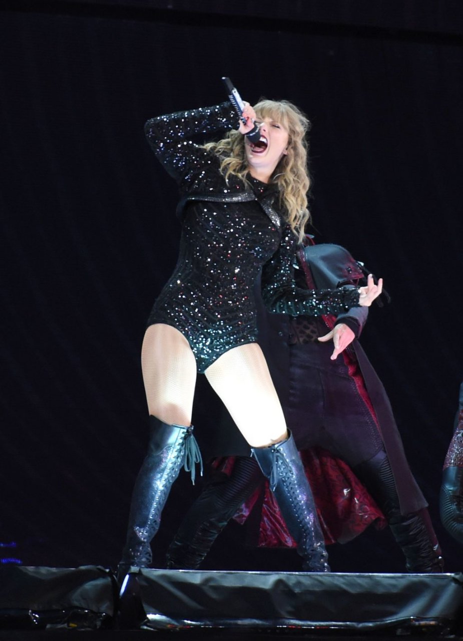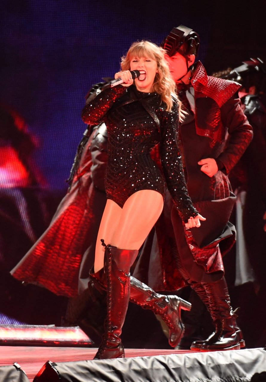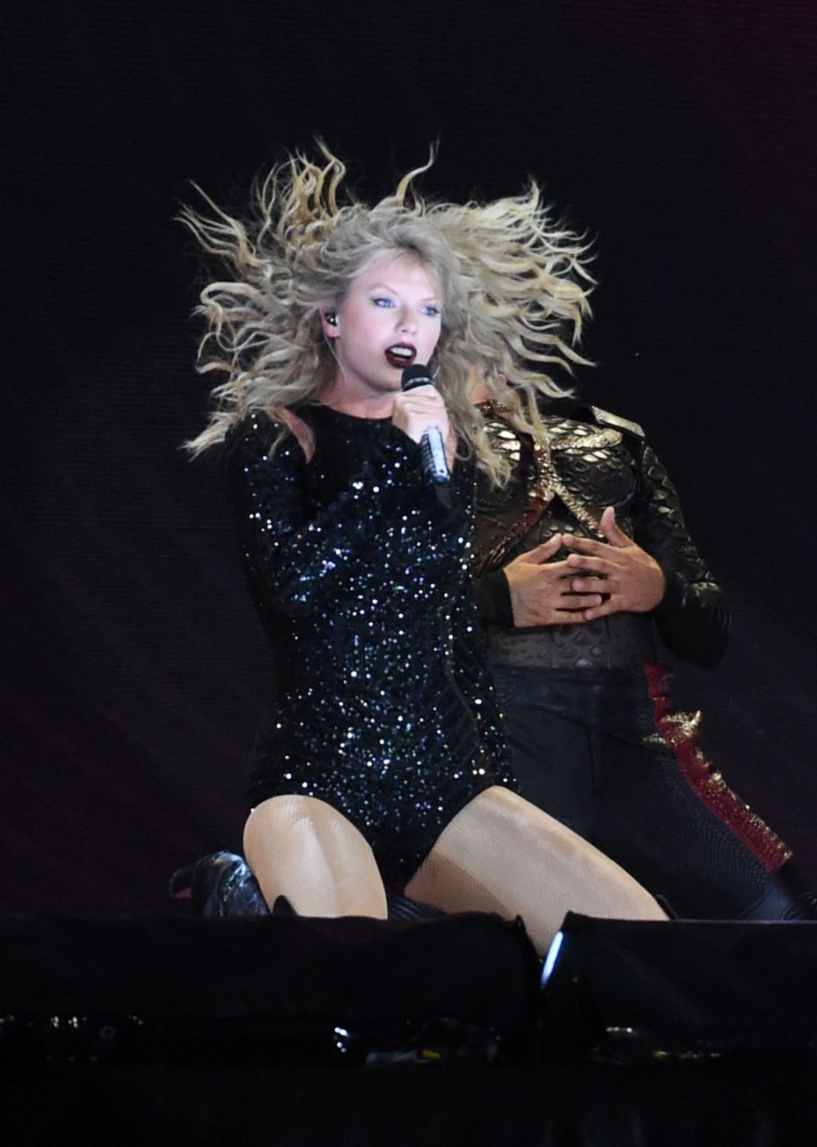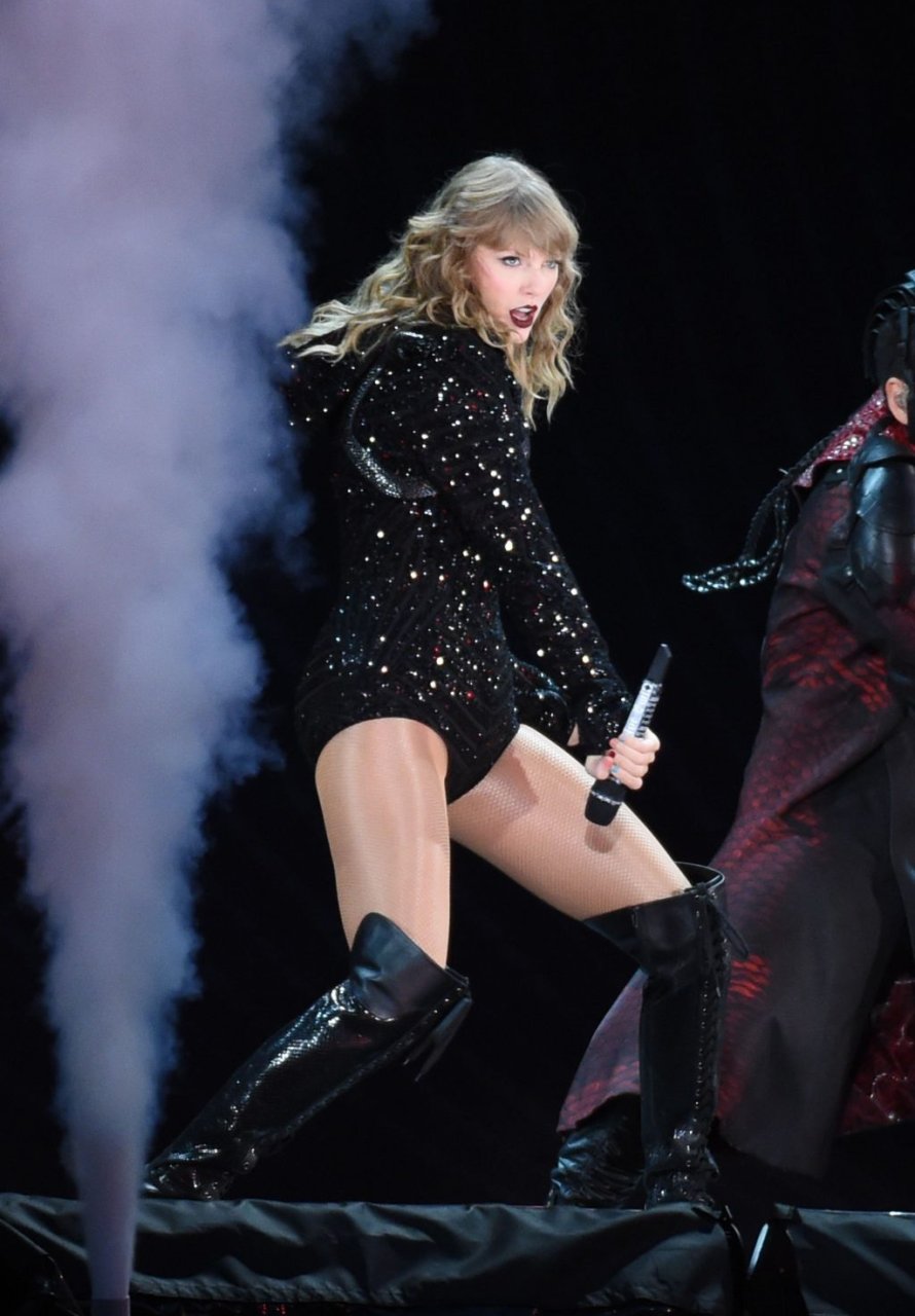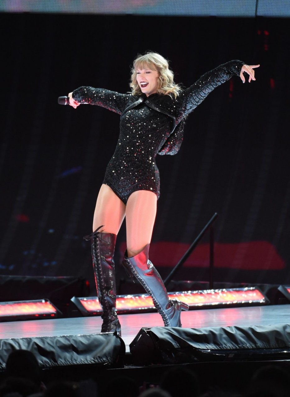 A cantora americana Taylor Swift se apresenta no concerto no Heinz Field, Pittsburgh, 08/07/2018. A superestrela de 28 anos usou seu body preto “clássico” e mostrou algumas poses eróticas no palco.