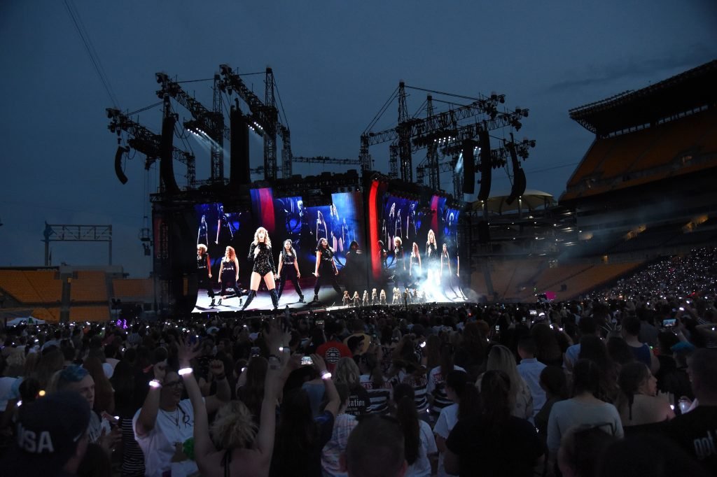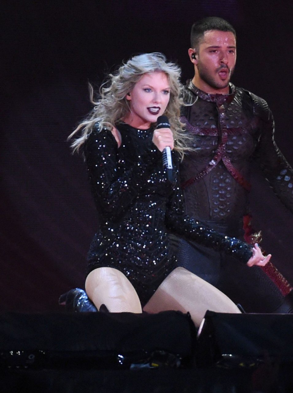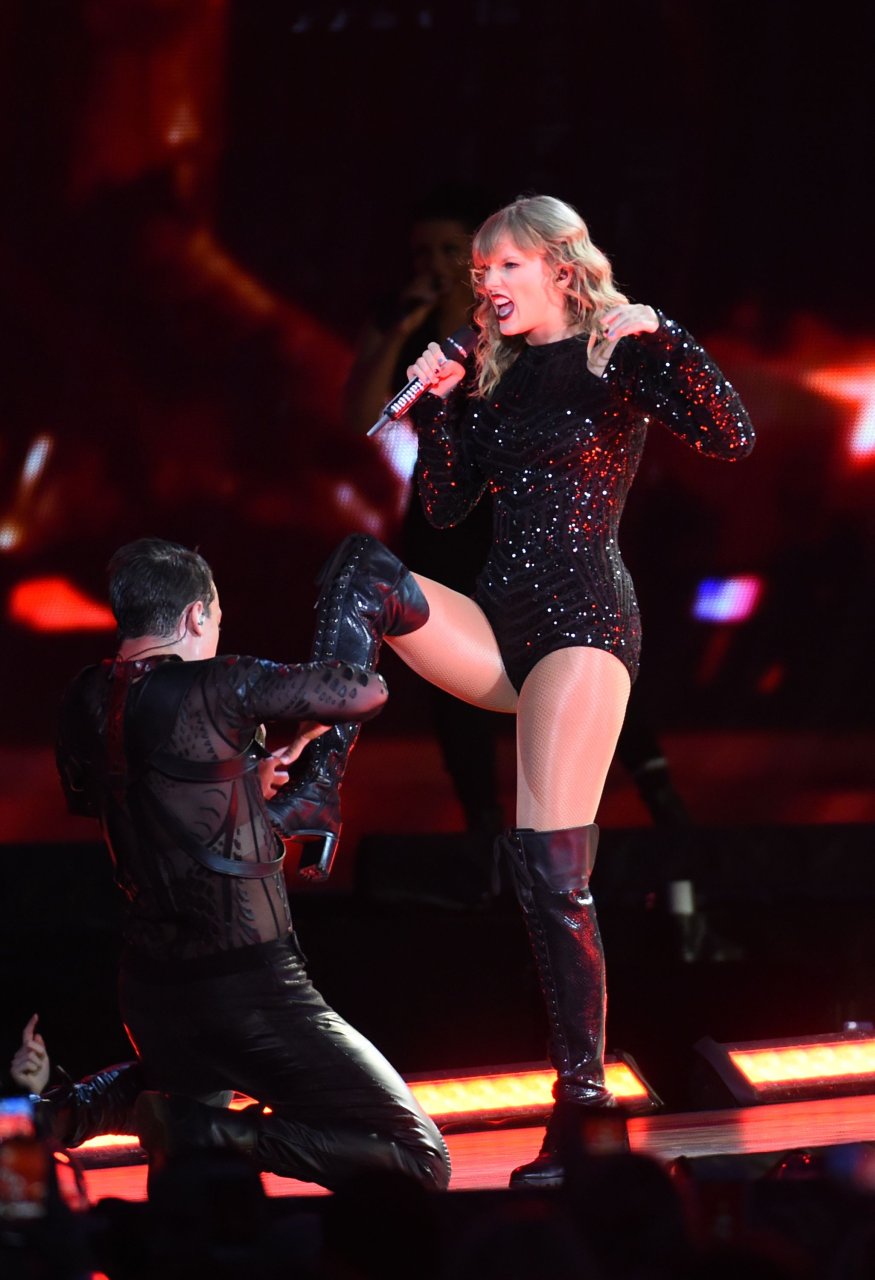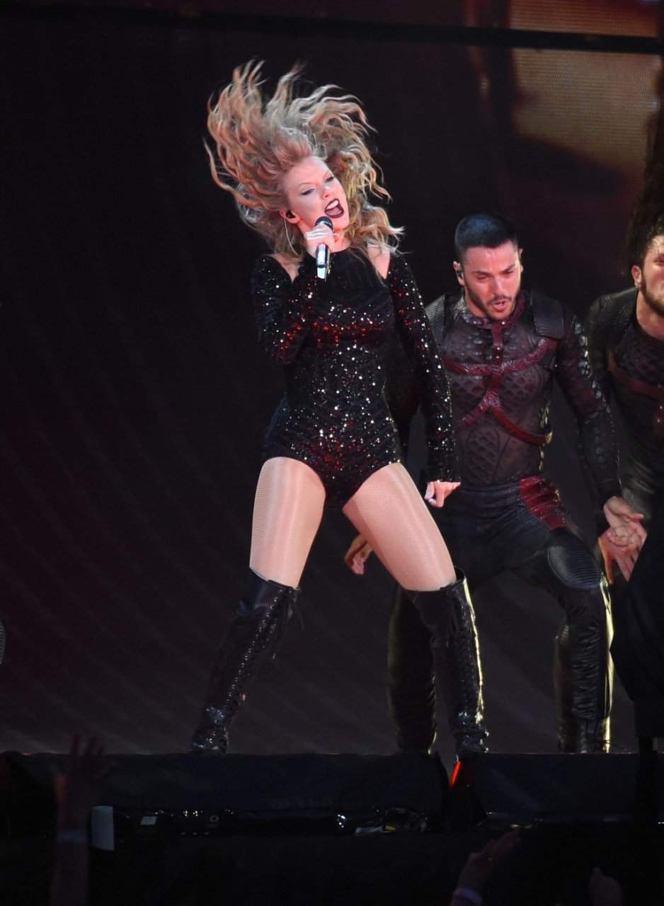 A cantora americana Taylor Swift se apresenta no concerto no Heinz Field, Pittsburgh, 08/07/2018. A superestrela de 28 anos usou seu body preto “clássico” e mostrou algumas poses eróticas no palco.