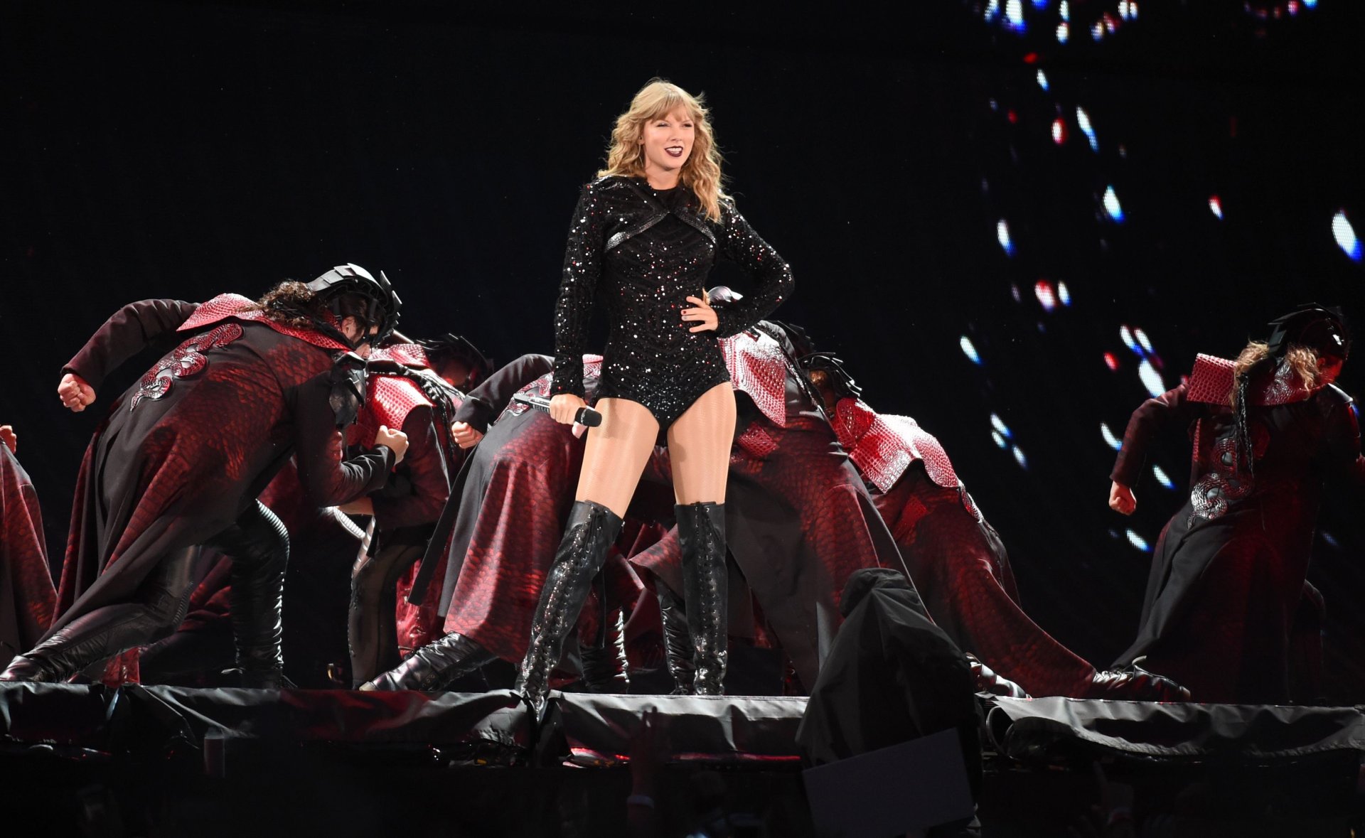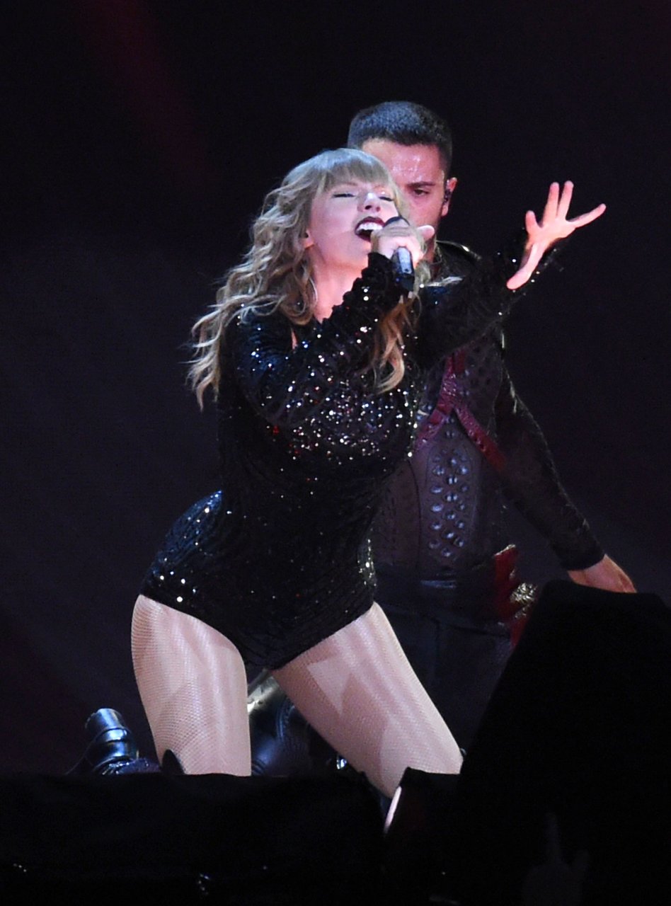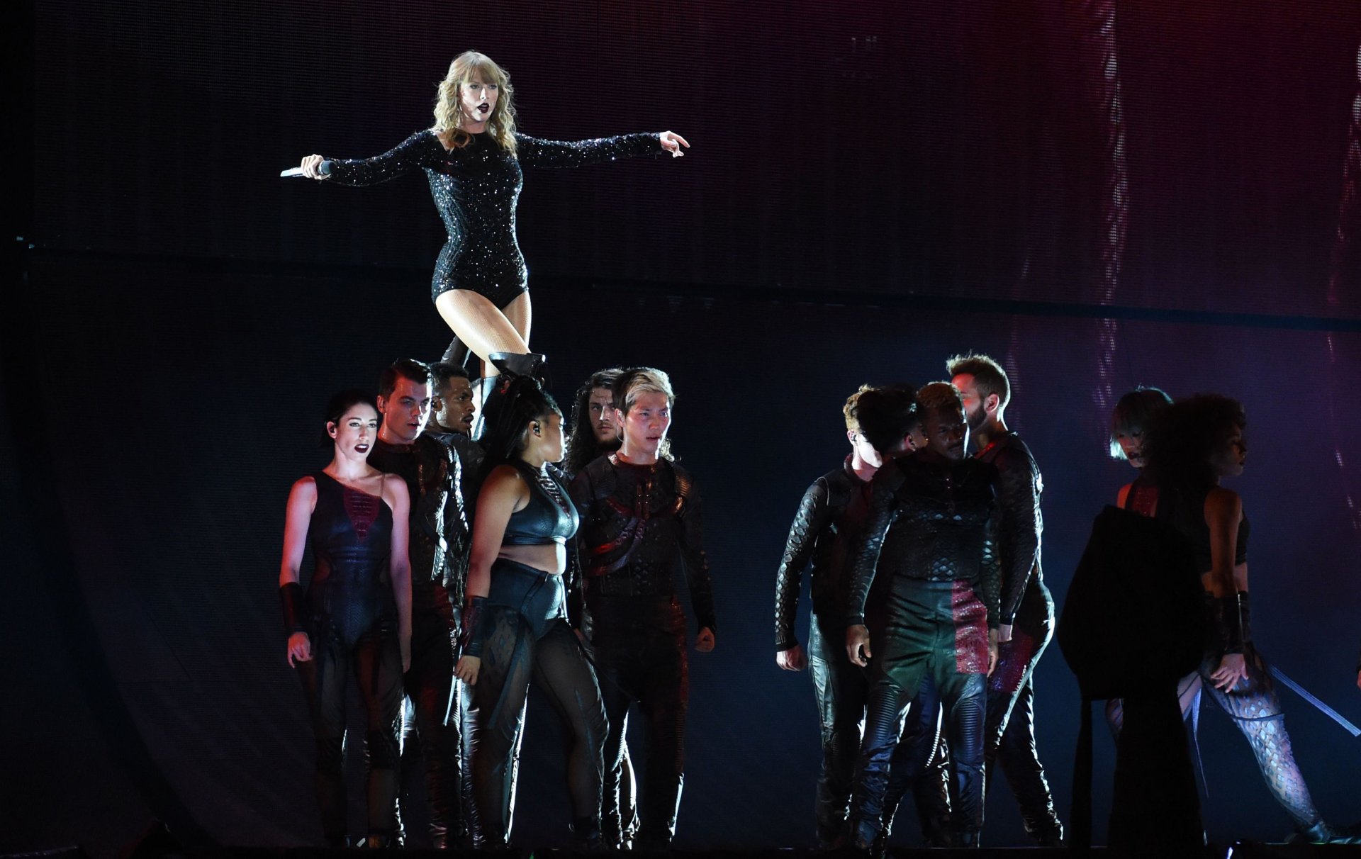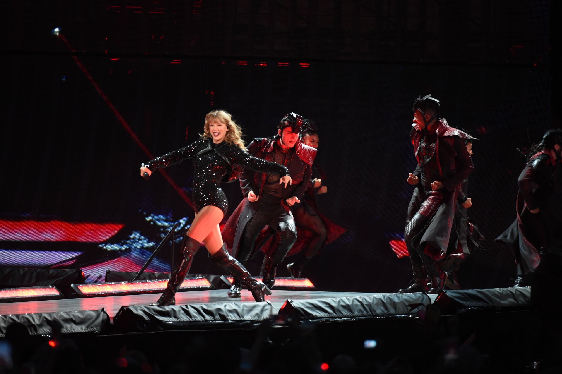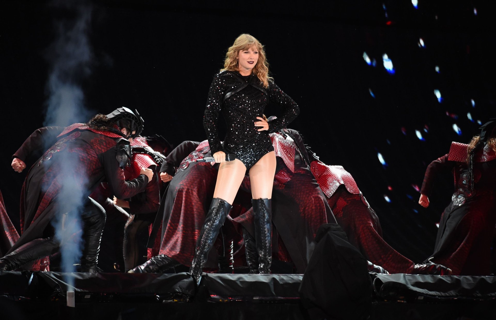 A cantora americana Taylor Swift se apresenta no concerto no Heinz Field, Pittsburgh, 08/07/2018. A superestrela de 28 anos usou seu body preto “clássico” e mostrou algumas poses eróticas no palco.