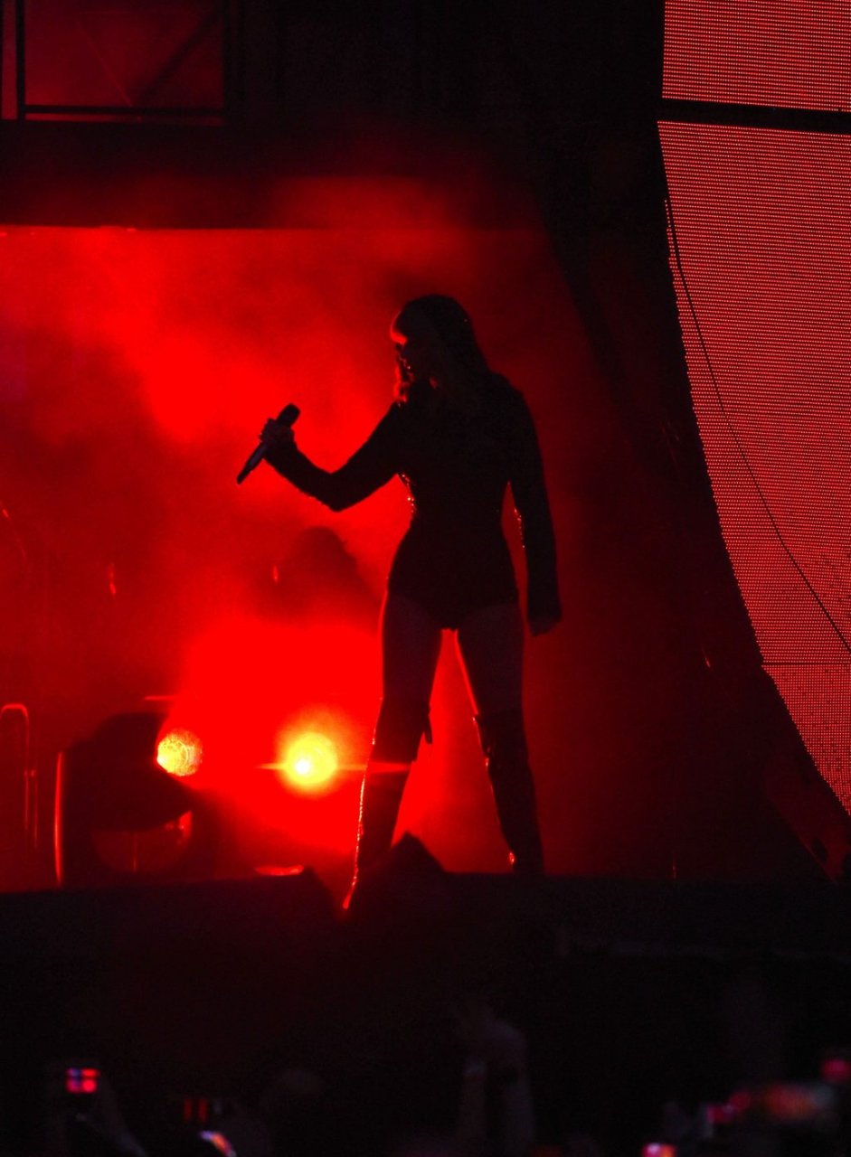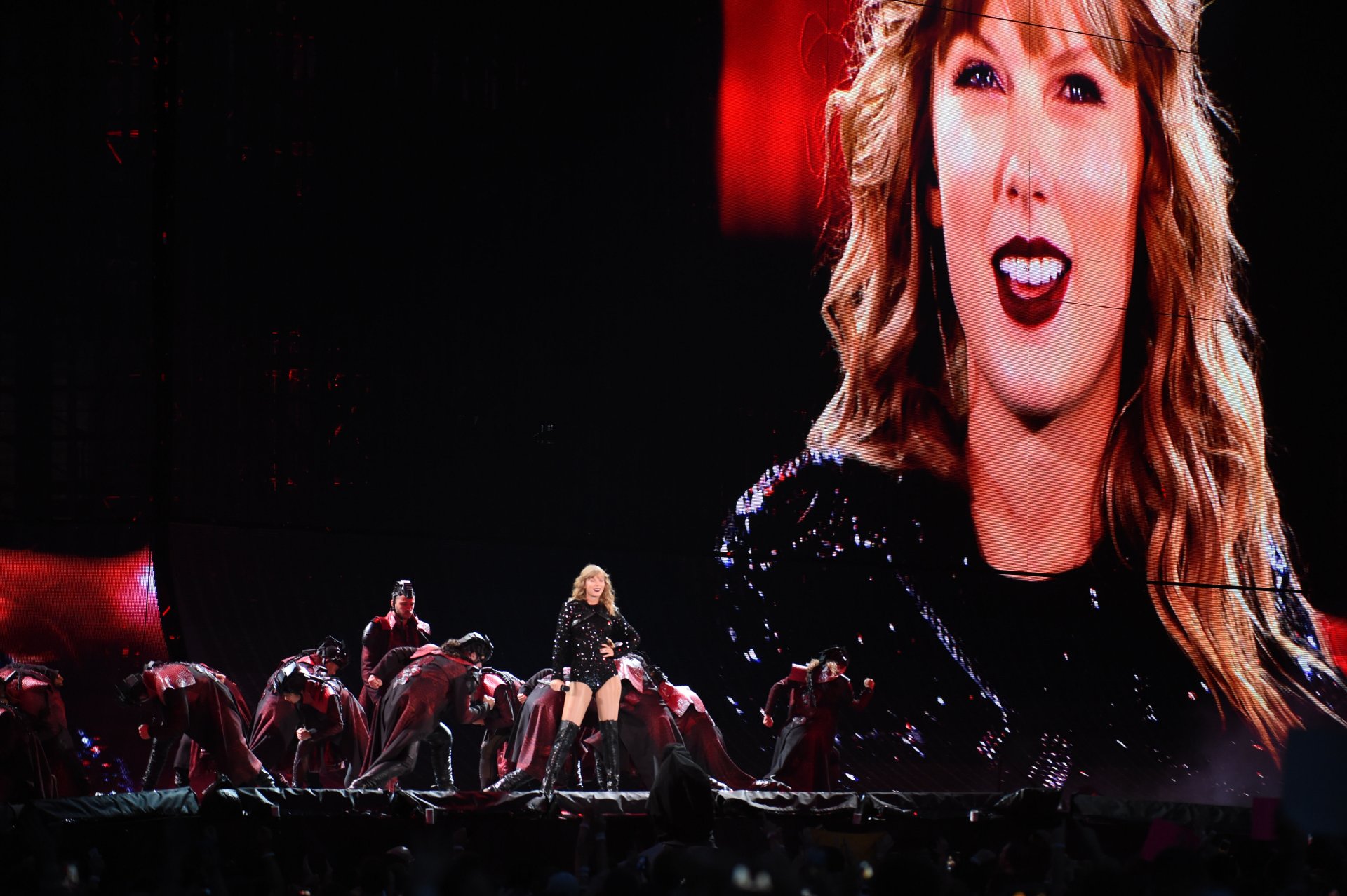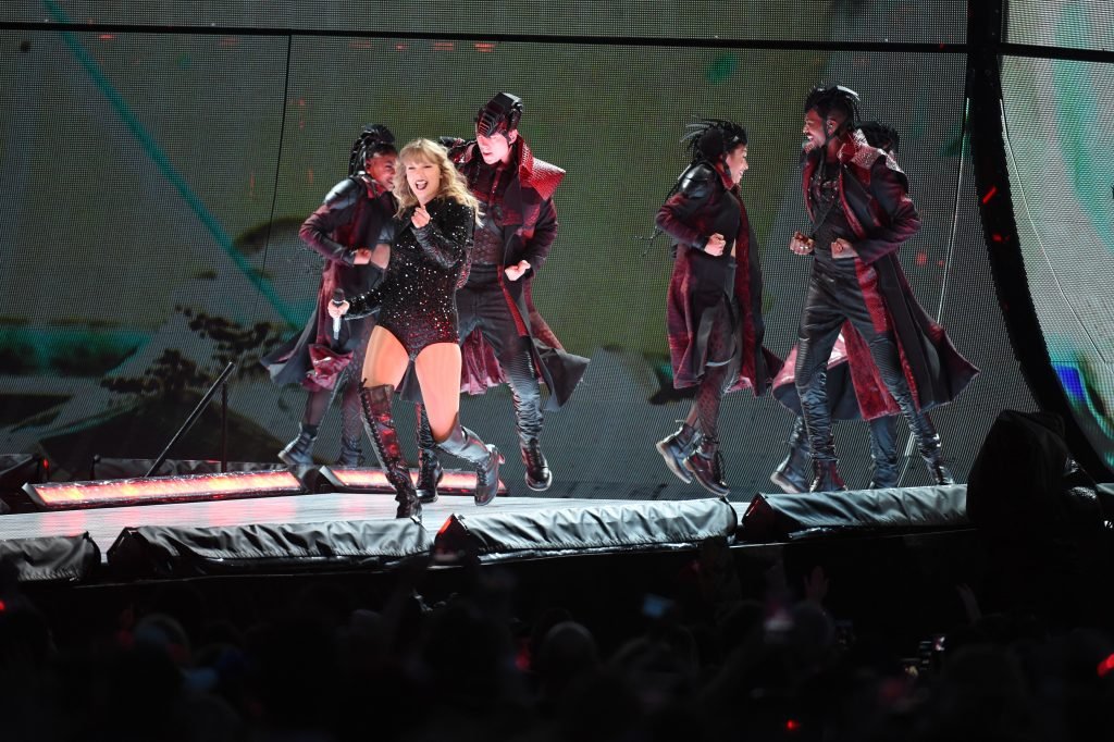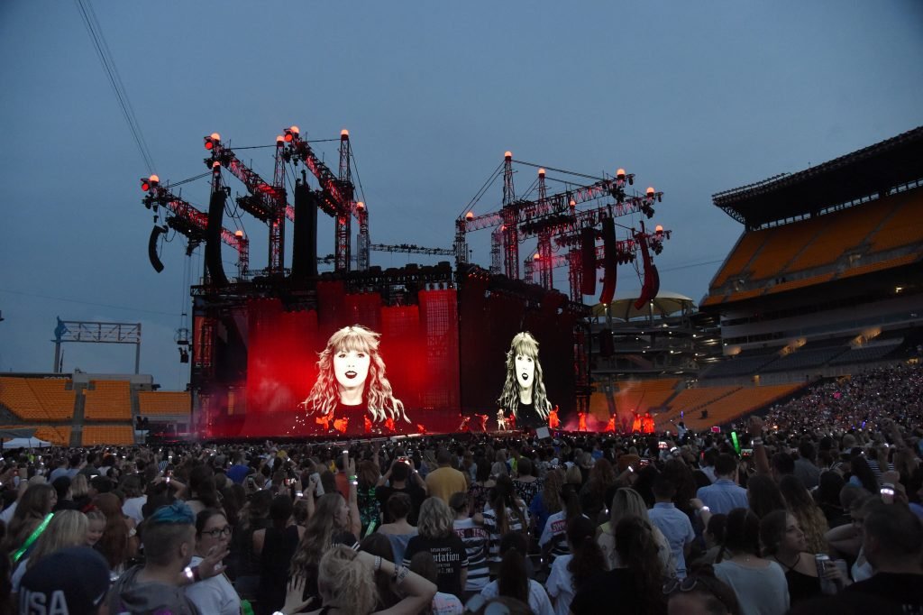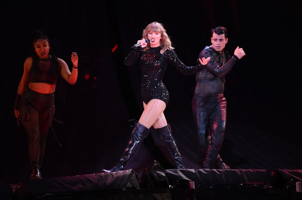 A cantora americana Taylor Swift se apresenta no concerto no Heinz Field, Pittsburgh, 08/07/2018. A superestrela de 28 anos usou seu body preto “clássico” e mostrou algumas poses eróticas no palco.