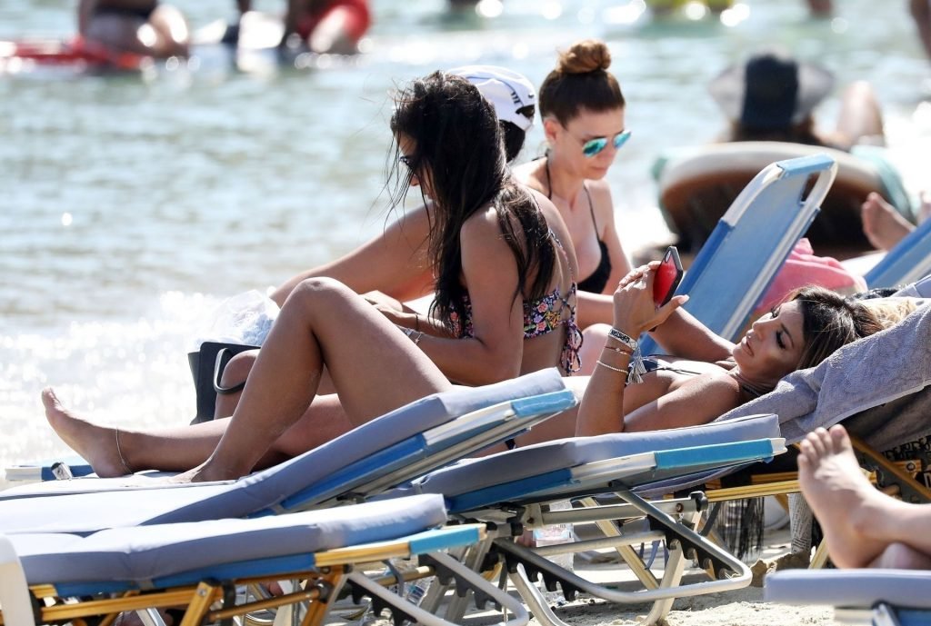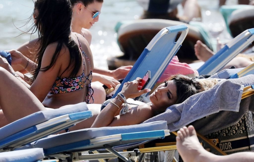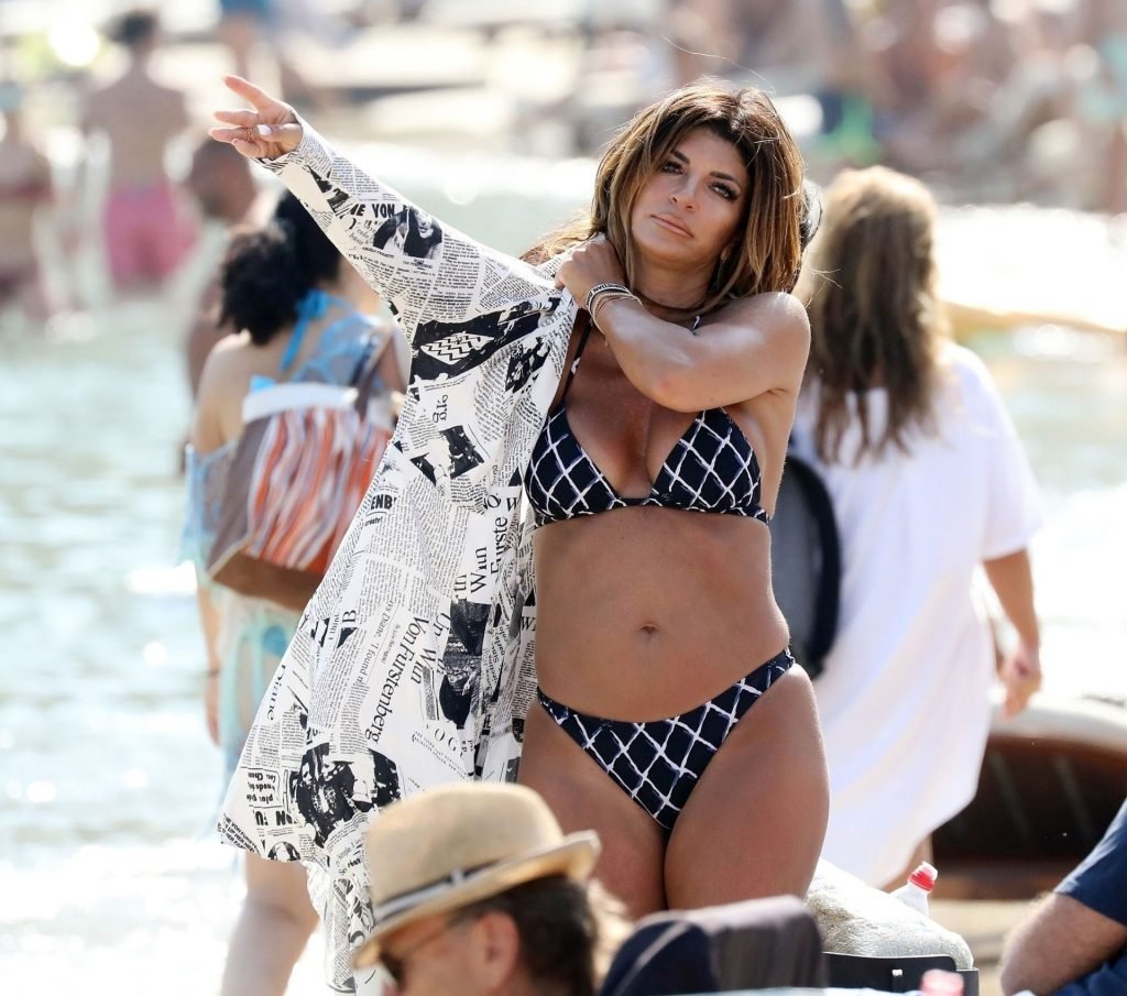 “The Real Housewives of New Jersey” estrela Teresa Giudice foi fotografada relaxando na praia enquanto aproveitava as férias de verão em Mykonos, 25/08/2019. A estrela do reality show parecia de bom humor enquanto dançava com suas amigas.