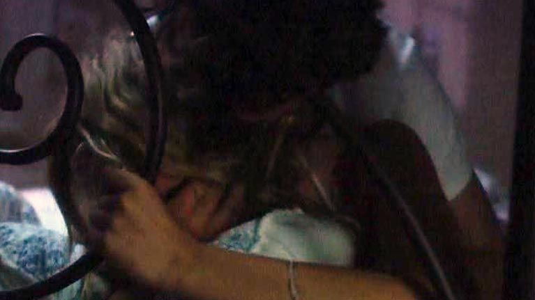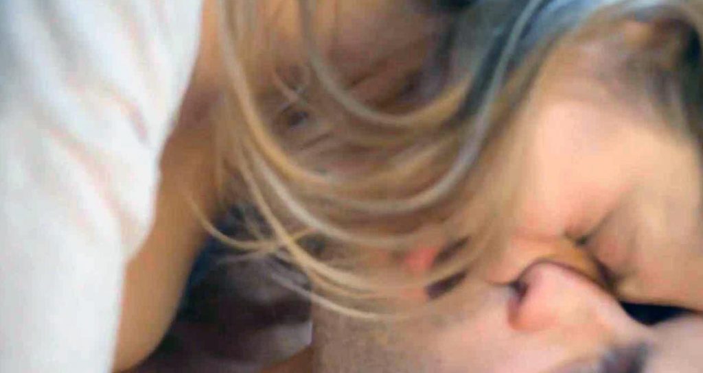 Teresa Palmer is making out with a man in a doorway, who first raises her shirt to expose her bra, then removes the bra, leaving Teresa topless. As she lies back on a bed, the man bends over to suck on her breasts before kissing his way down to her shorts; we get a better view of her breasts. The man then unbuttons and takes them off, allowing him to fall on her.