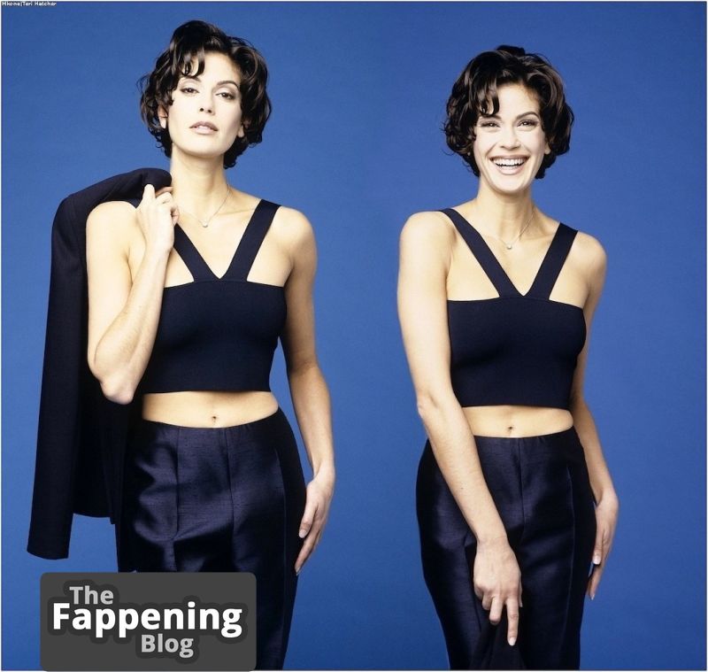 Coleção de fotos nuas e sensuais de Teri Hatcher mostrando seus seios topless, decote de peitos grandes sem sutiã, bunda nua, buceta, orgasmos e cenas de sexo.