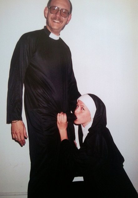 Estas não são suas fotos privadas, isto é sua "arte". Ele contrata uma modelo ou estrela pornô, coloca seus óculos no rosto dela e seu pênis na boca dela e tira fotos.