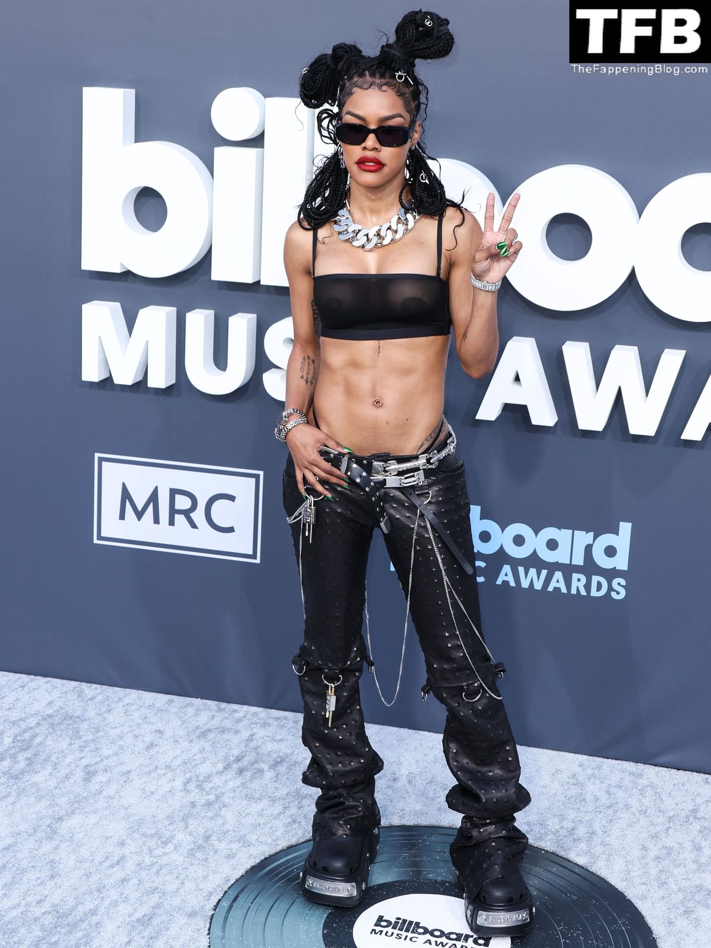 A cantora e compositora americana Teyana Taylor comparece ao Billboard Music Awards 2022 na MGM Grand Garden Arena em Las Vegas, 15/05/2022.