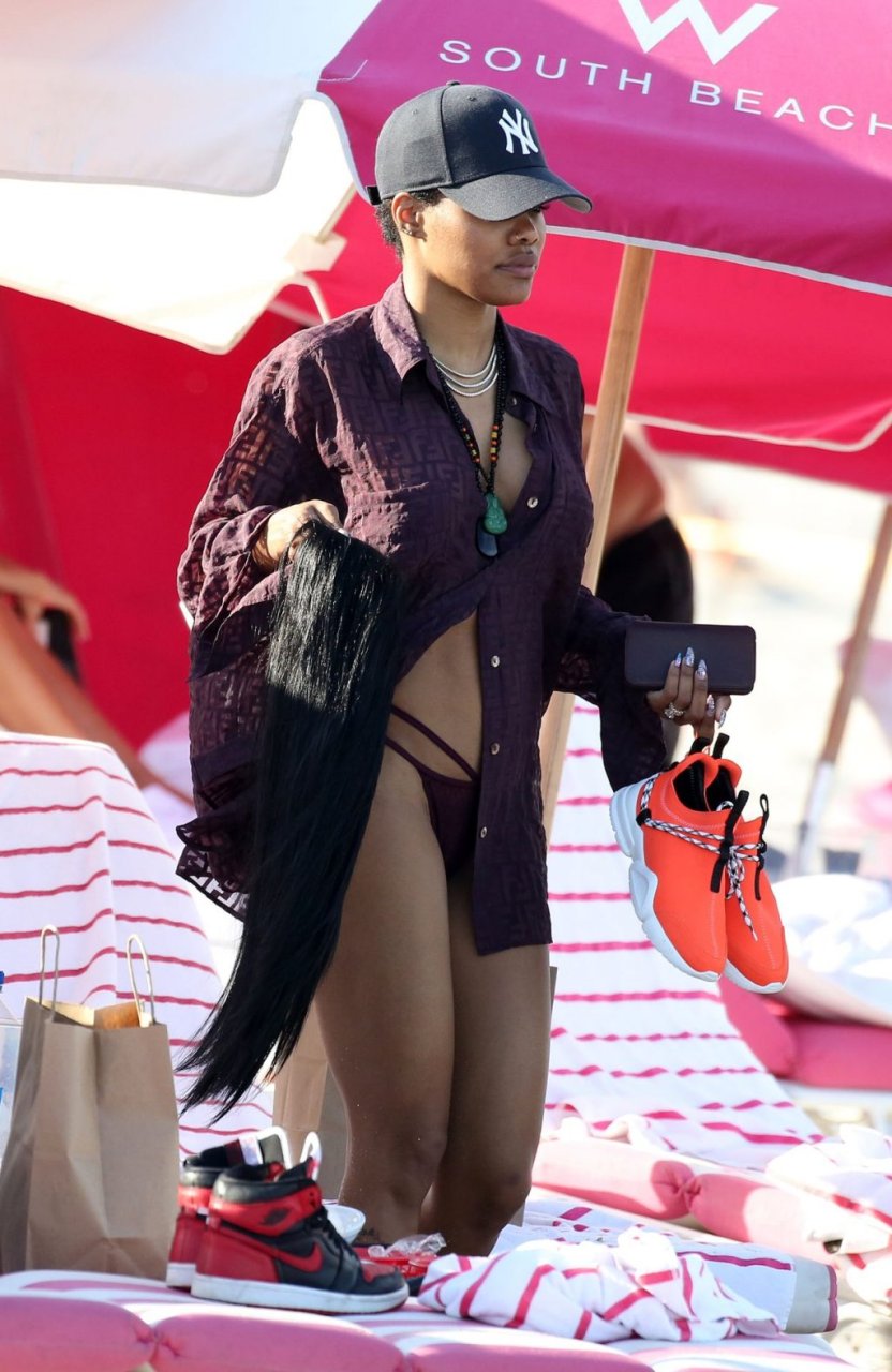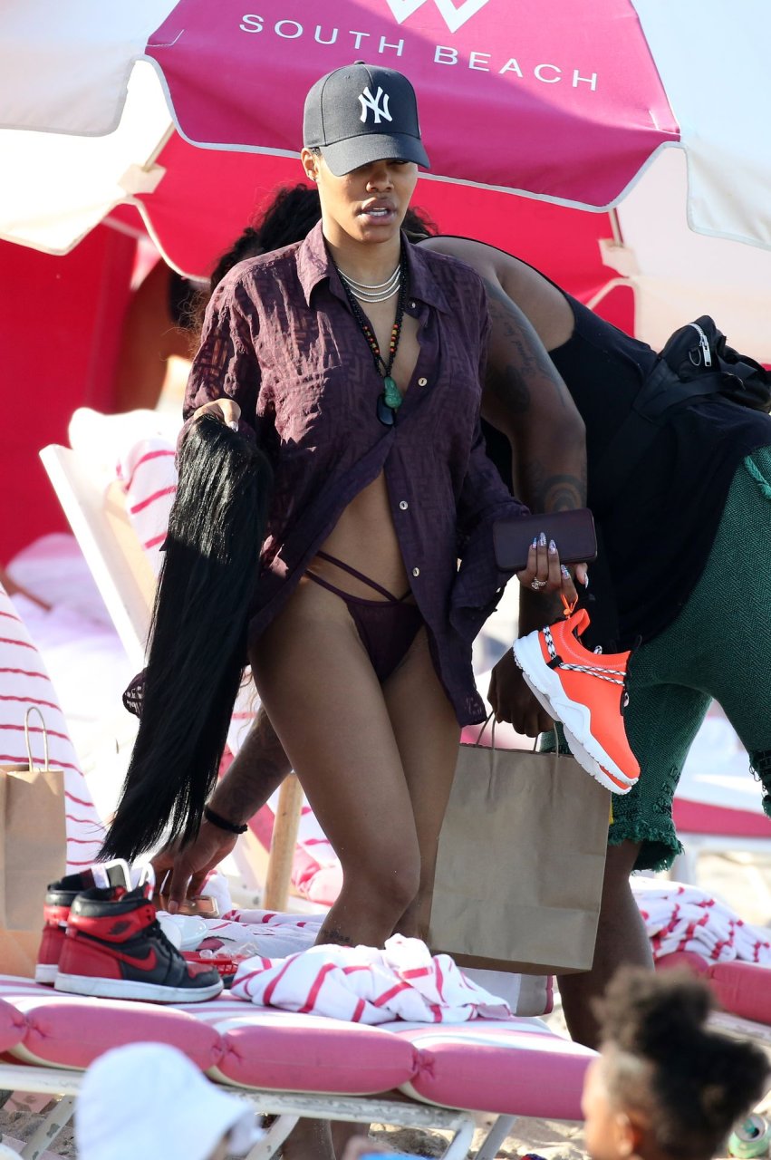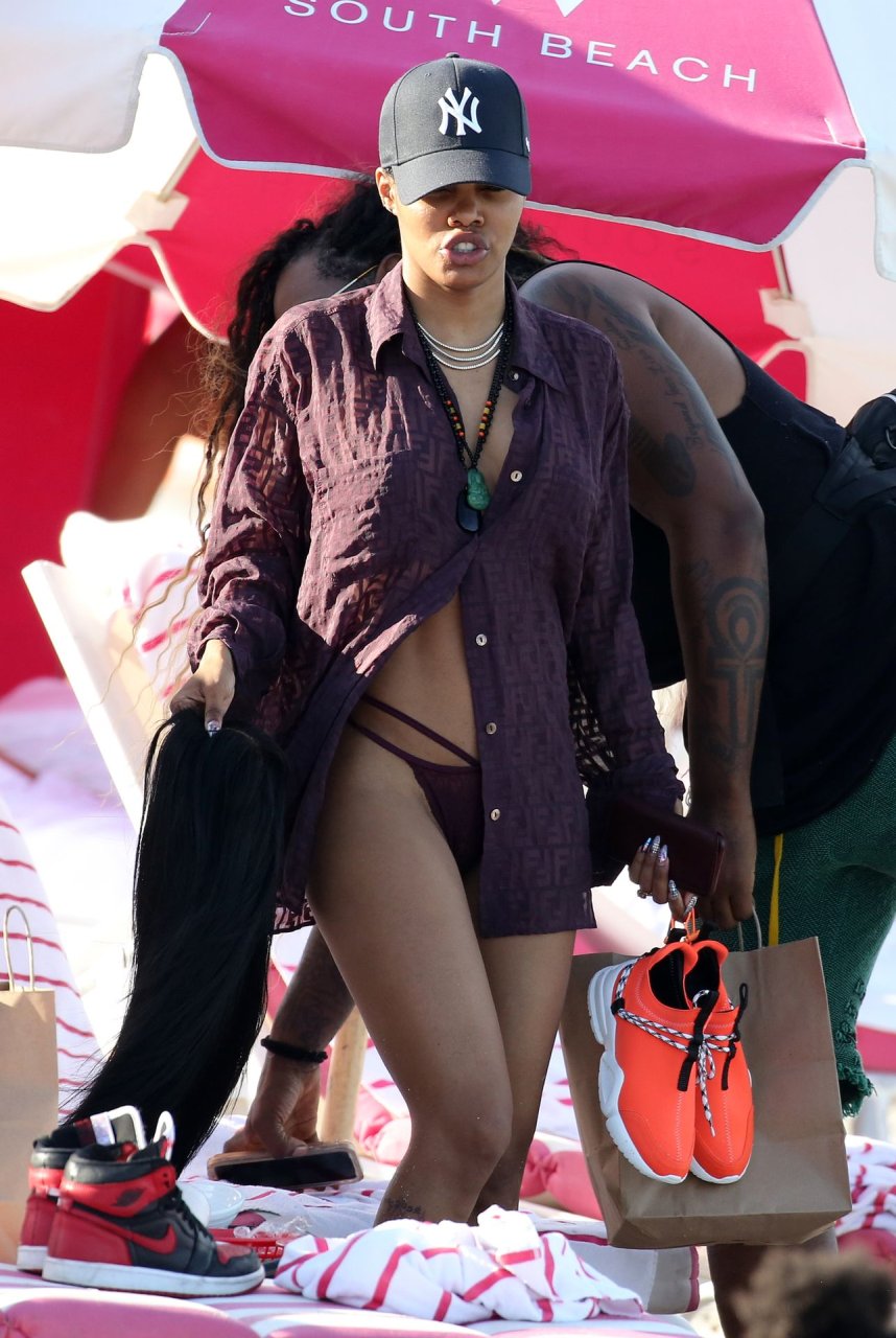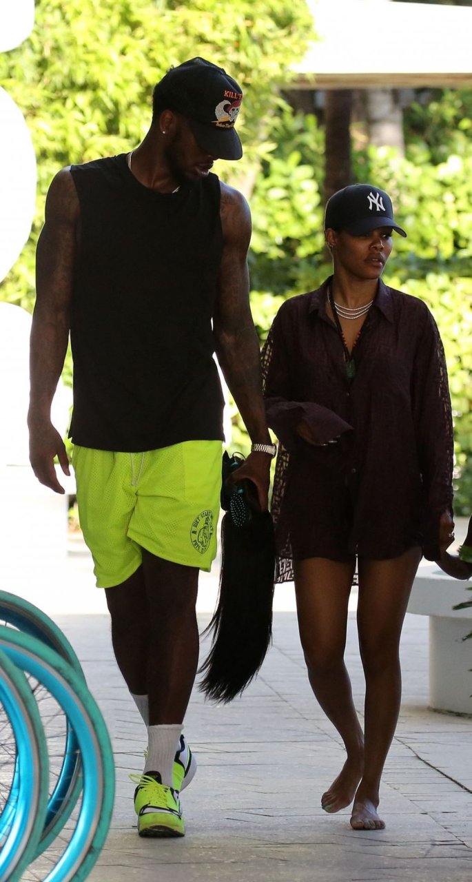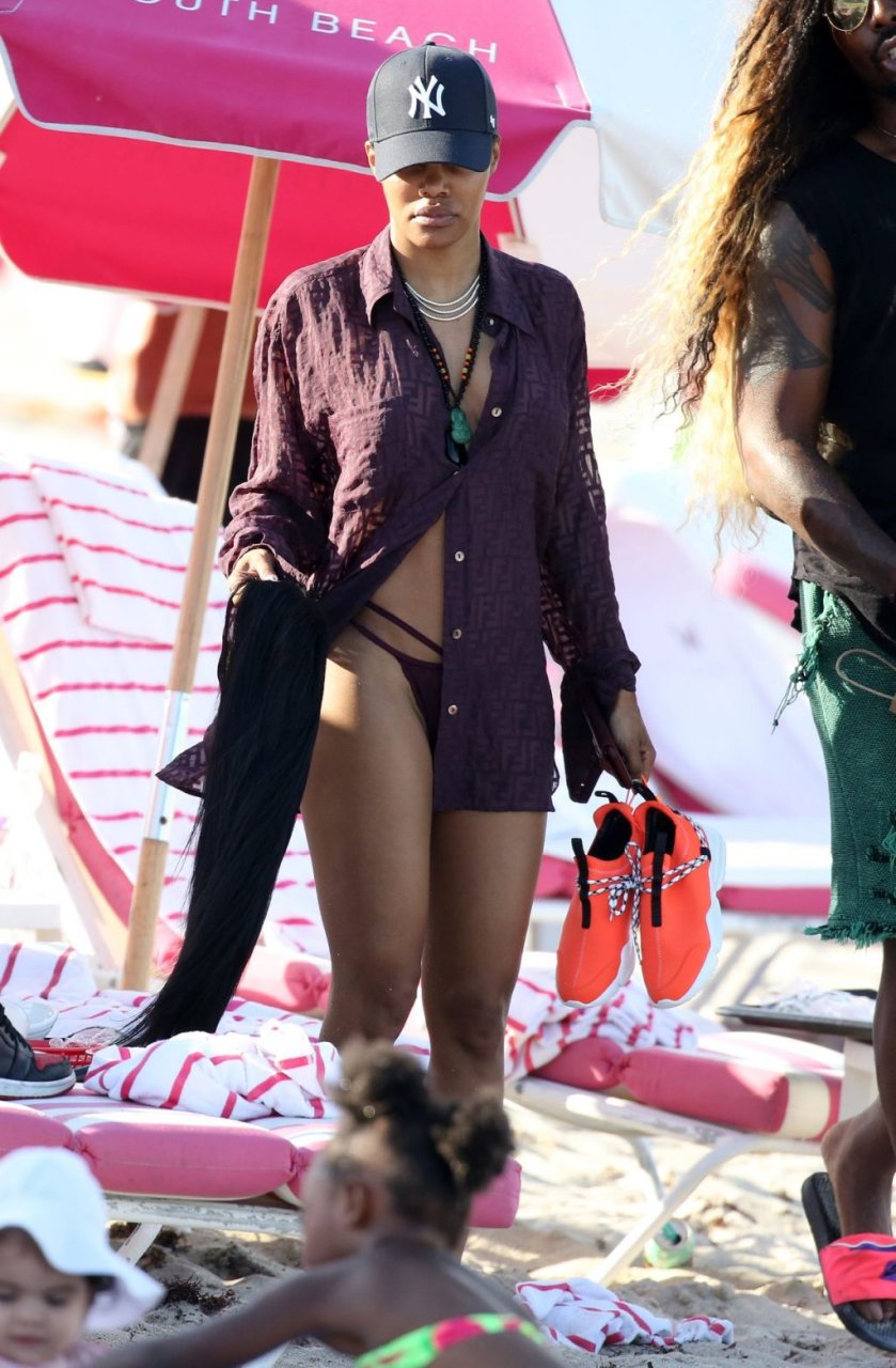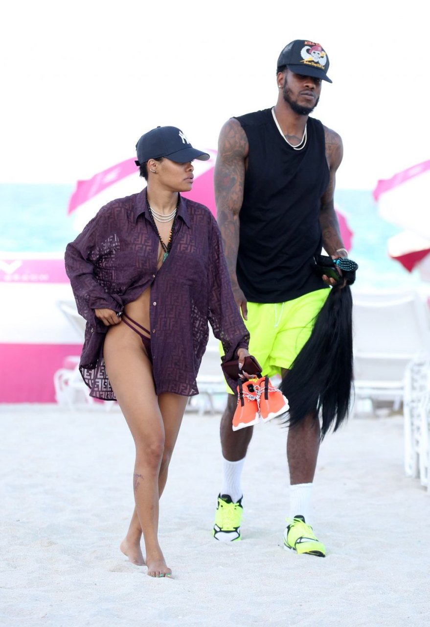 Singer Teyana Taylor (28) passa um dia de praia em família com o marido, jogador da NBA Houston Rockets Iman Shumpert, e a filha em Miami Beach, Flórida, 02/07/2019.