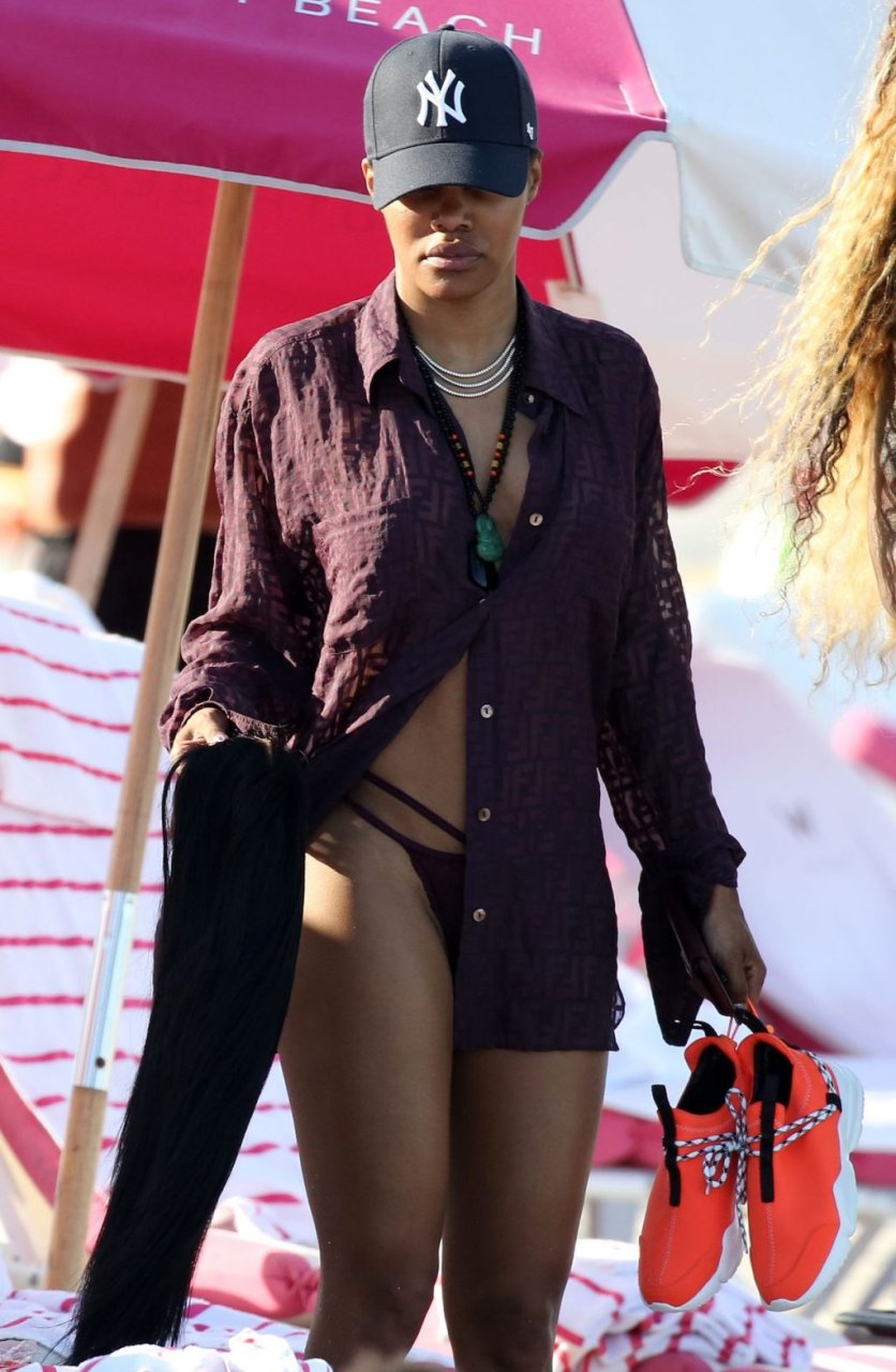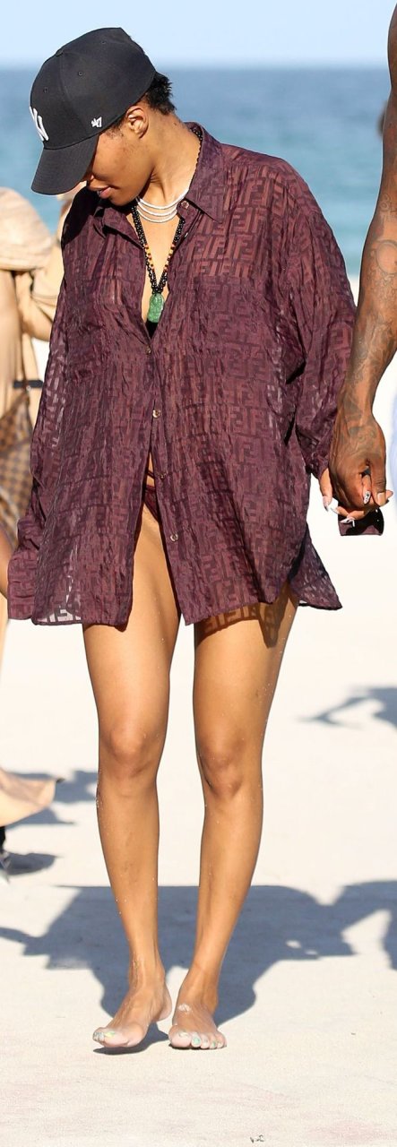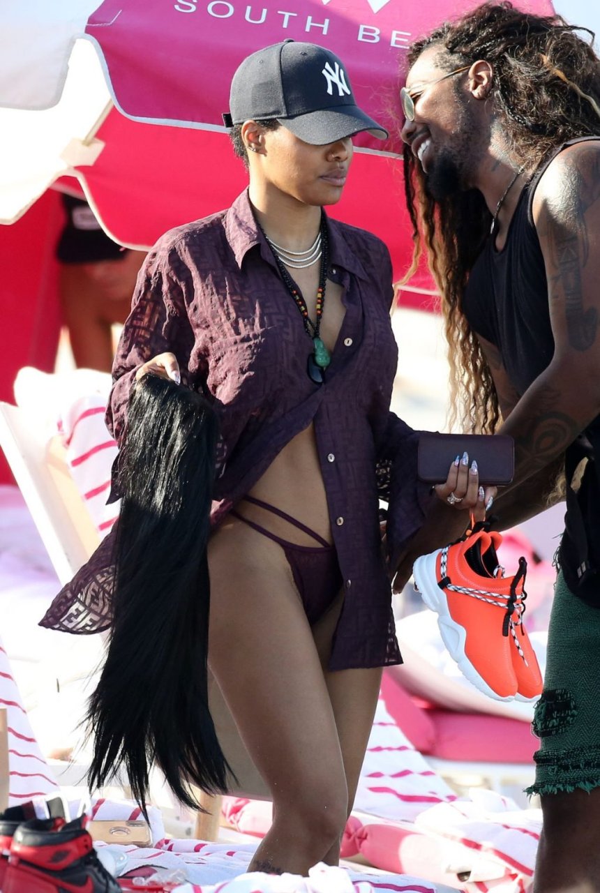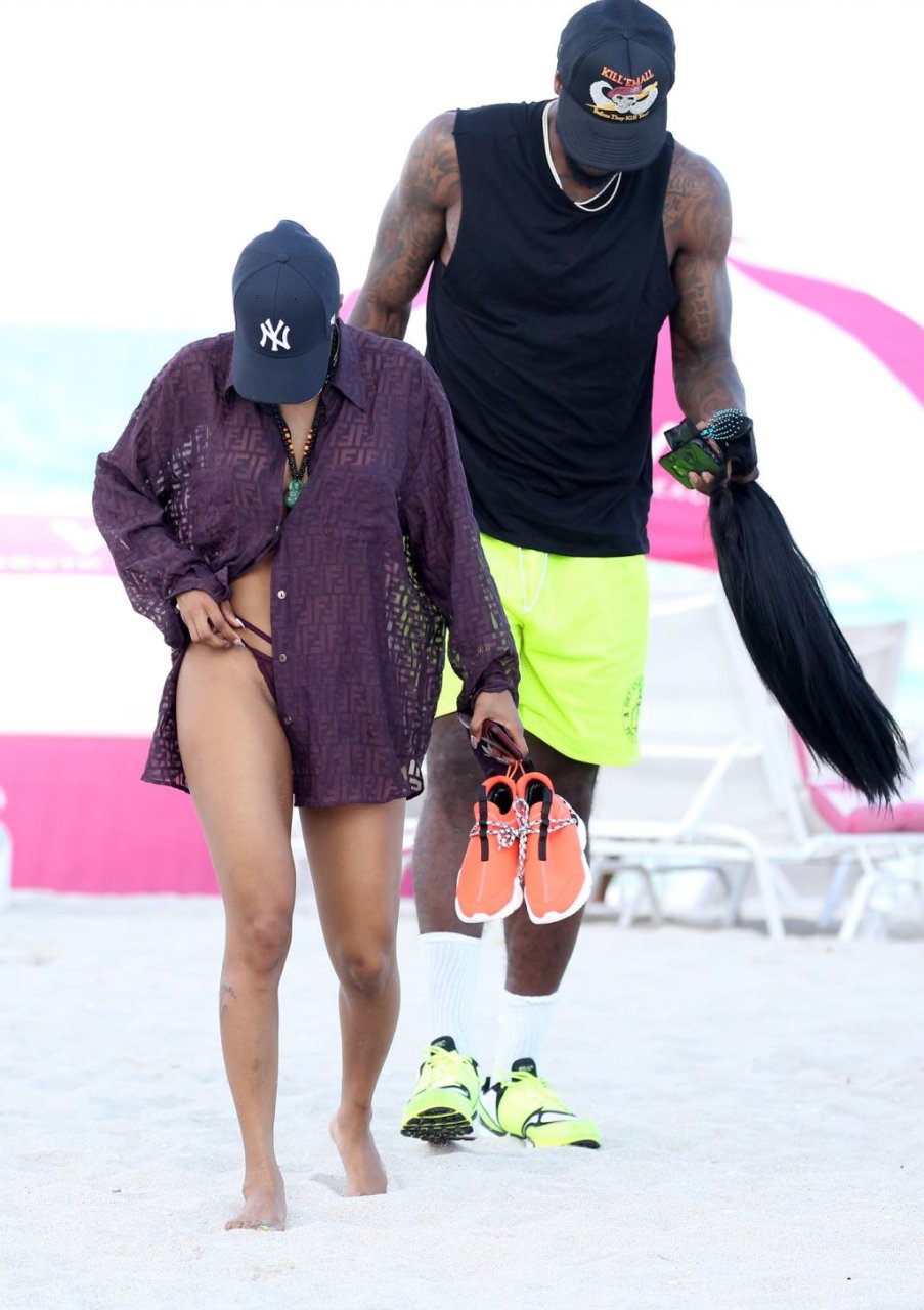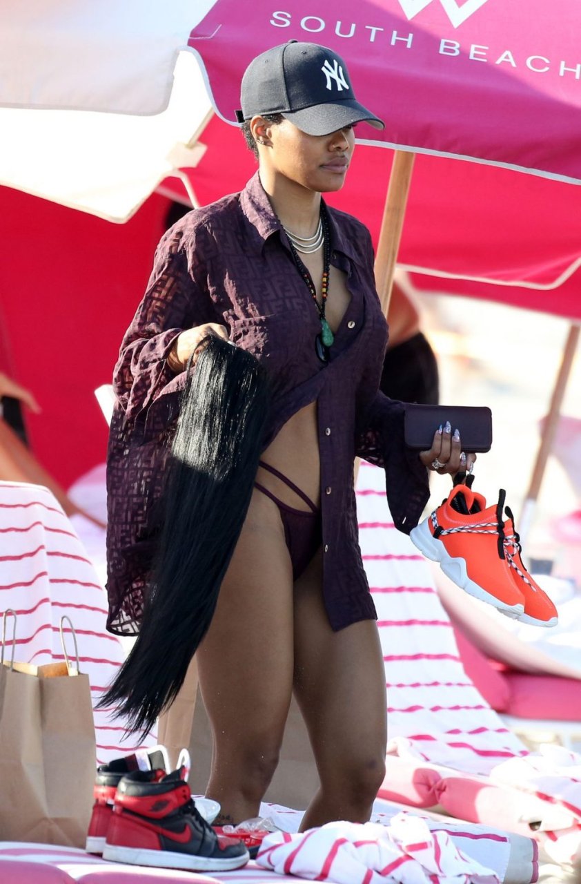 Singer Teyana Taylor (28) passa um dia de praia em família com o marido, jogador da NBA Houston Rockets Iman Shumpert, e a filha em Miami Beach, Flórida, 02/07/2019.