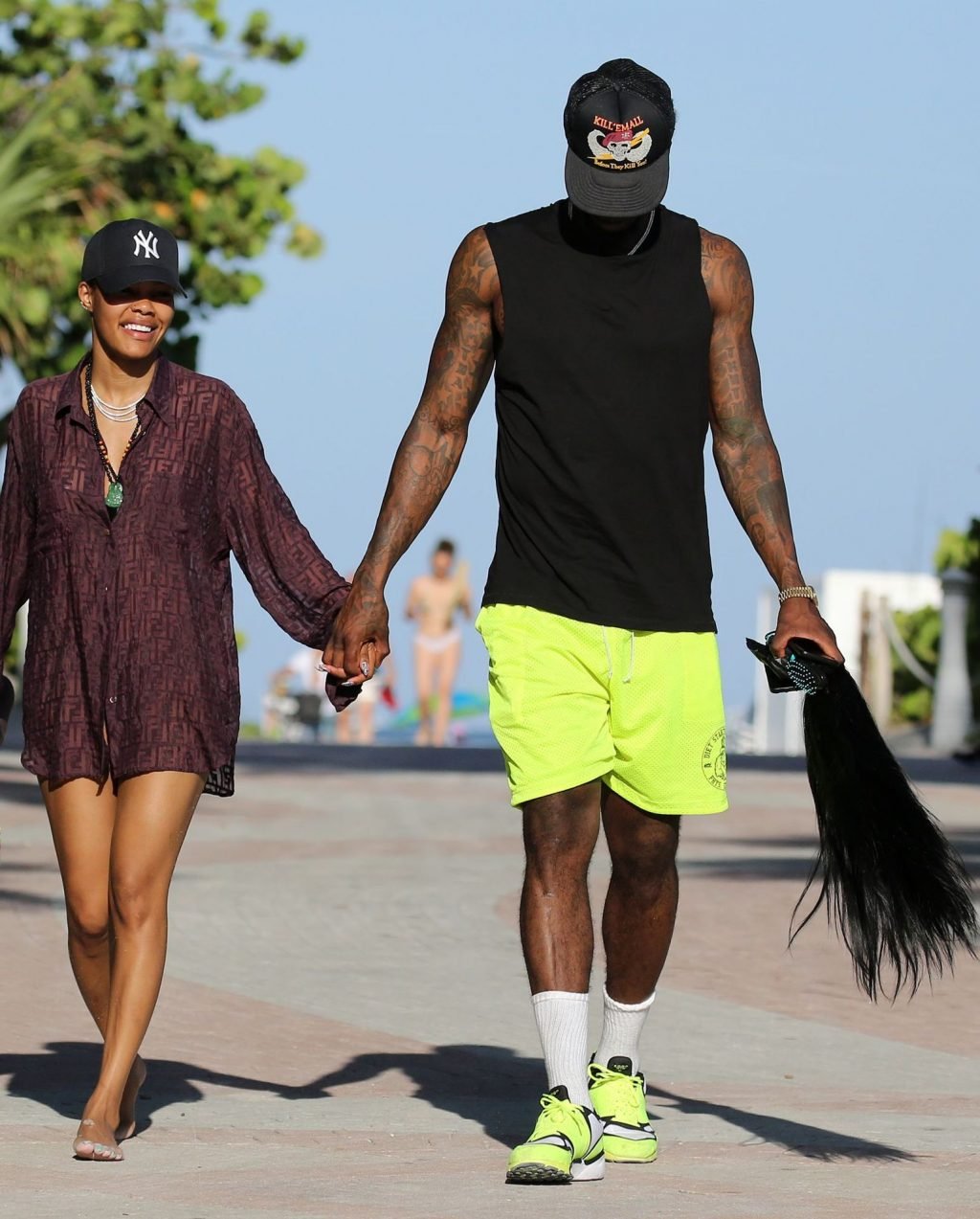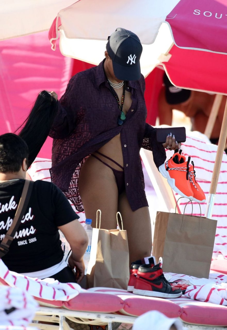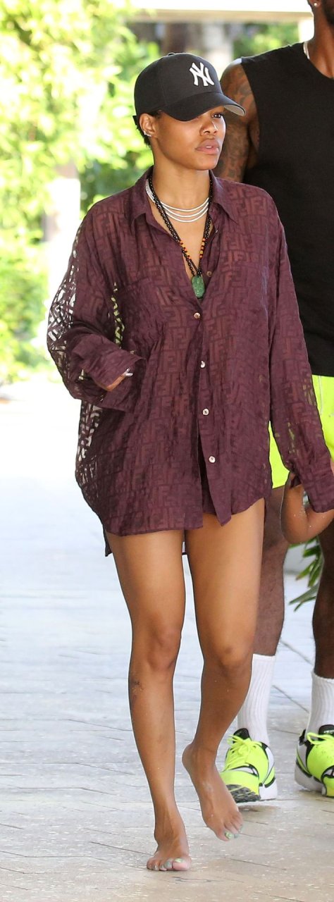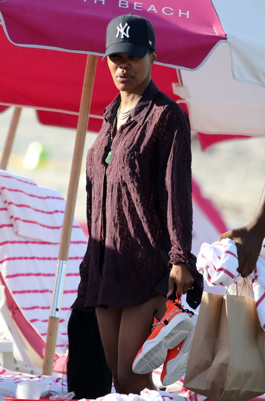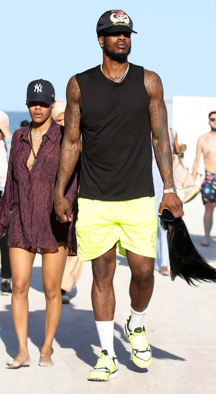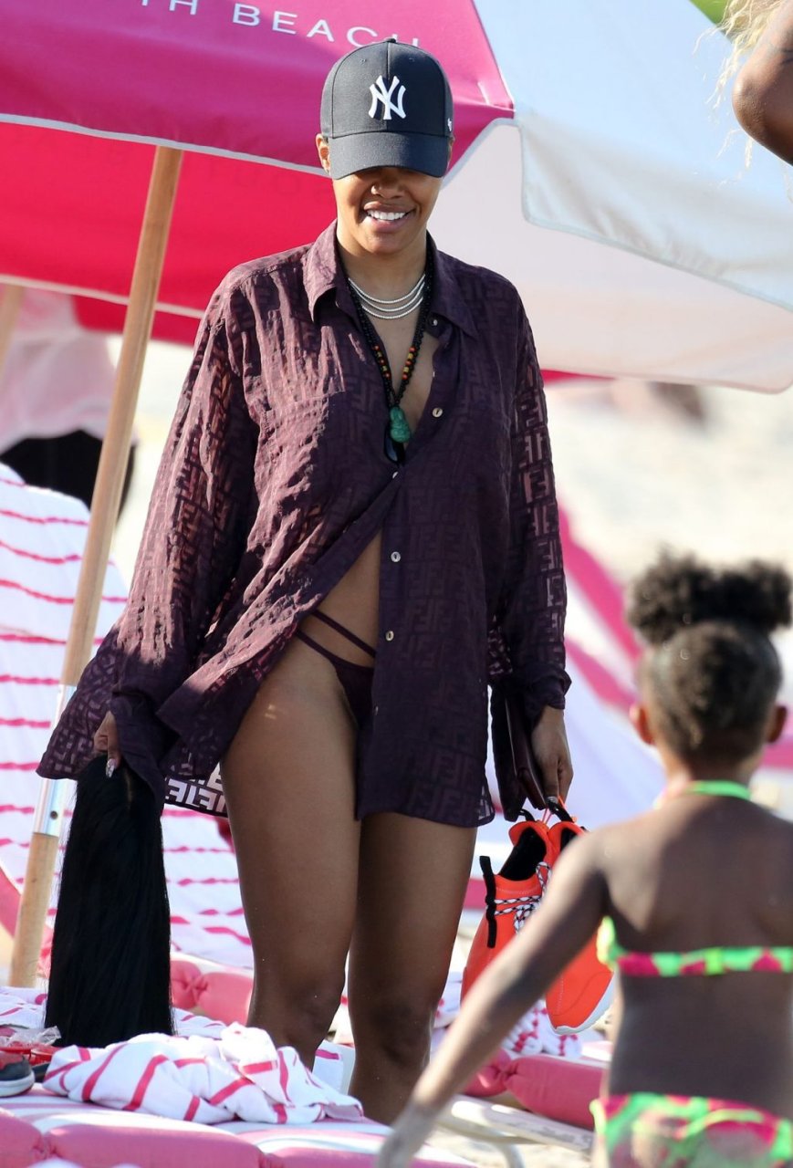 Singer Teyana Taylor (28) passa um dia de praia em família com o marido, jogador da NBA Houston Rockets Iman Shumpert, e a filha em Miami Beach, Flórida, 02/07/2019.