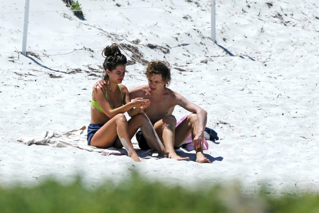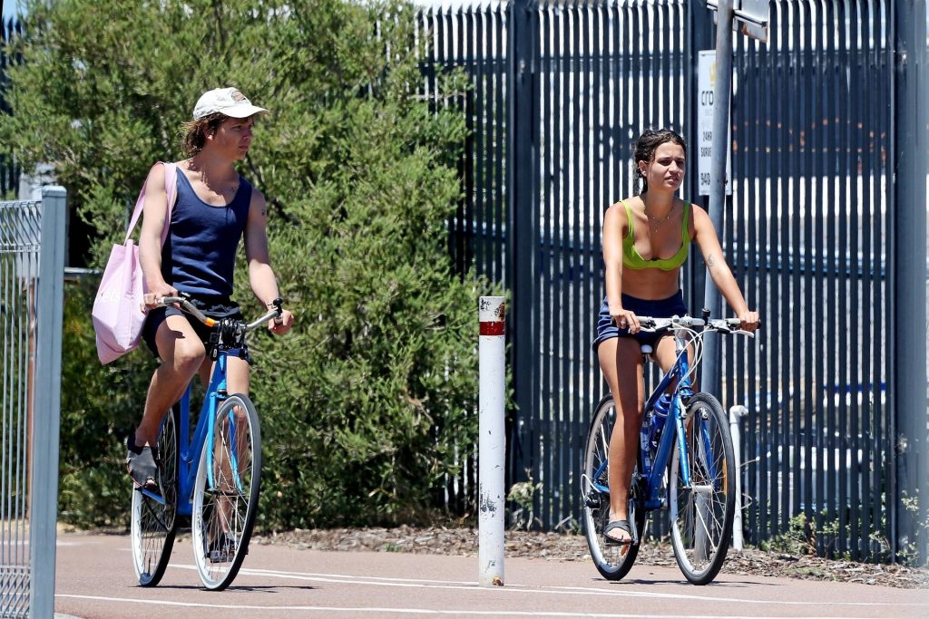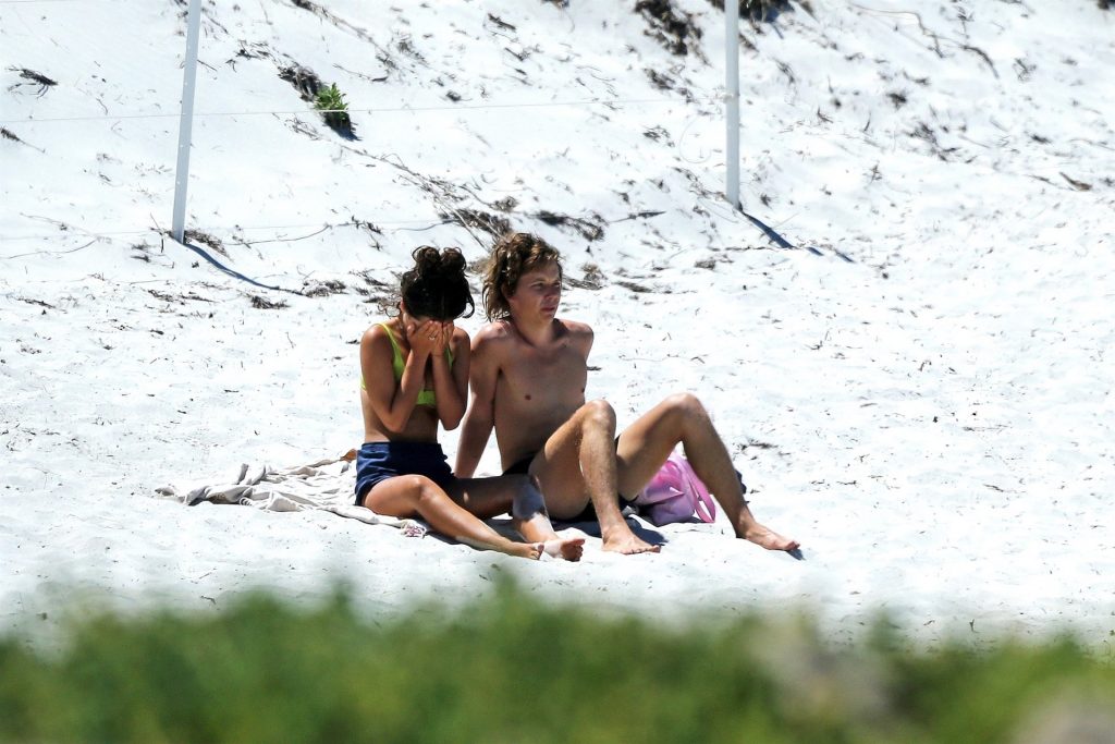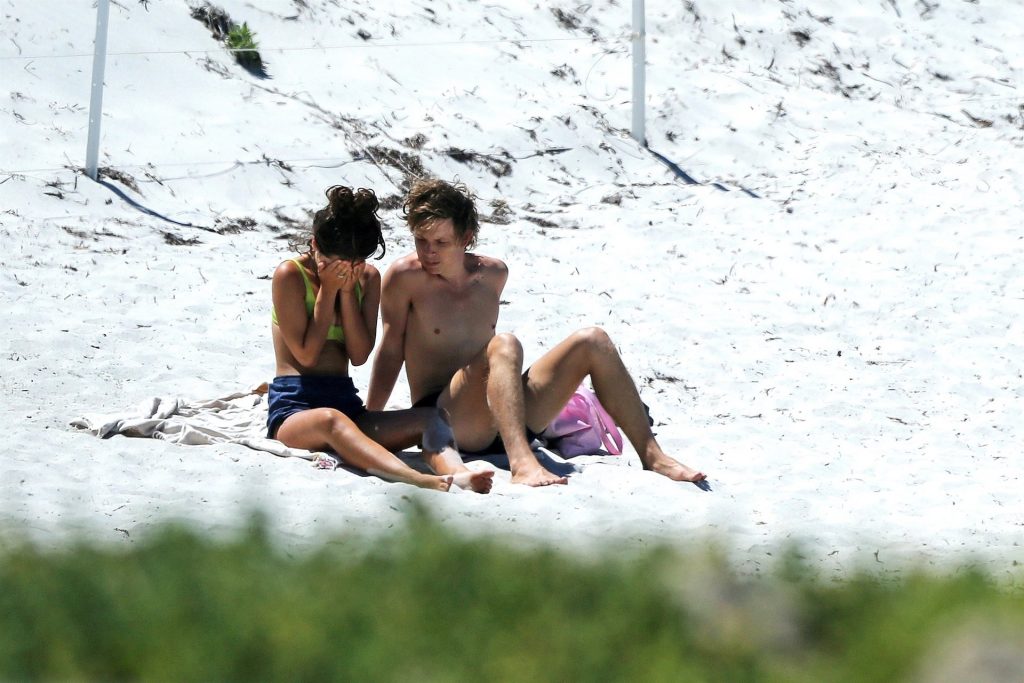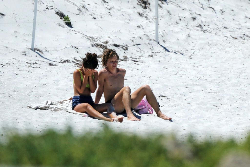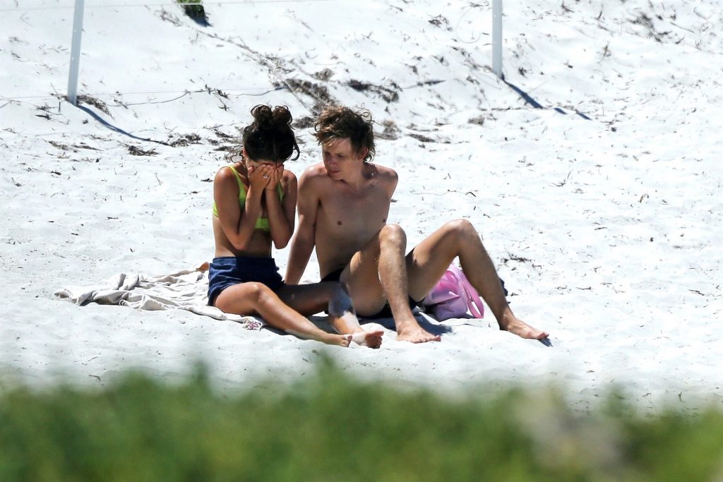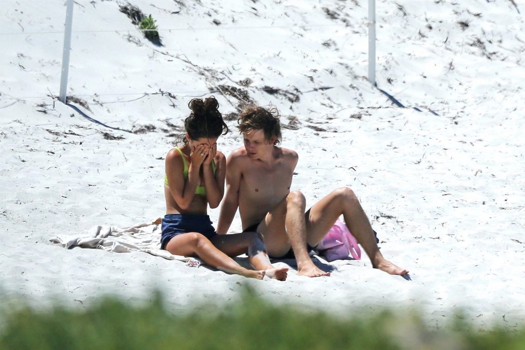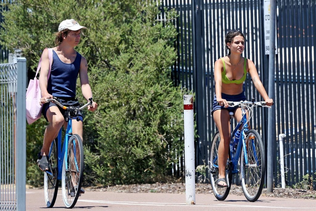 Tiger Lily Hutchence (23) está completamente apaixonada pelo vocalista do Pond, Nick Allbrook, na praia em Perth, Austrália, 30/11/2019. O casal tirou a roupa até a roupa íntima. Tiger Lily parecia estar chorando quando chegou à praia, antes de seu namorado Nick confortá-la. O jovem casal brincou na água juntos, parecendo muito apaixonados antes de subir em suas bicicletas.