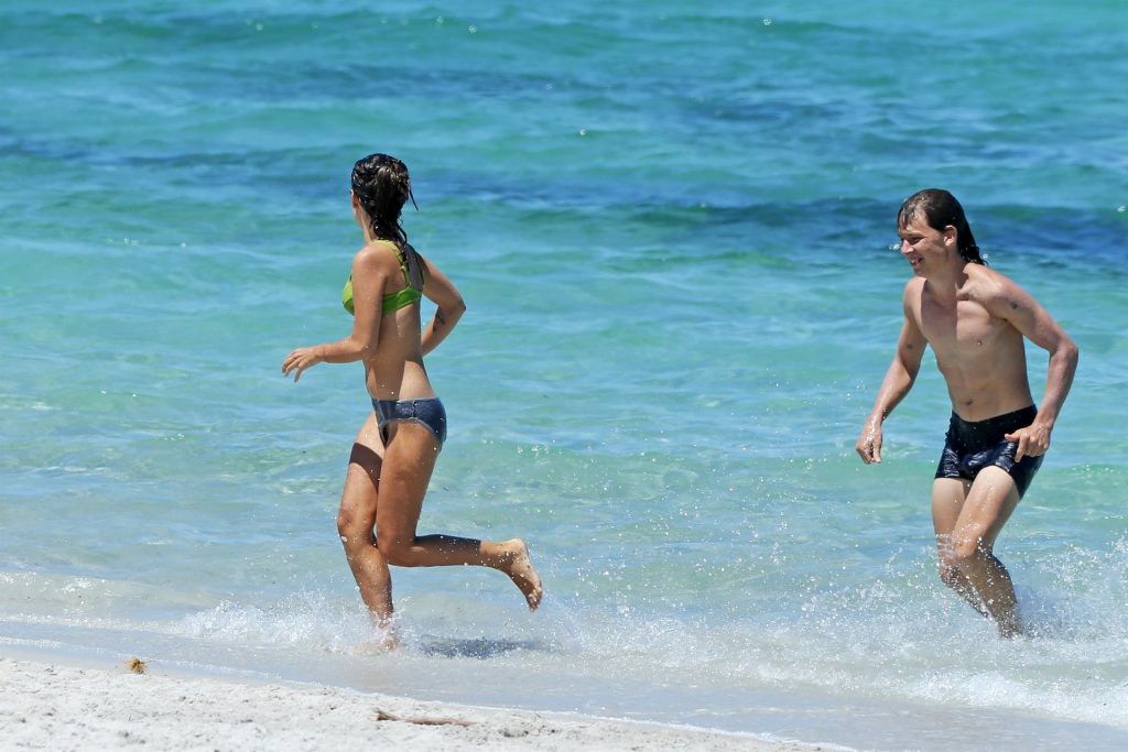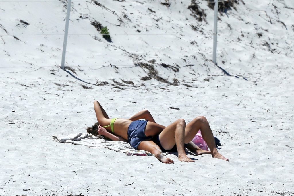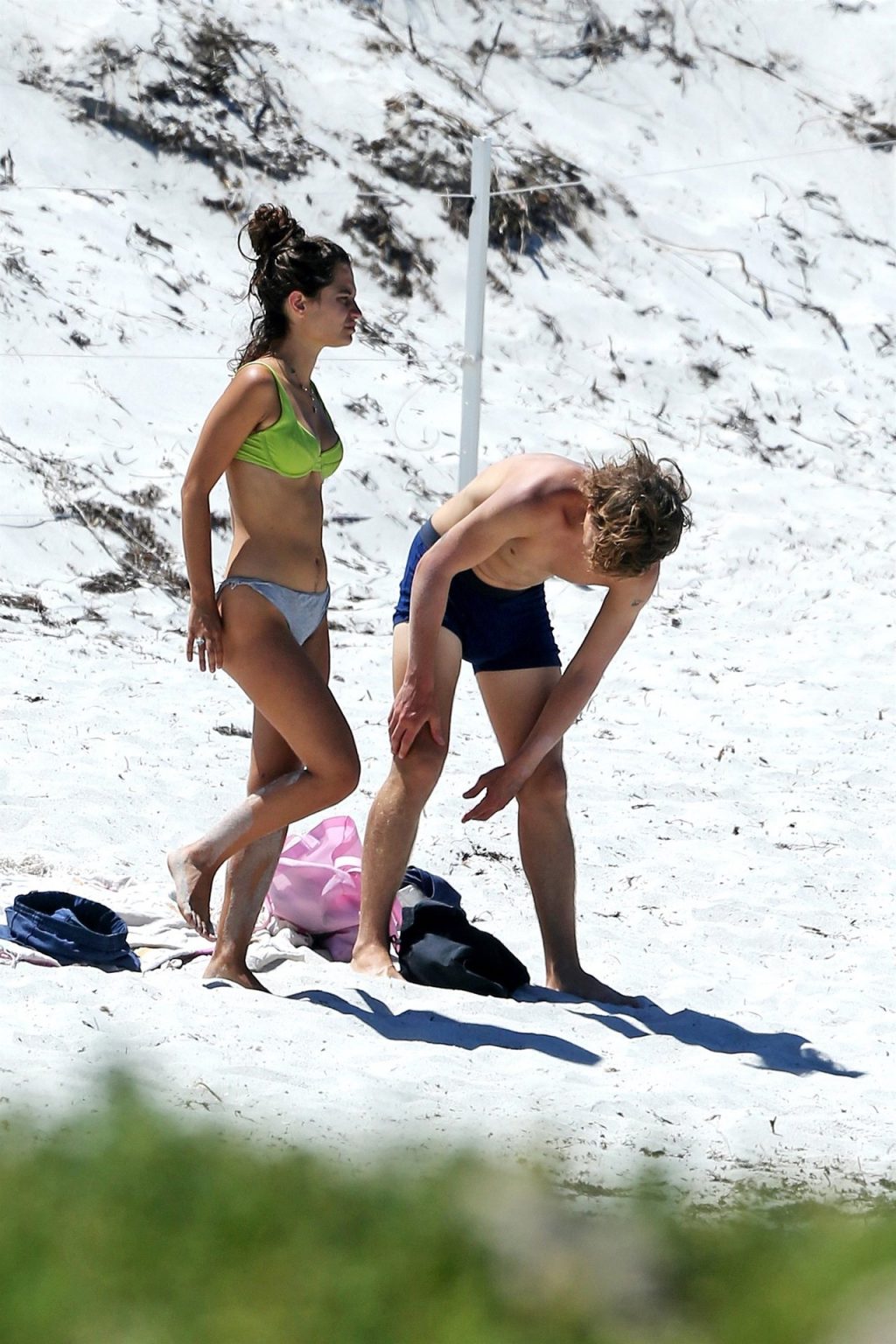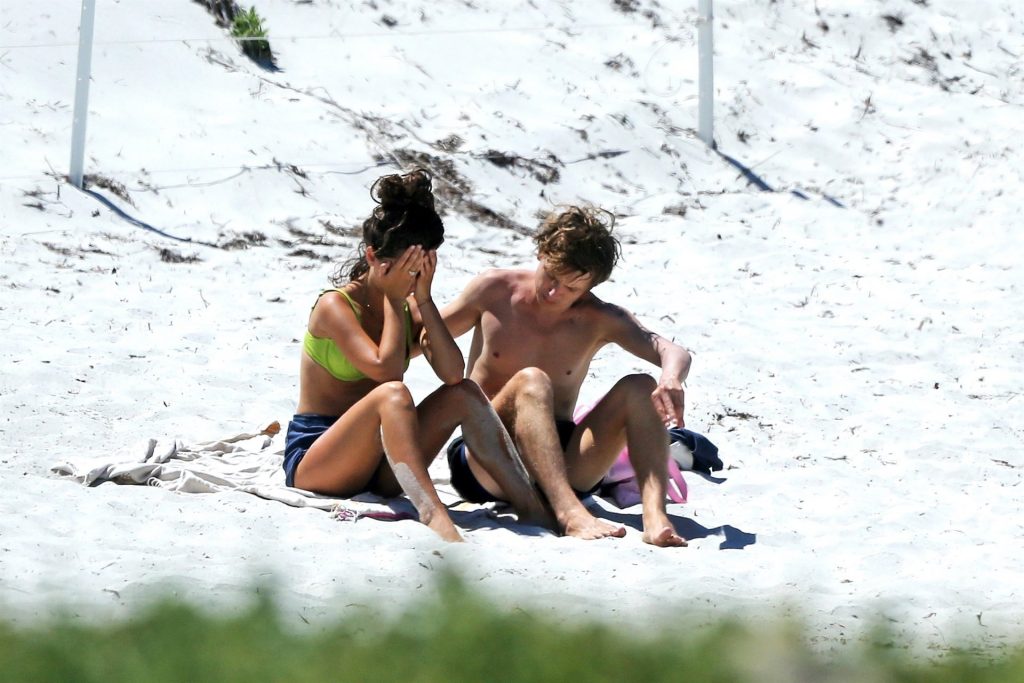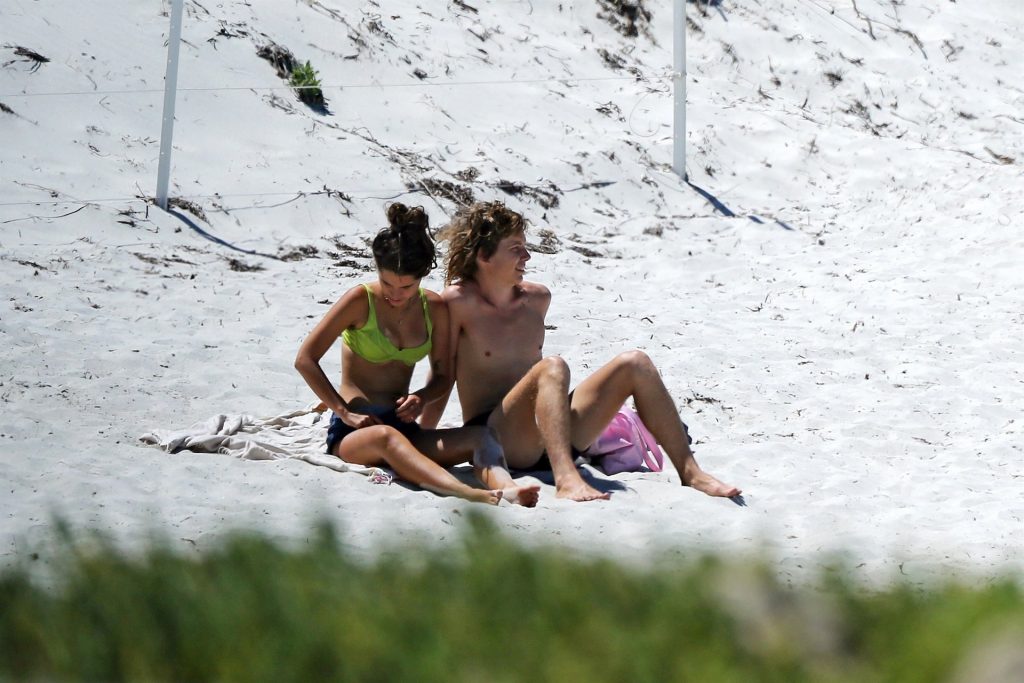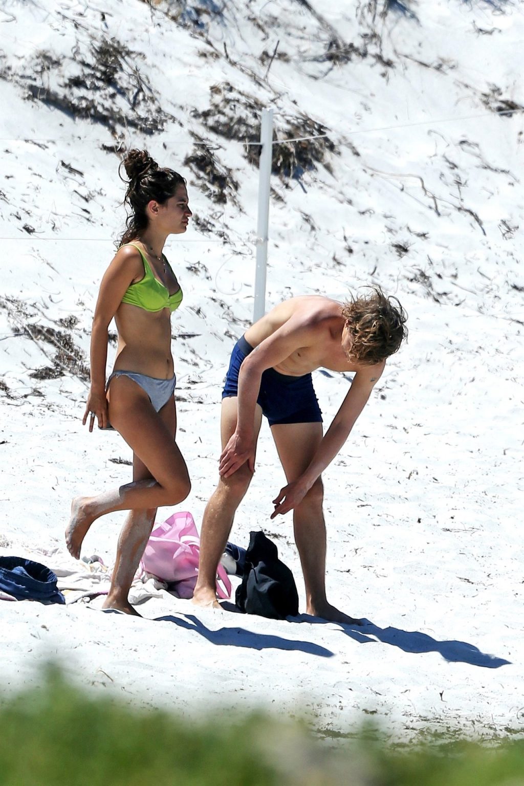 Tiger Lily Hutchence (23) está completamente apaixonada pelo vocalista do Pond, Nick Allbrook, na praia em Perth, Austrália, 30/11/2019. O casal tirou a roupa até a roupa íntima. Tiger Lily parecia estar chorando quando chegou à praia, antes de seu namorado Nick confortá-la. O jovem casal brincou na água juntos, parecendo muito apaixonados antes de subir em suas bicicletas.