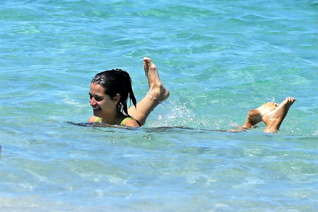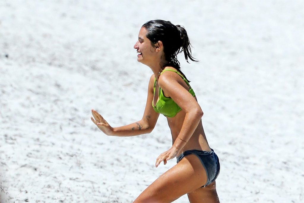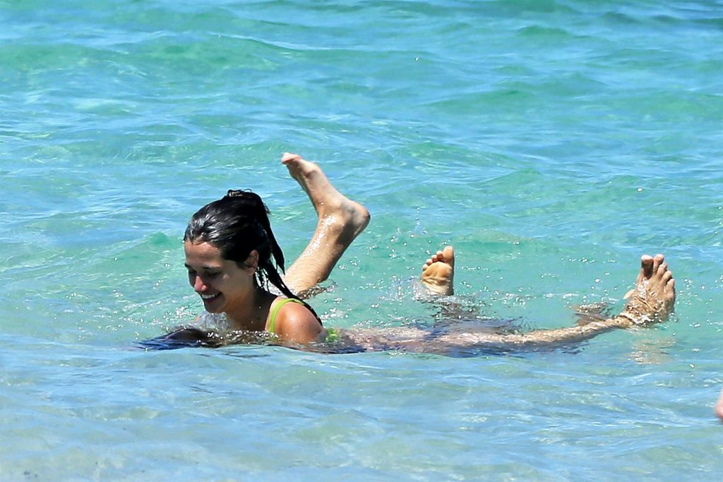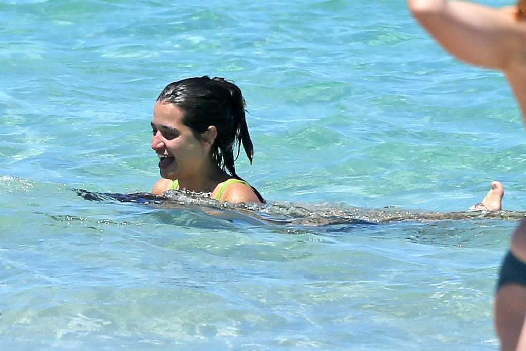 Tiger-Lily está usando um top de biquíni muito maior aqui, talvez porque ela não queira que seus mamilos fiquem à mostra como aconteceu da última vez, mas suas calcinhas de banho estão muito largas e ela precisa ficar puxando-as para cima para evitar que sua região peluda fique exposta ao mundo.