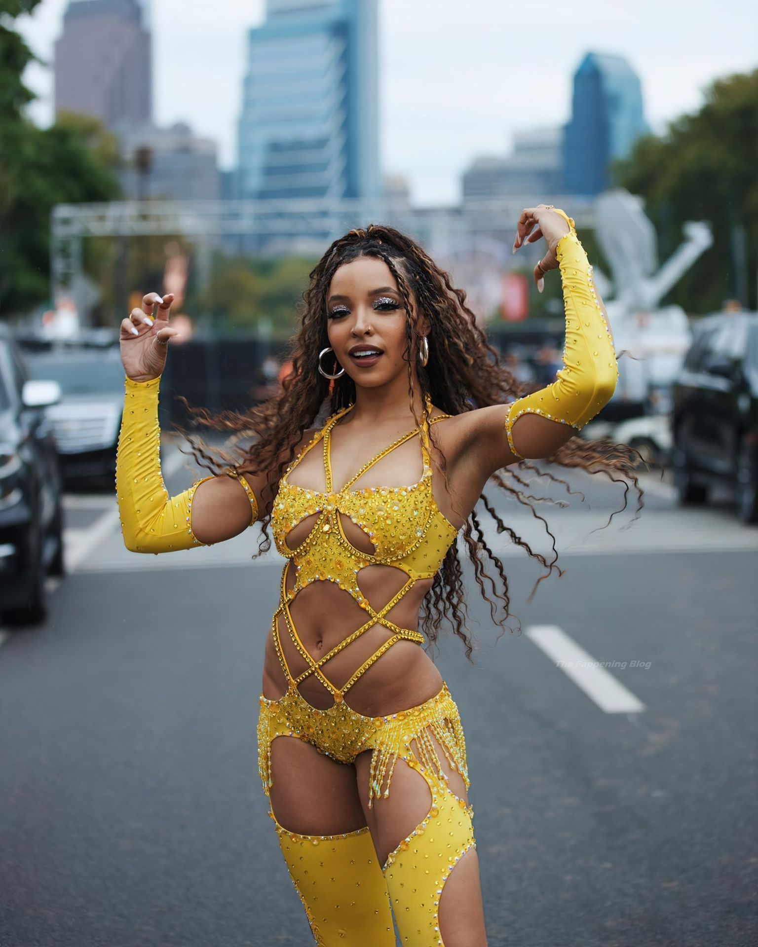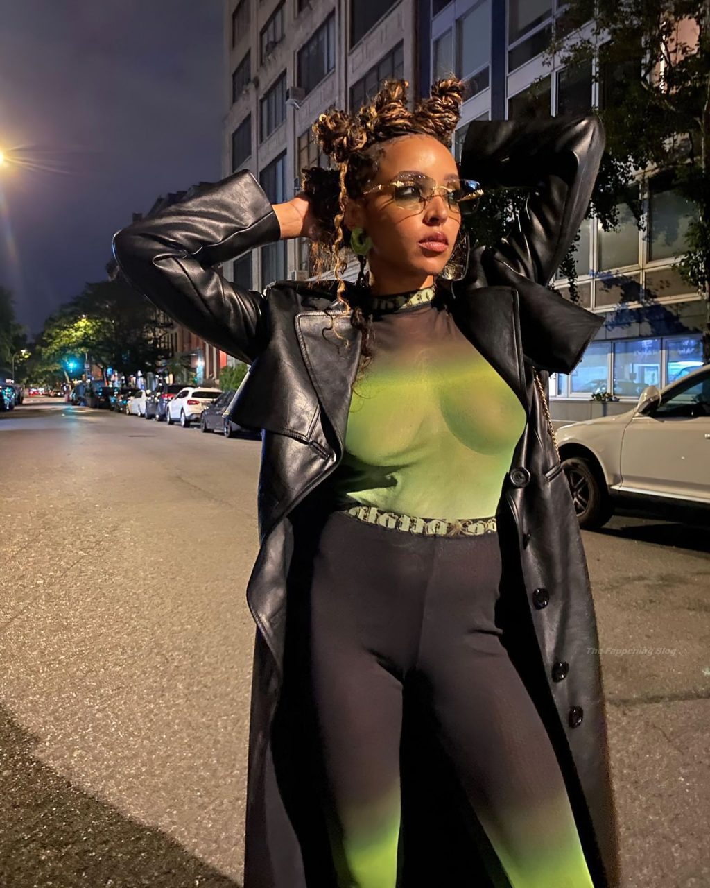 Dê uma olhada nas fotos quentes do Instagram de Tinashe mostrando suas pernas e seios sexy.