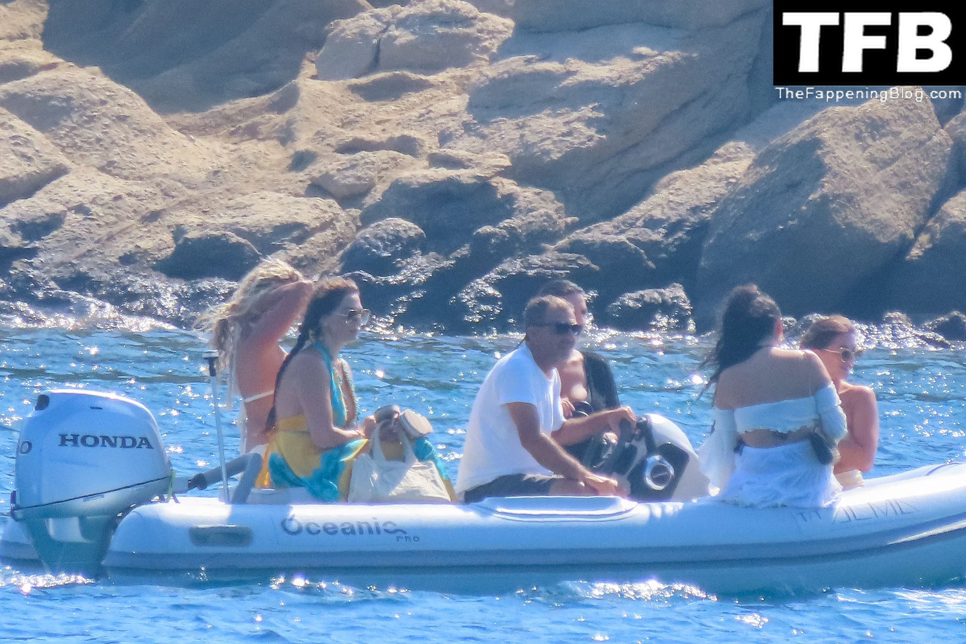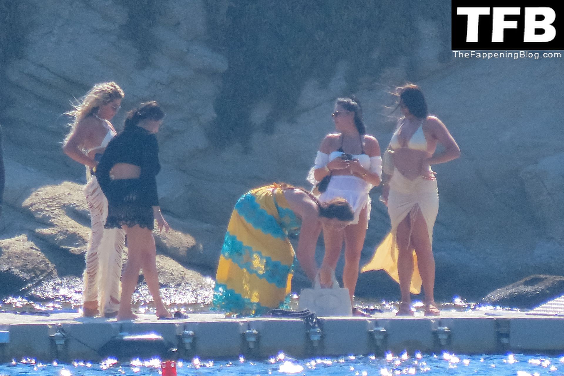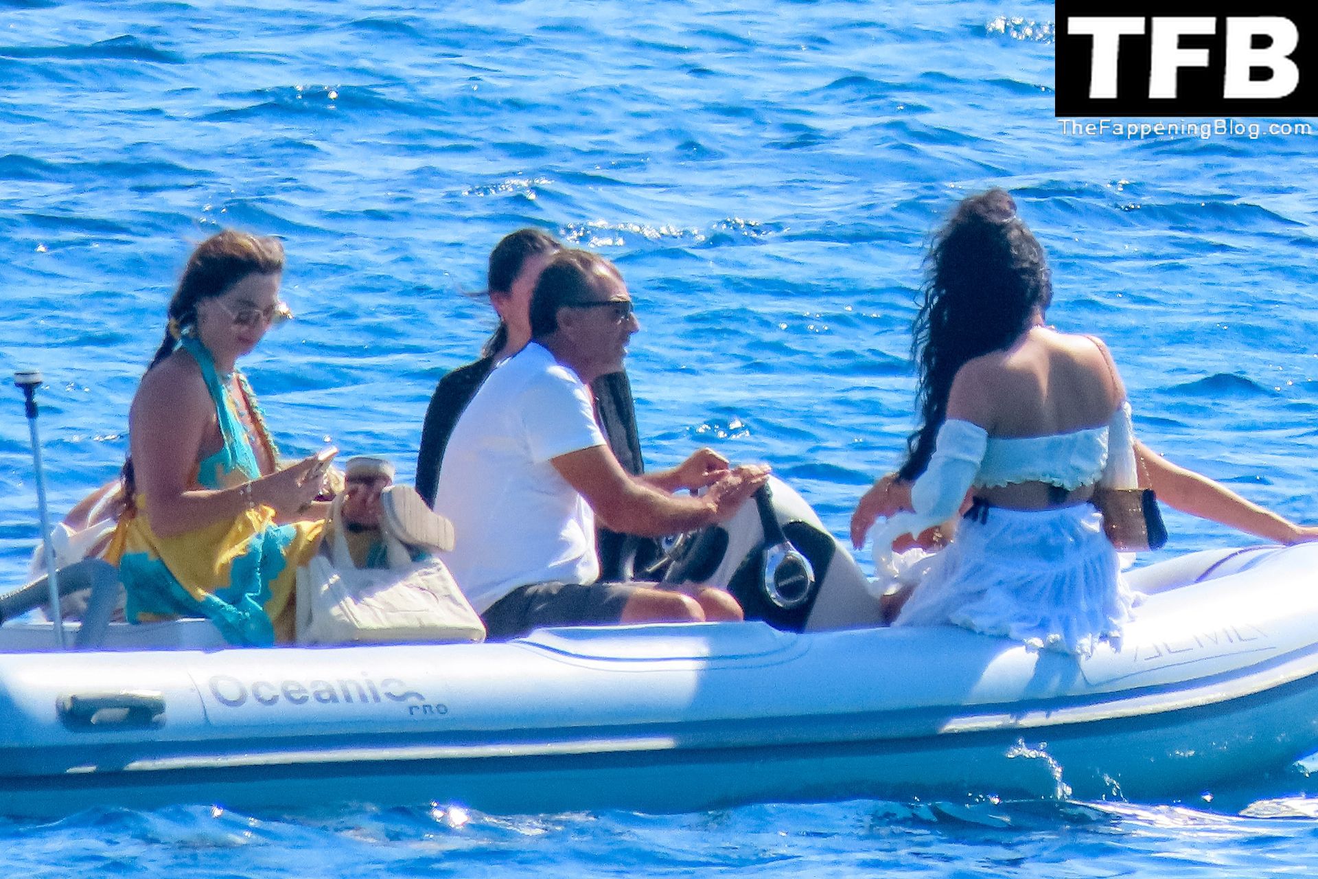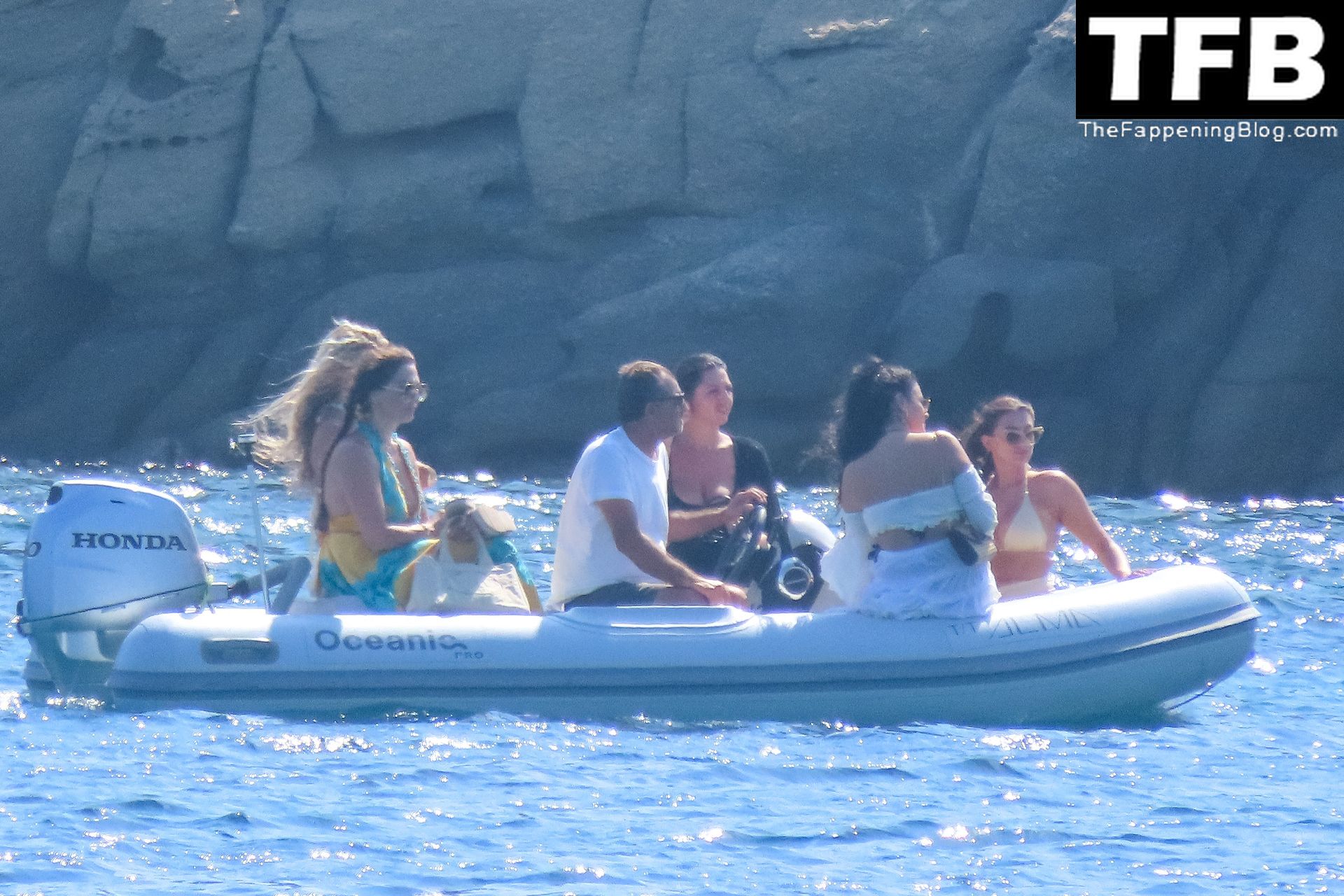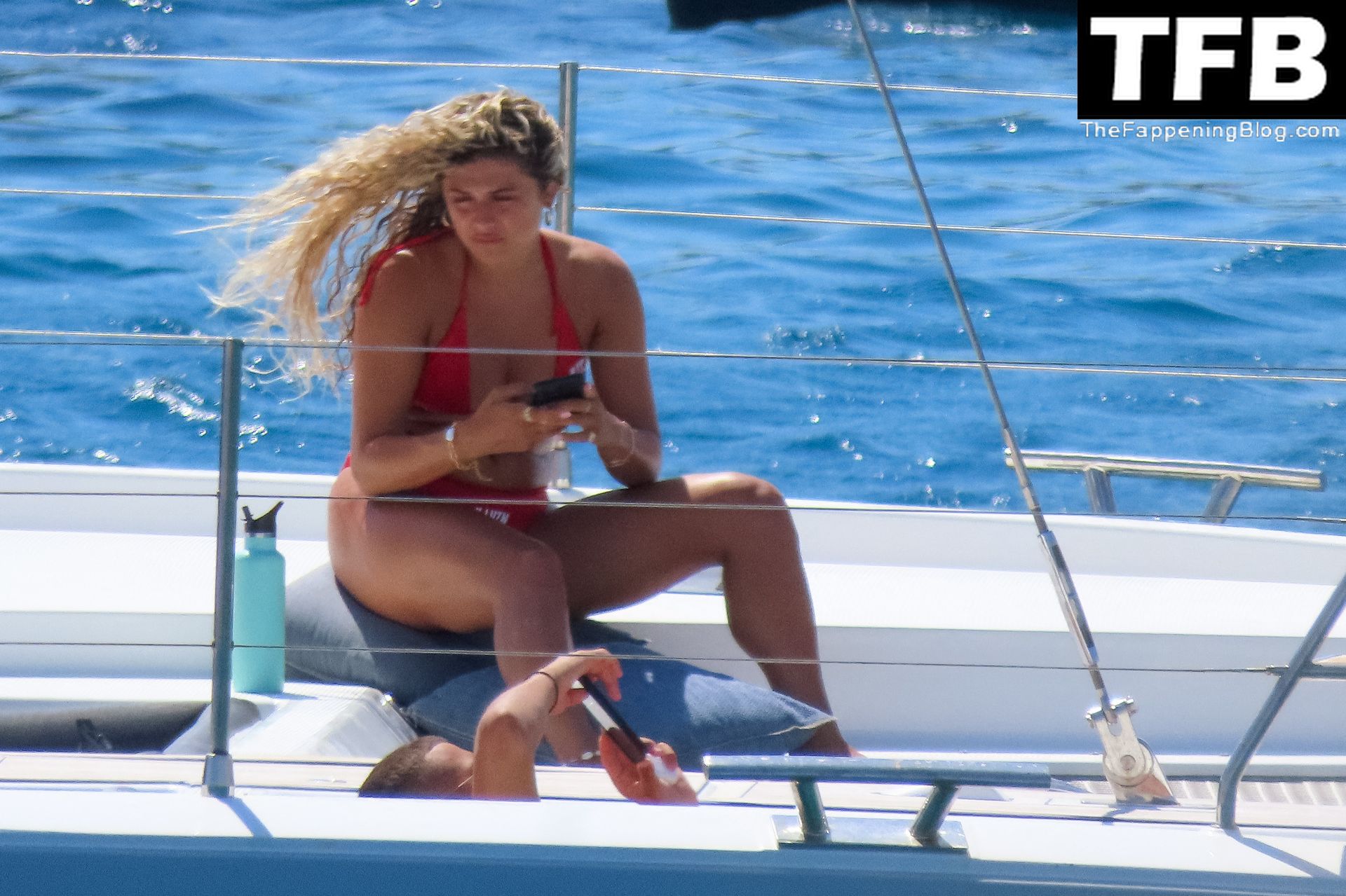 Um dia de catamarã em Mykonos! Tonia Buxton é vista de biquíni preto no catamarã com Antigoni Buxton, 21/08/2022.