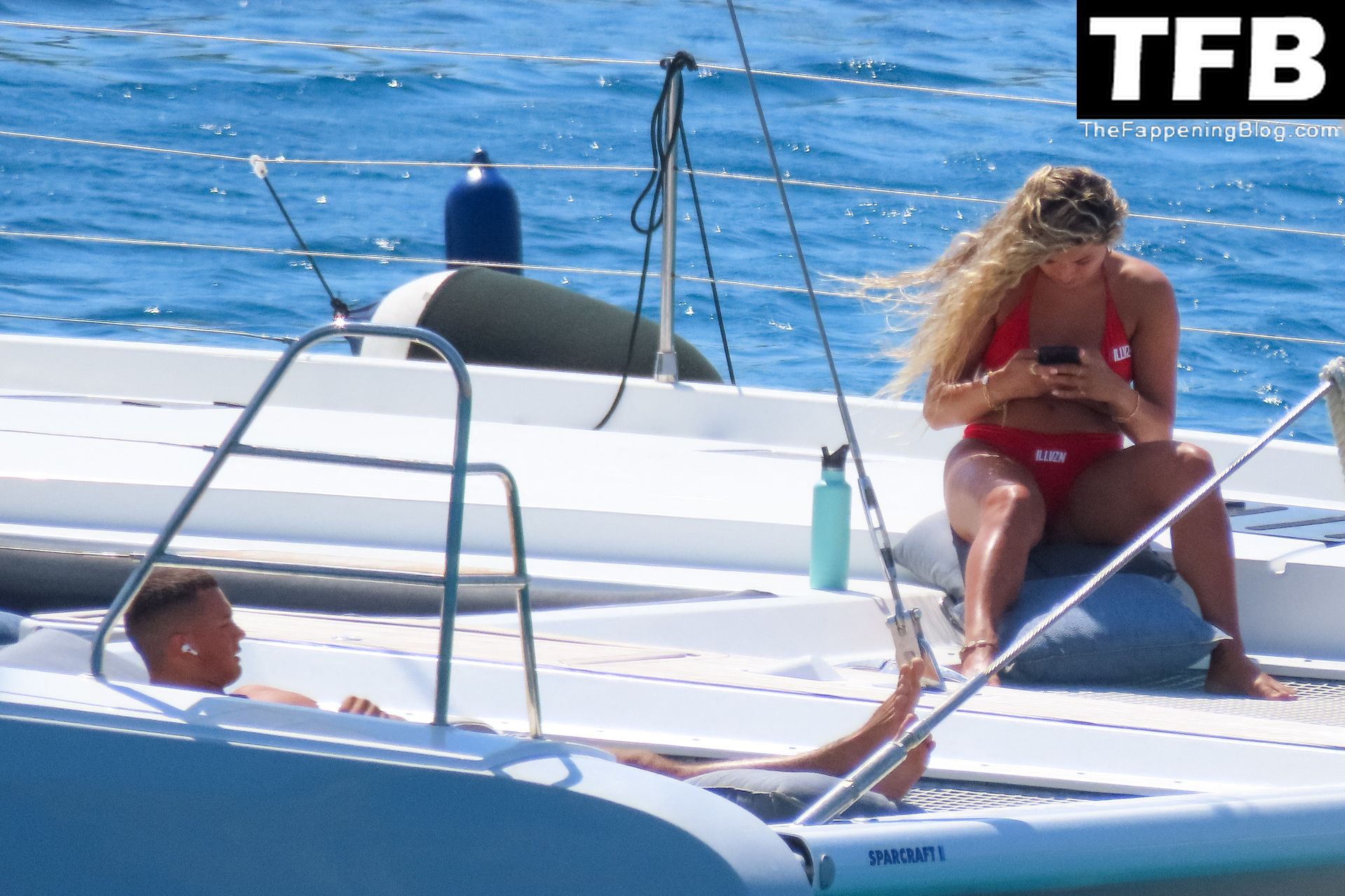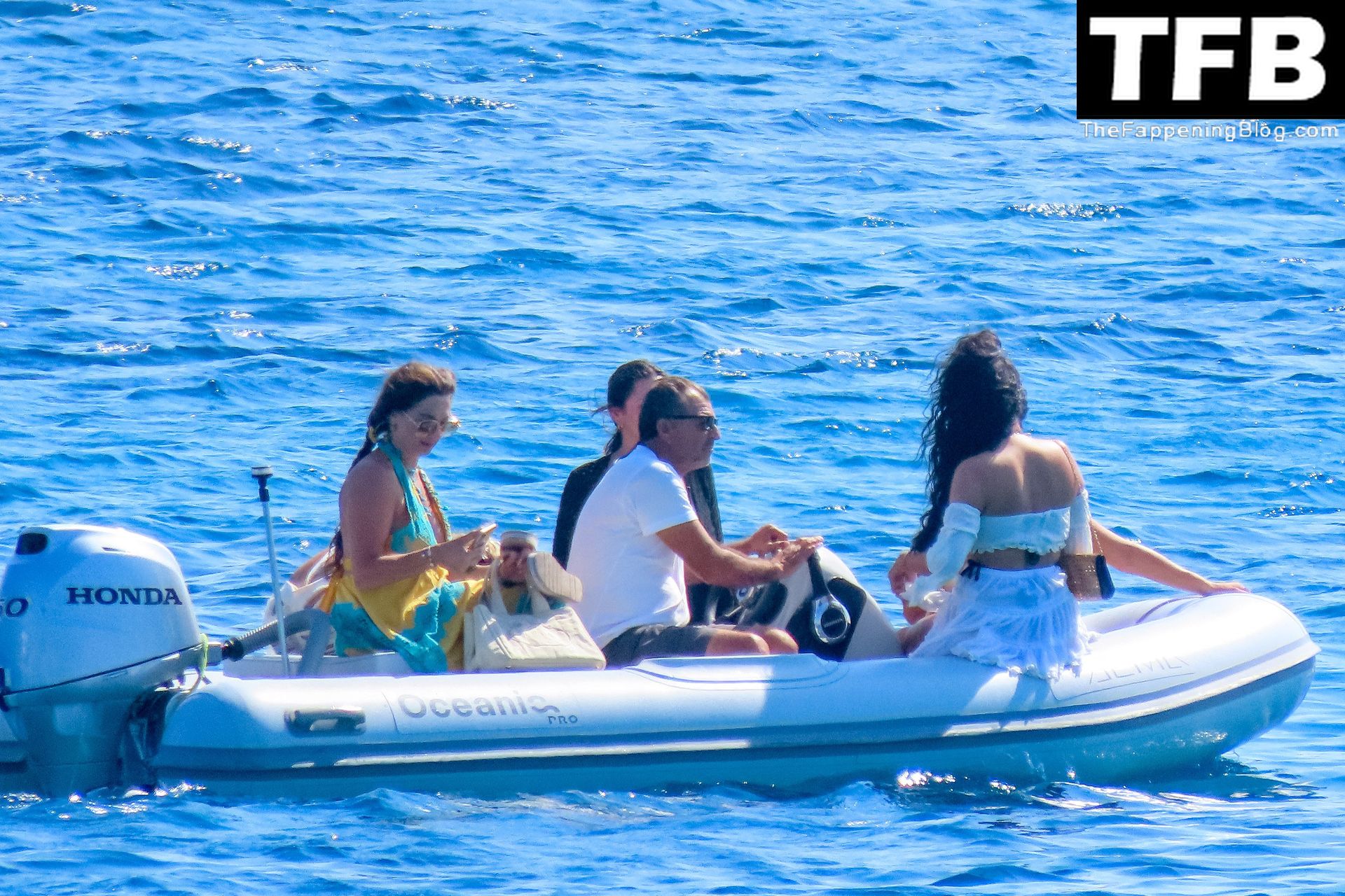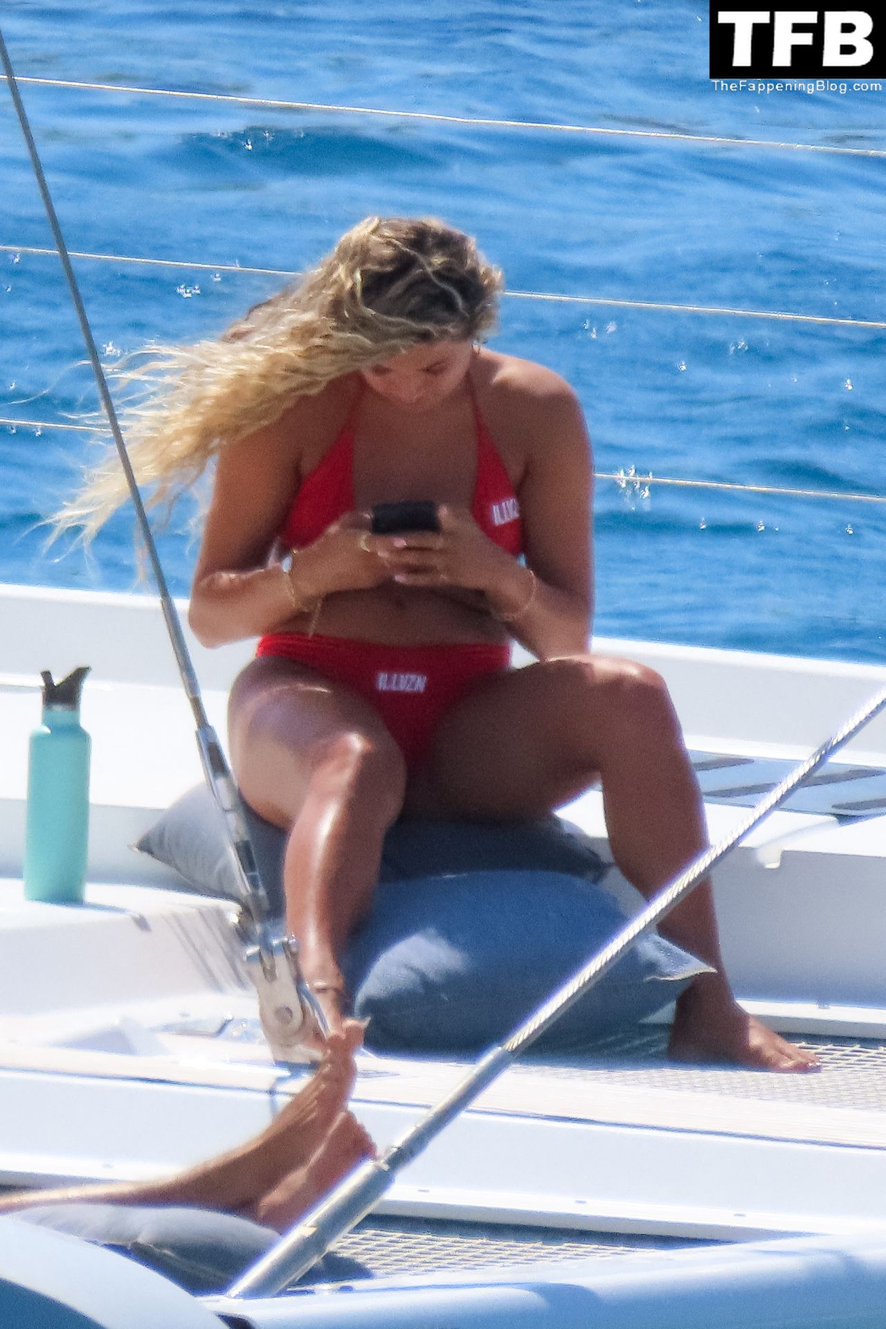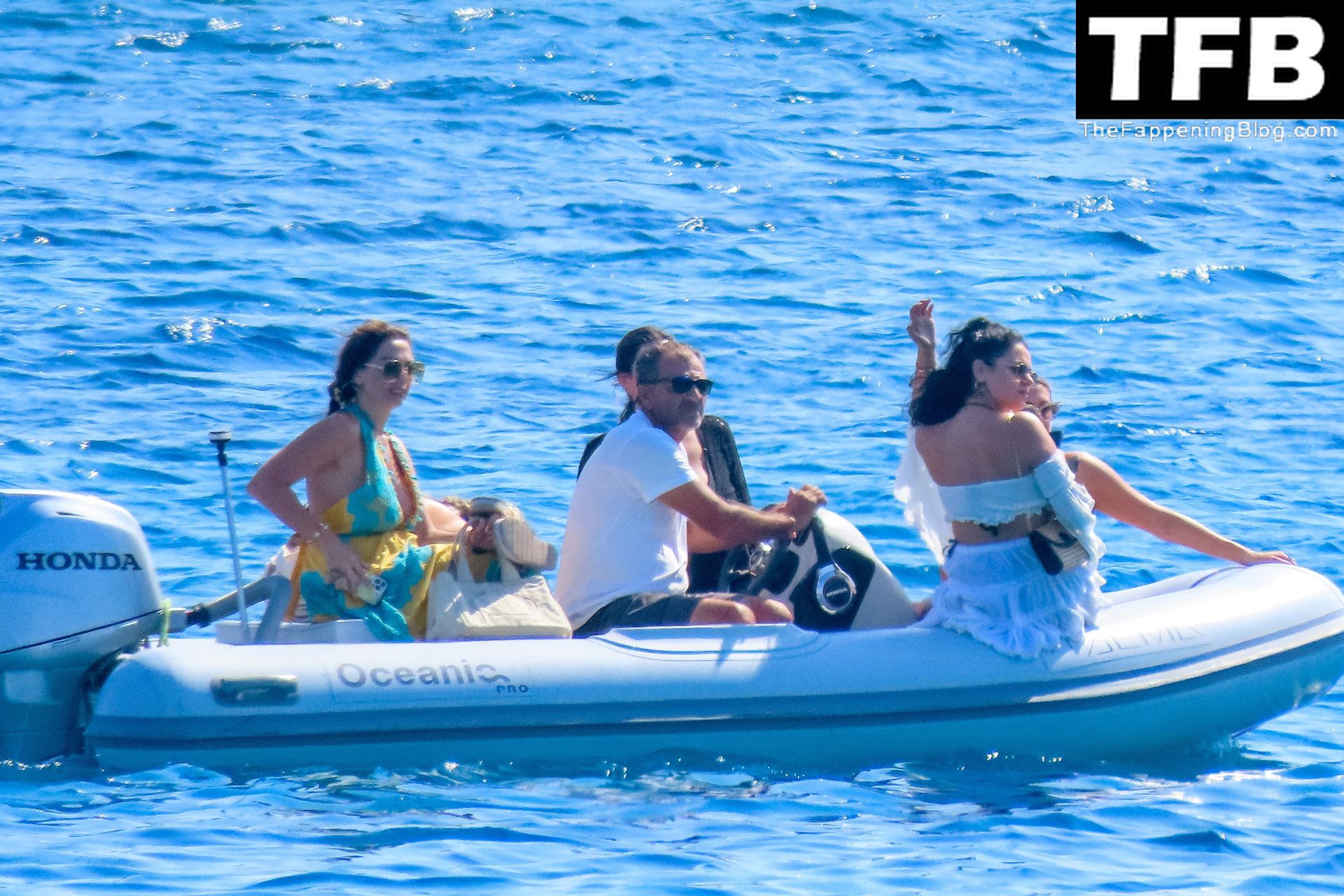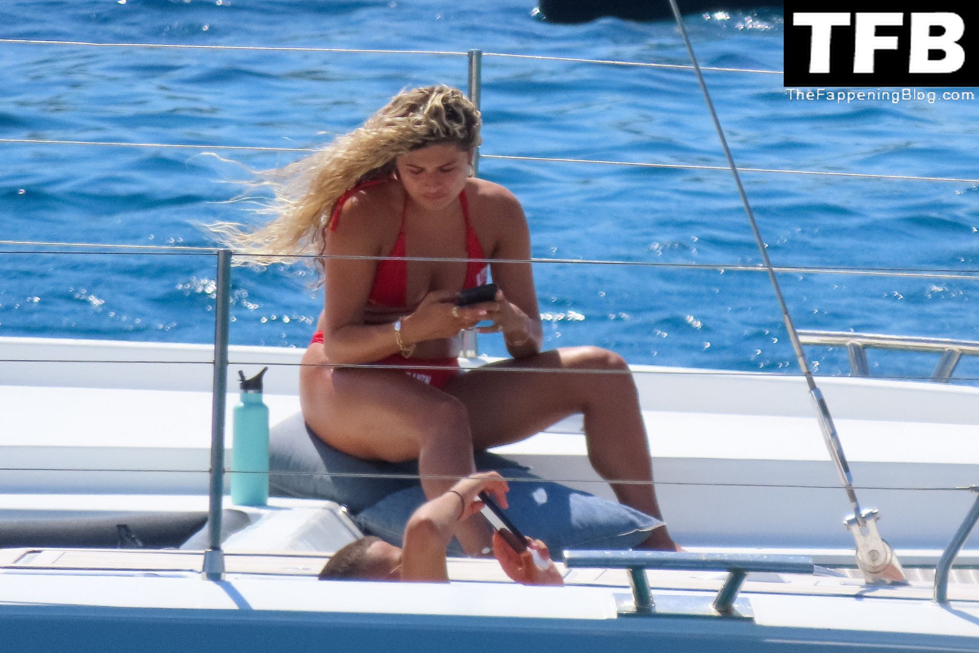 Um dia de catamarã em Mykonos! Tonia Buxton é vista de biquíni preto no catamarã com Antigoni Buxton, 21/08/2022.
