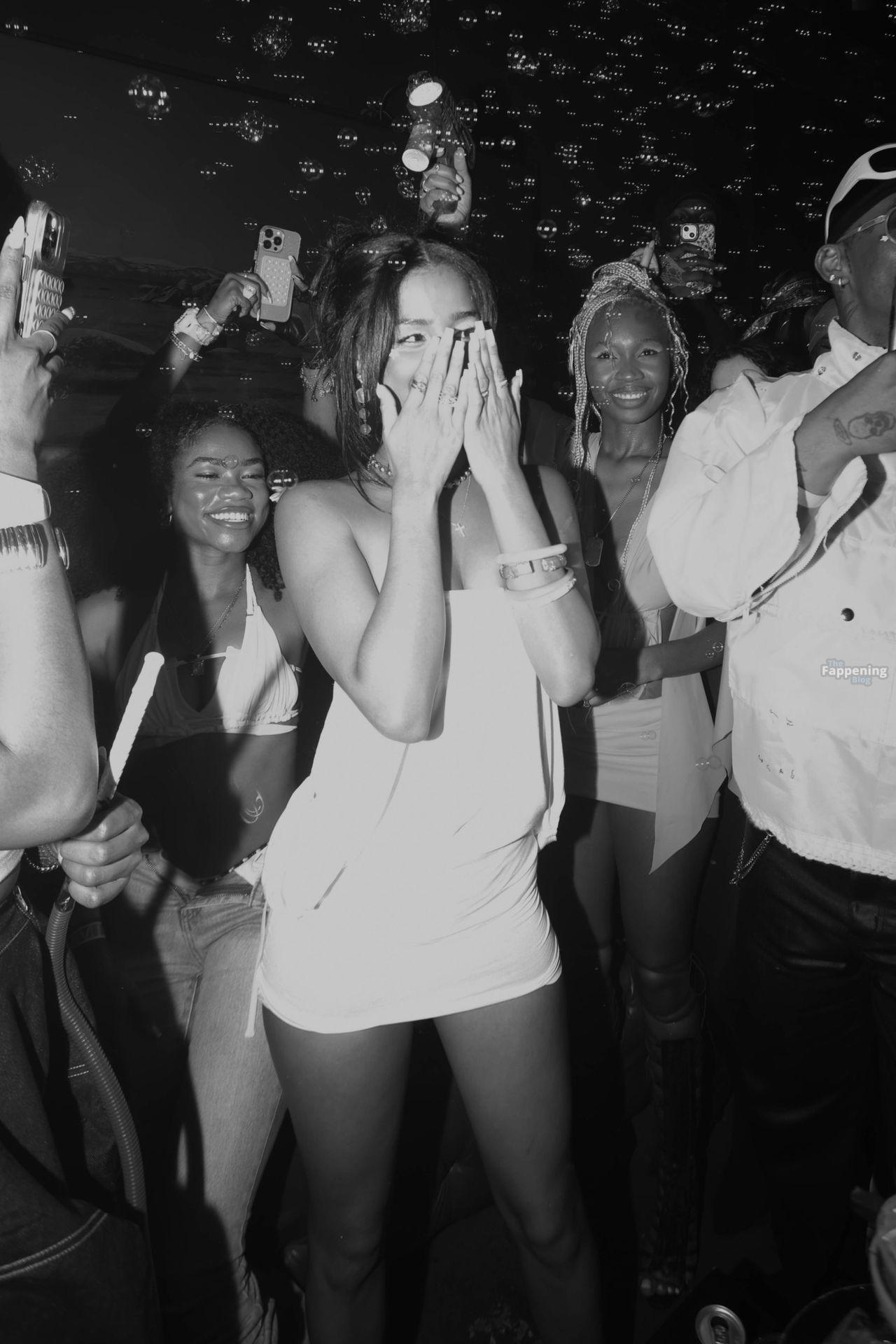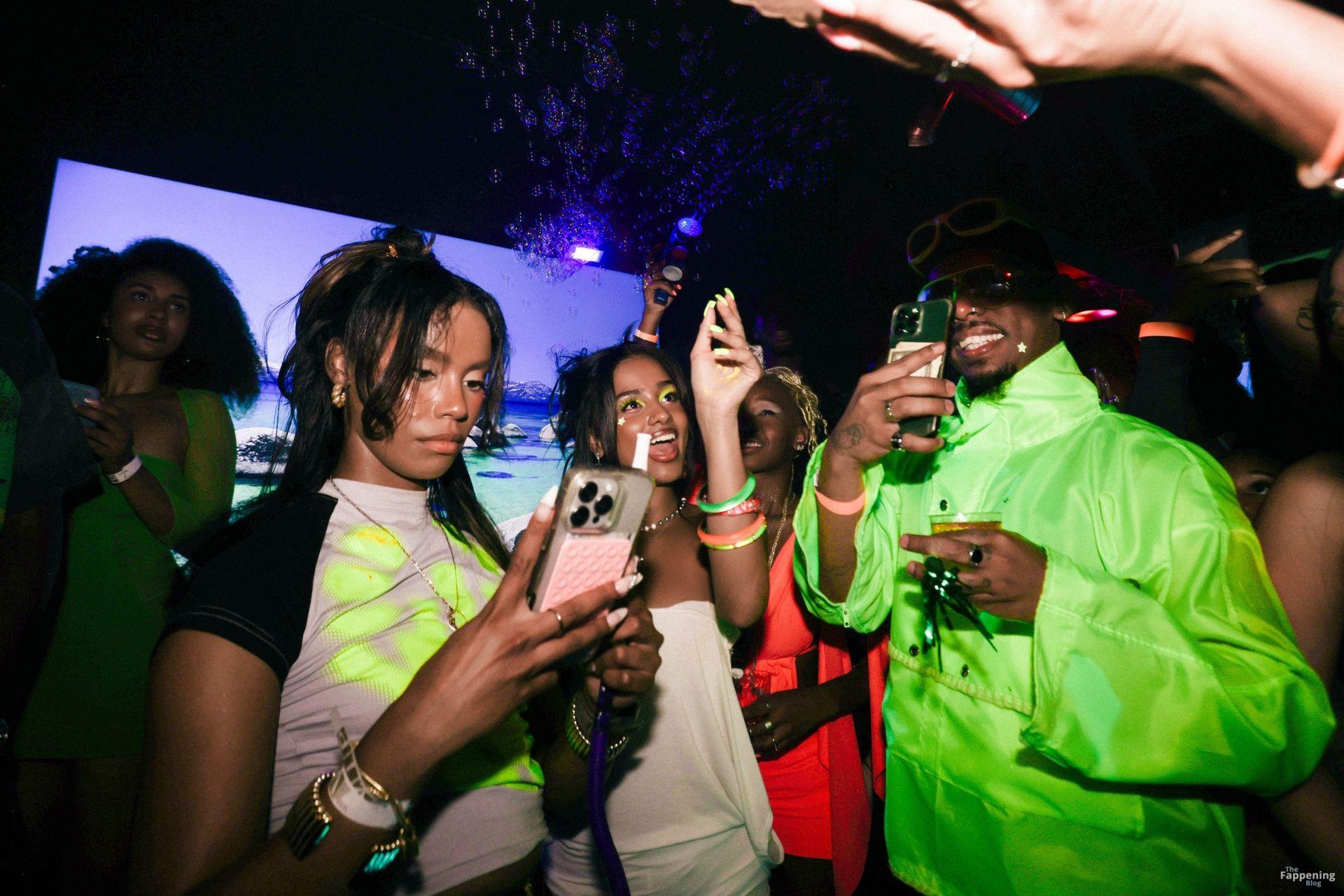 A cantora sul-africana e superestrela Tyla foi vista comemorando seu 24º aniversário com estilo no Tavares em Hollywood. A aniversariante deslumbrante usava um conjunto branco chique, com acessórios e maquiagem em verde neon, aproveitando a noite com amigos no local animado.