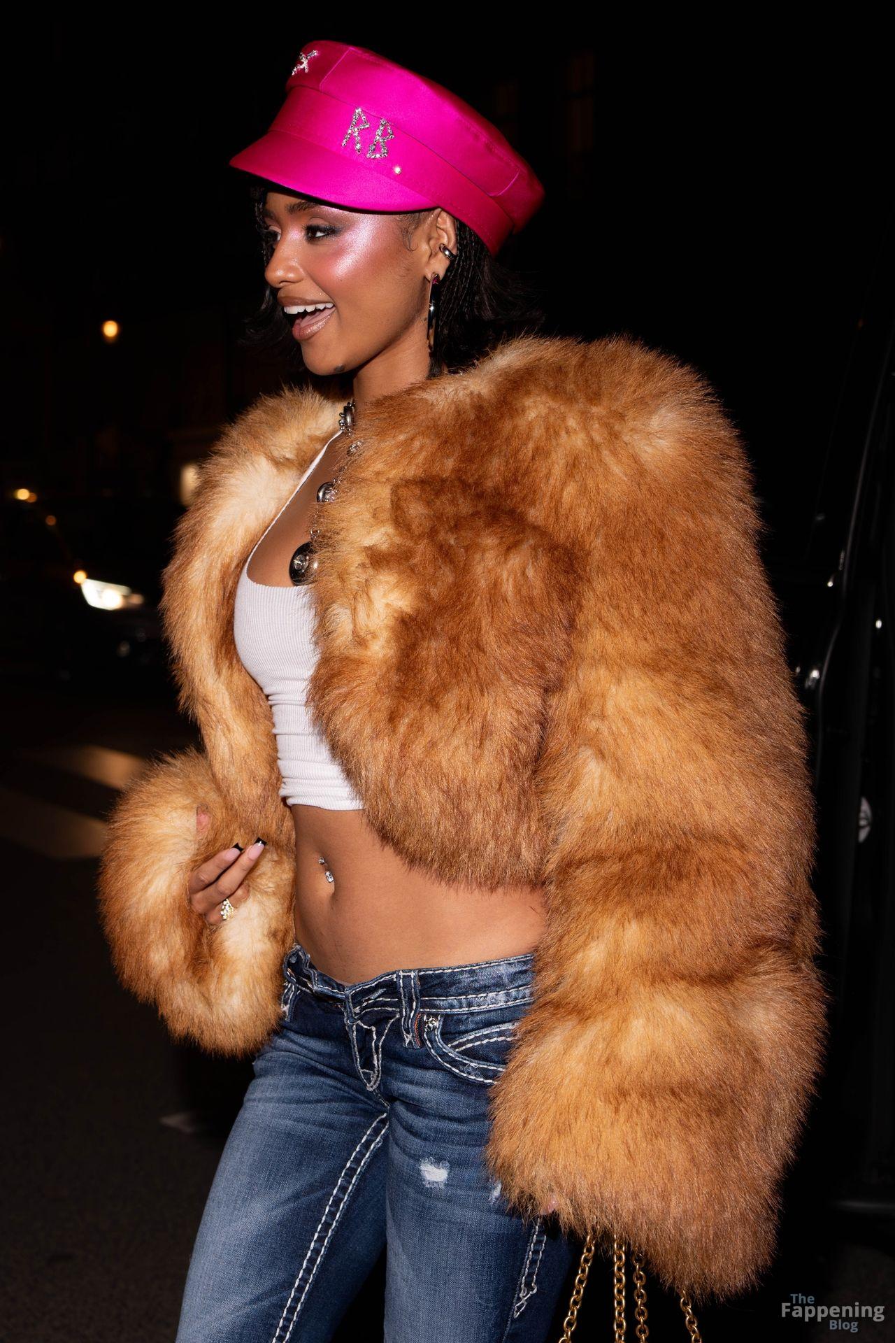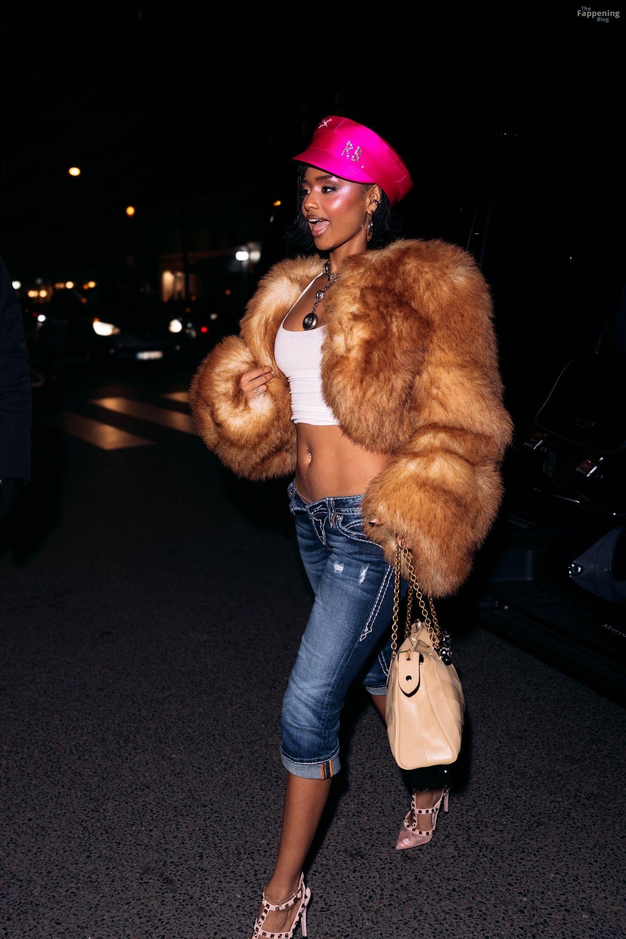 Tyla ilumina a noite ao sair para um evento Valentino, exibindo seu visual ousado e fashionista com um chapéu rosa da Ruslan Baginskiy.