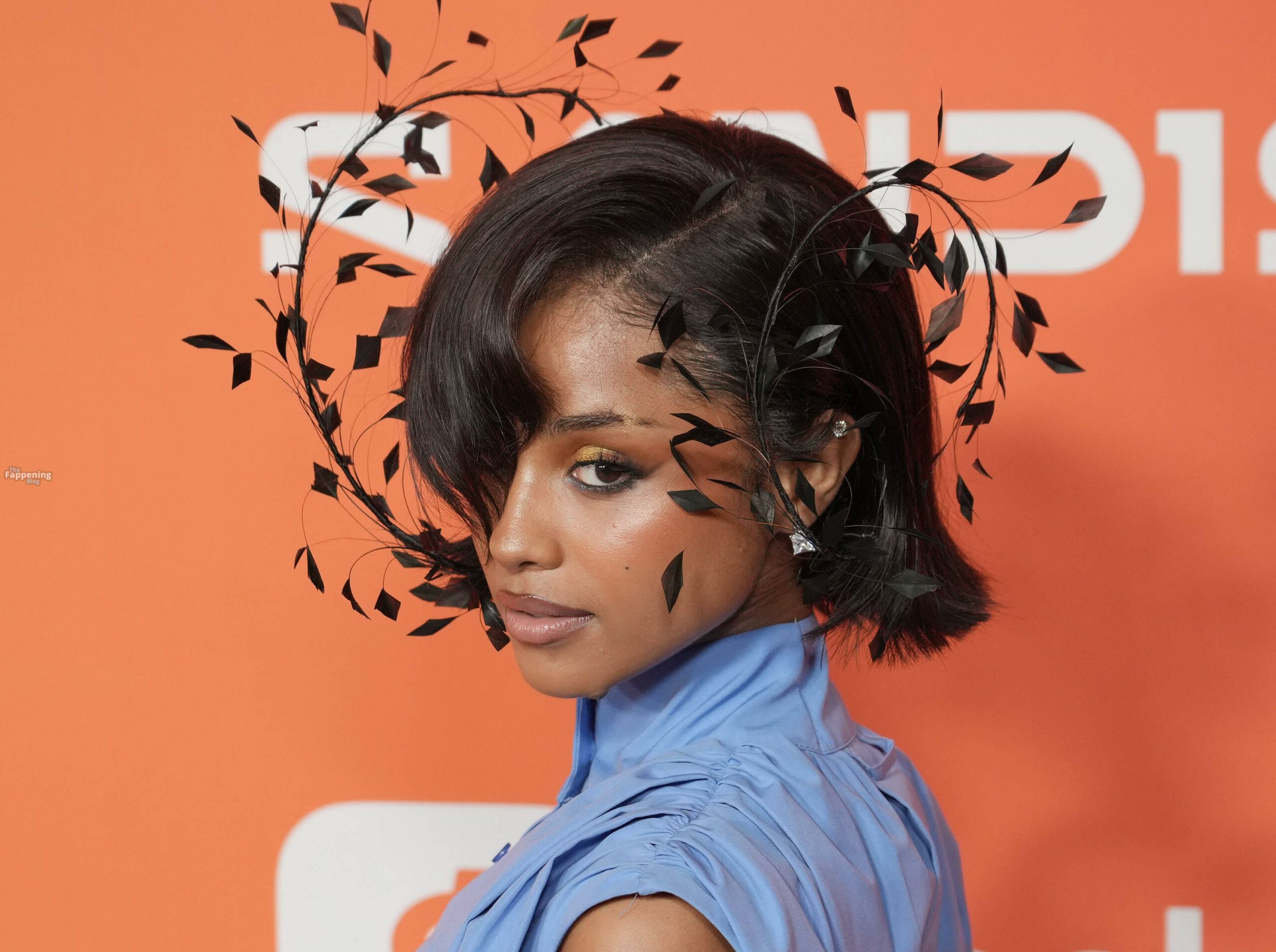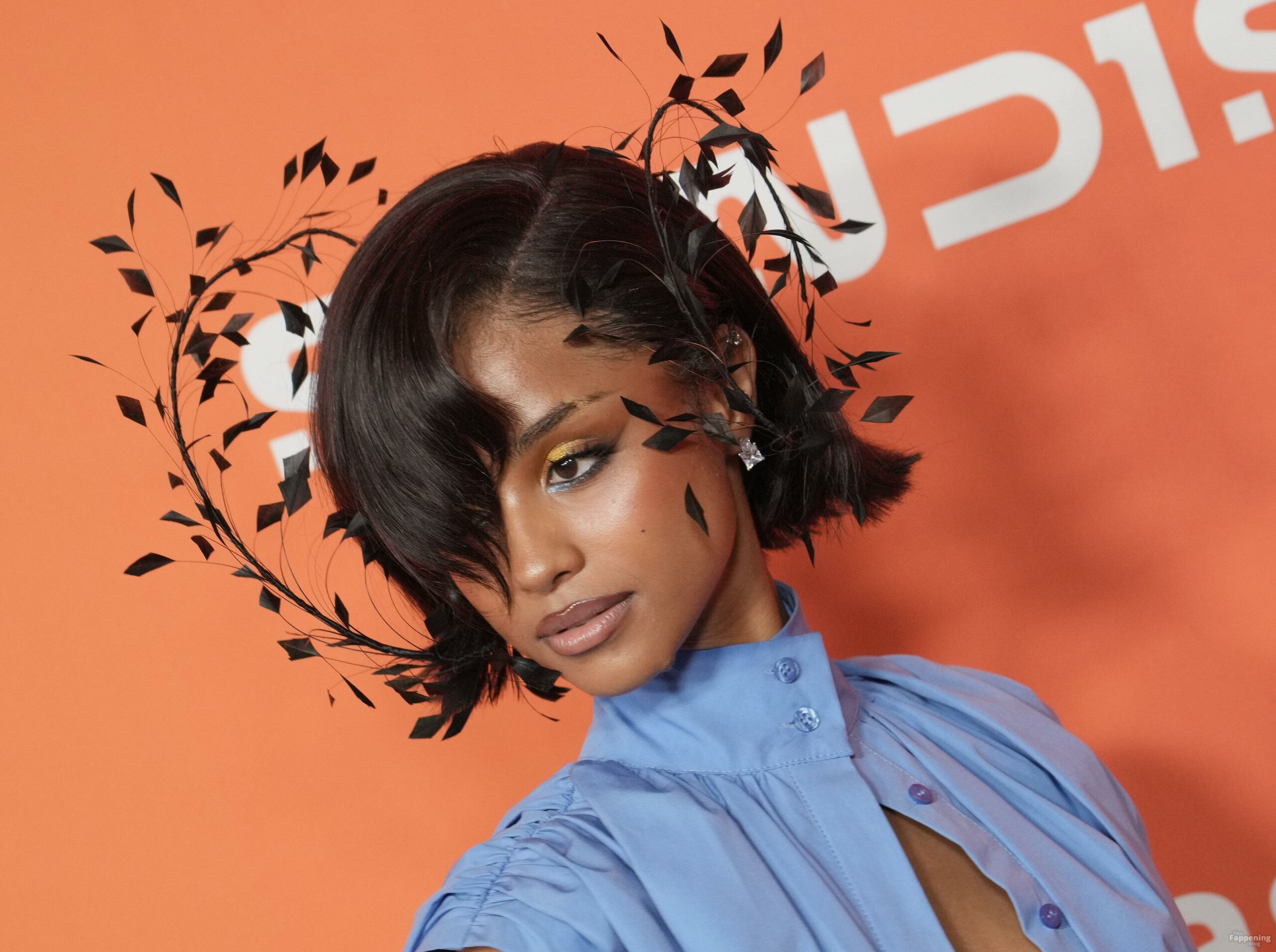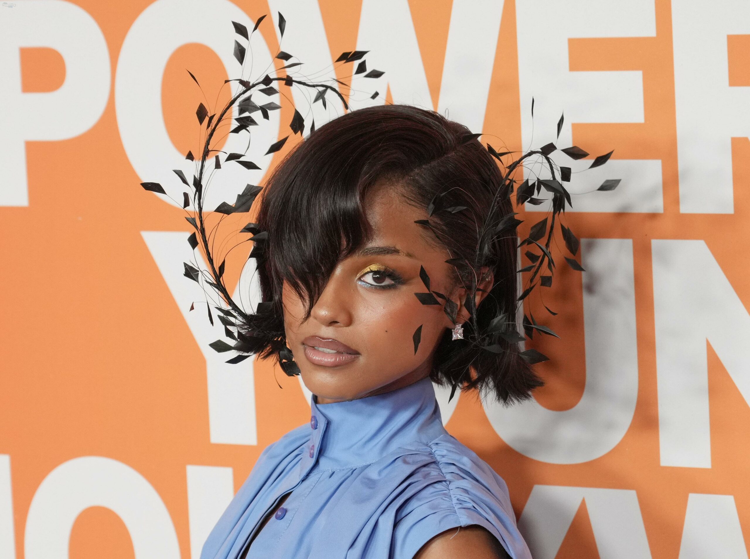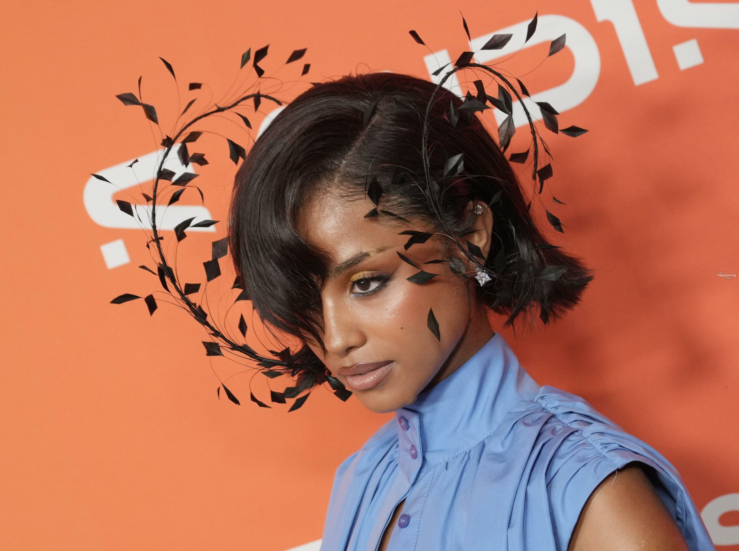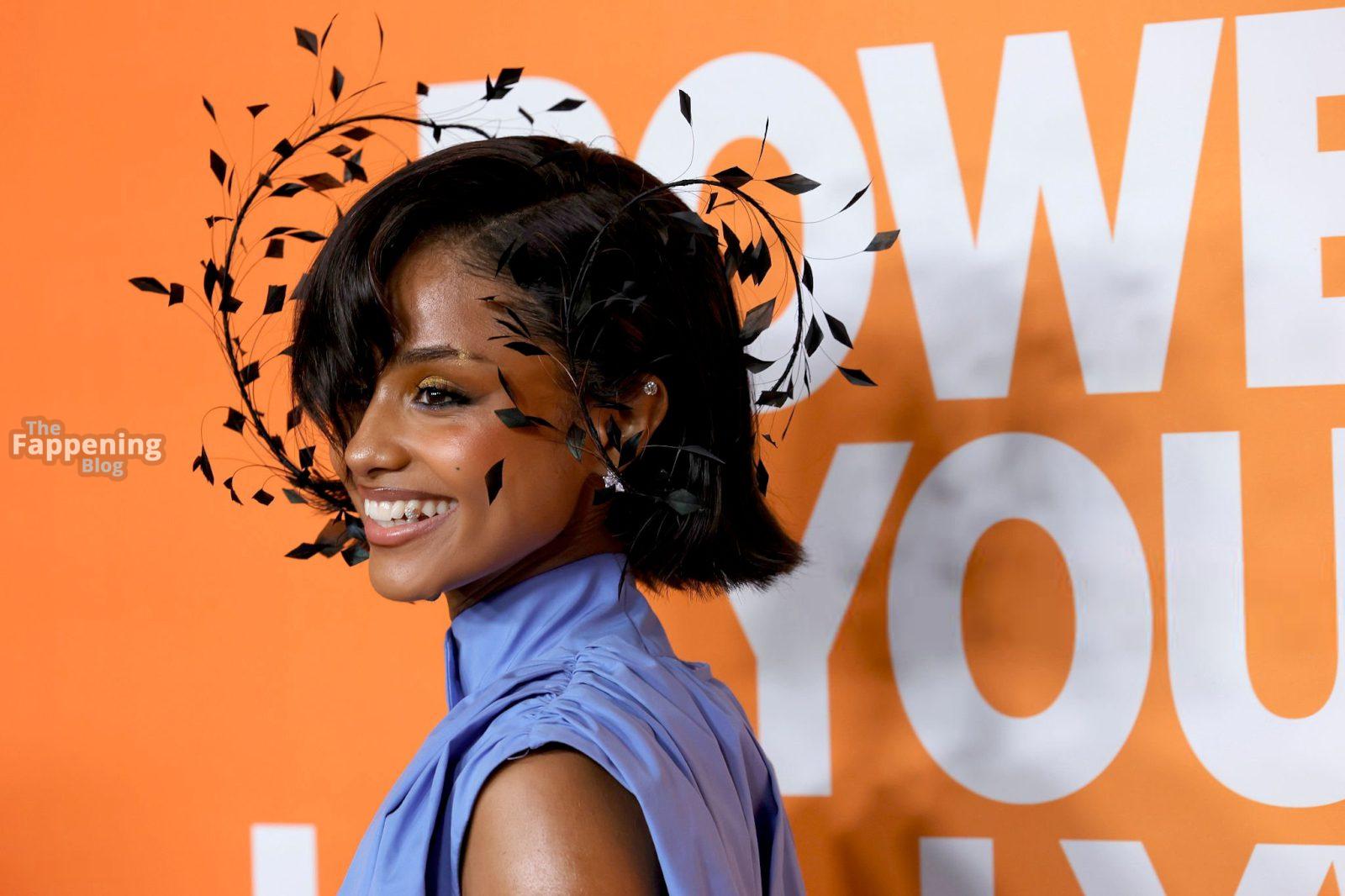 Tyla foi fotografada no evento Variety Power Of Young Hollywood 2025 no Four Seasons em Beverly Hills, usando um top azul sem sutiã com um flex de seios, uma minissaia.