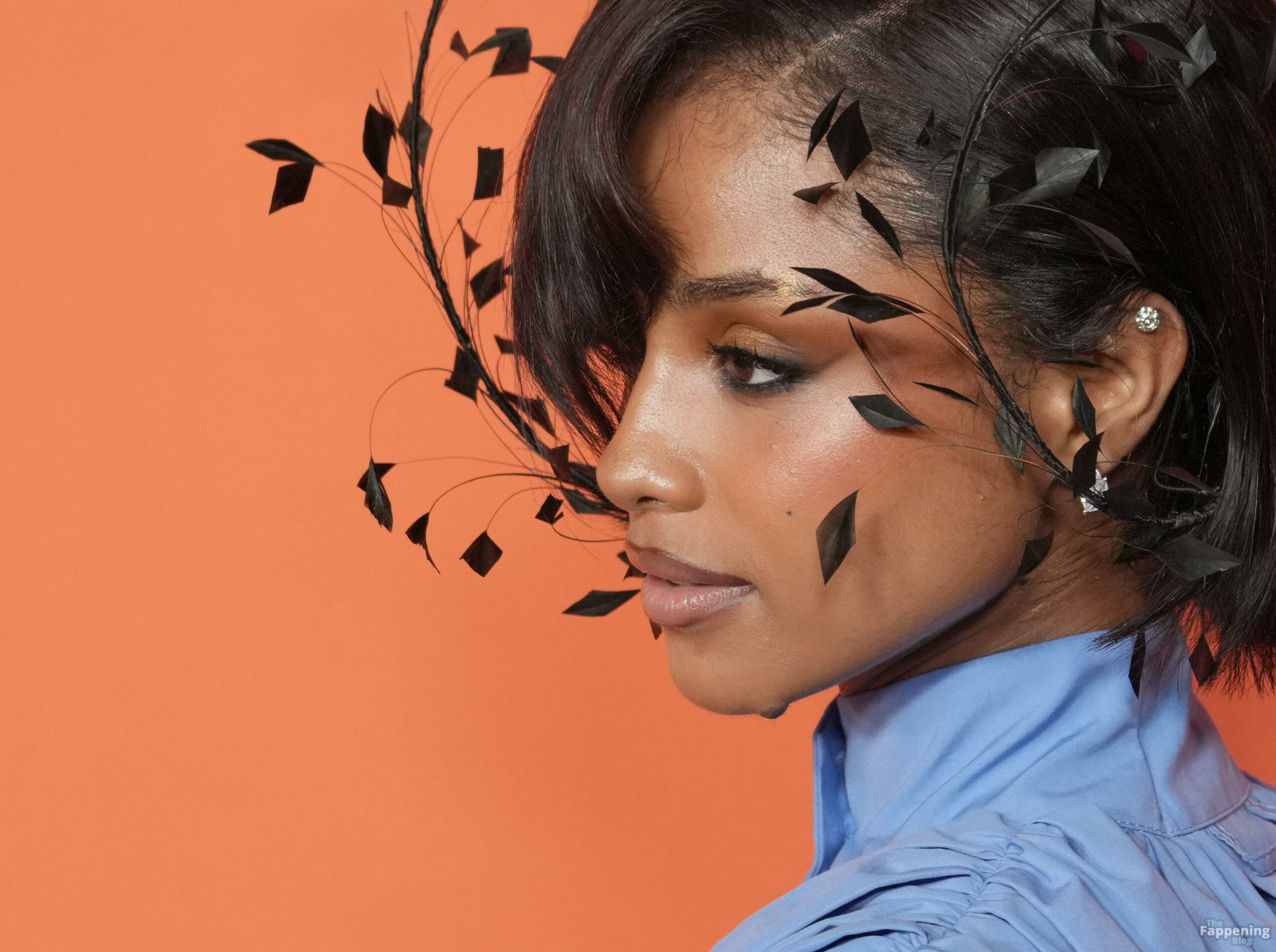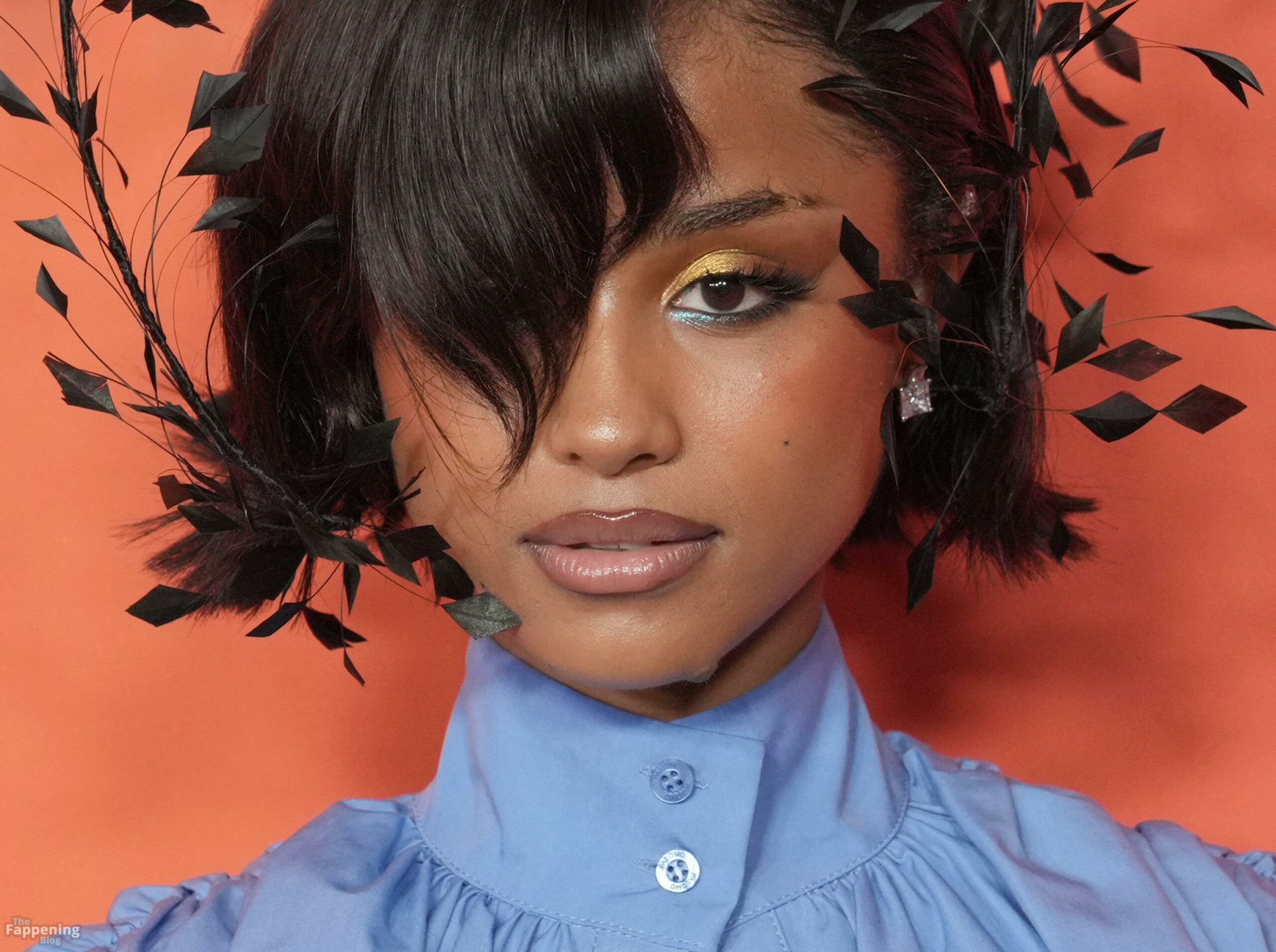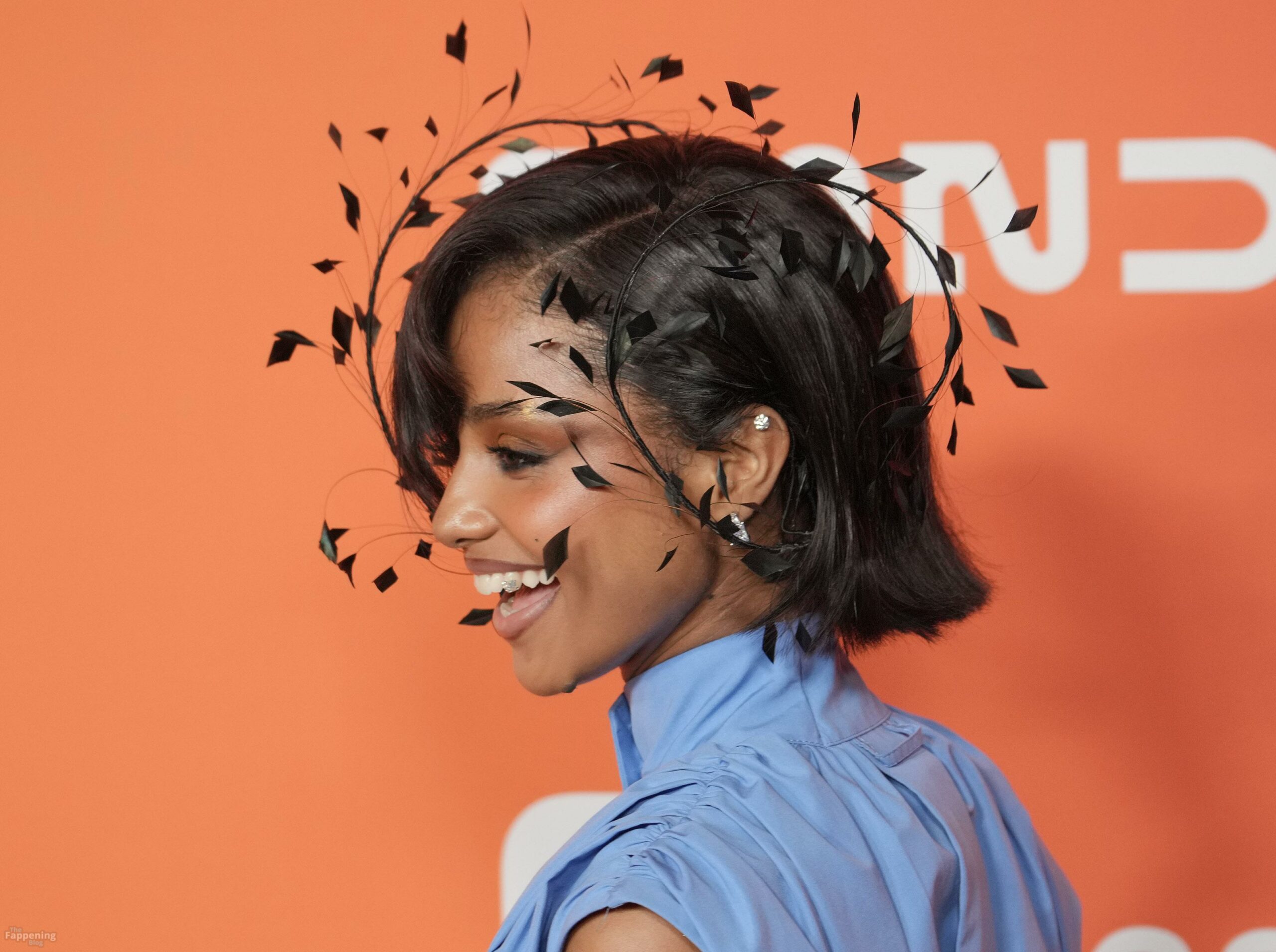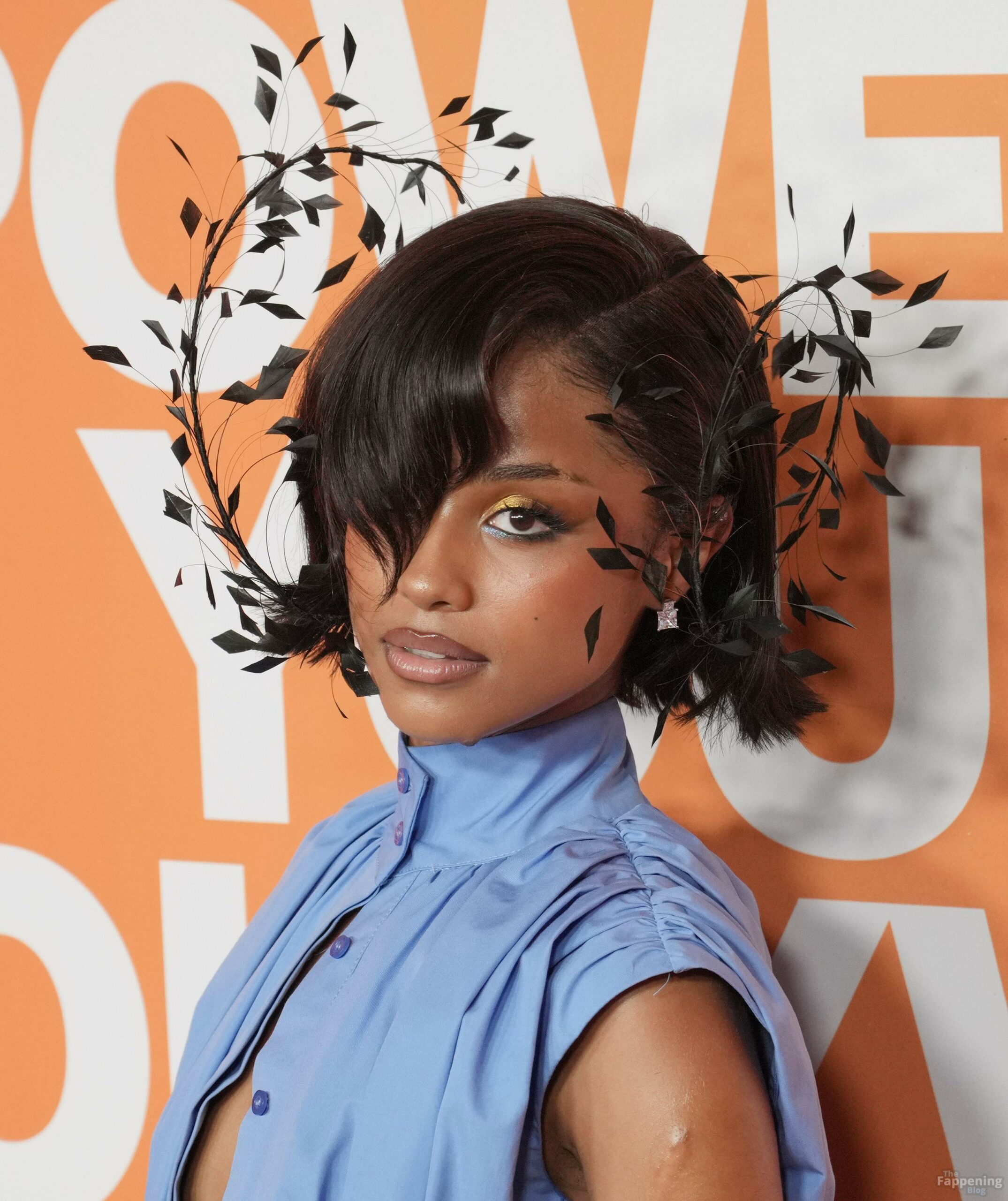 Tyla foi fotografada no evento Variety Power Of Young Hollywood 2025 no Four Seasons em Beverly Hills, usando um top azul sem sutiã com um flex de seios, uma minissaia.