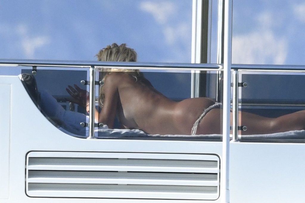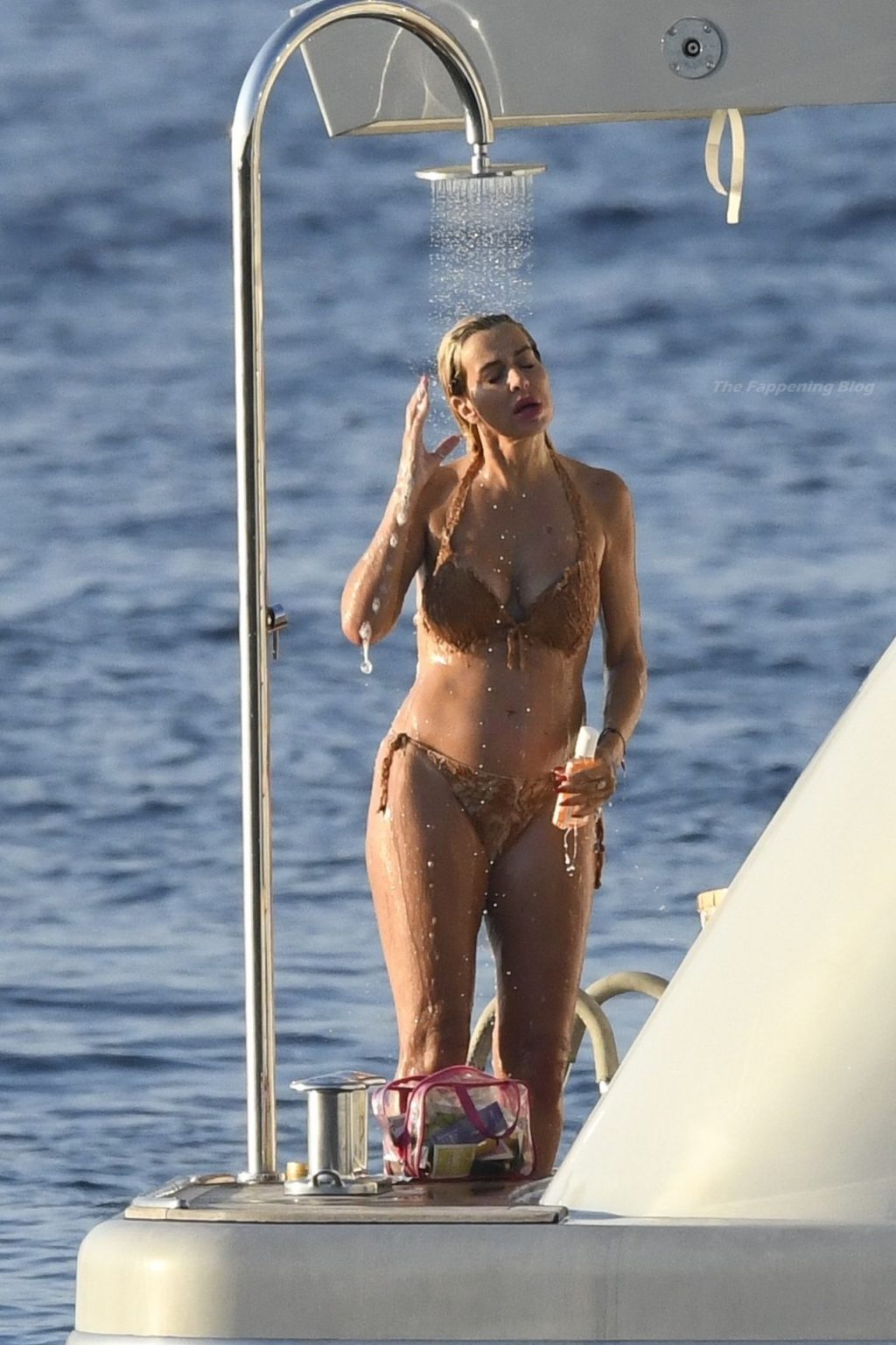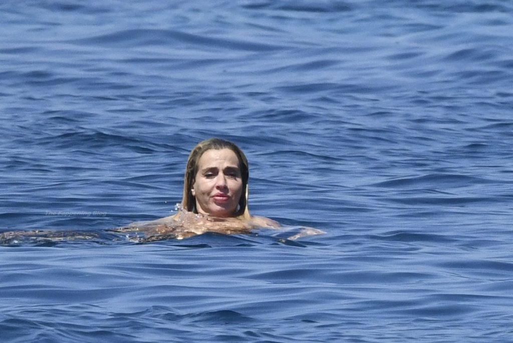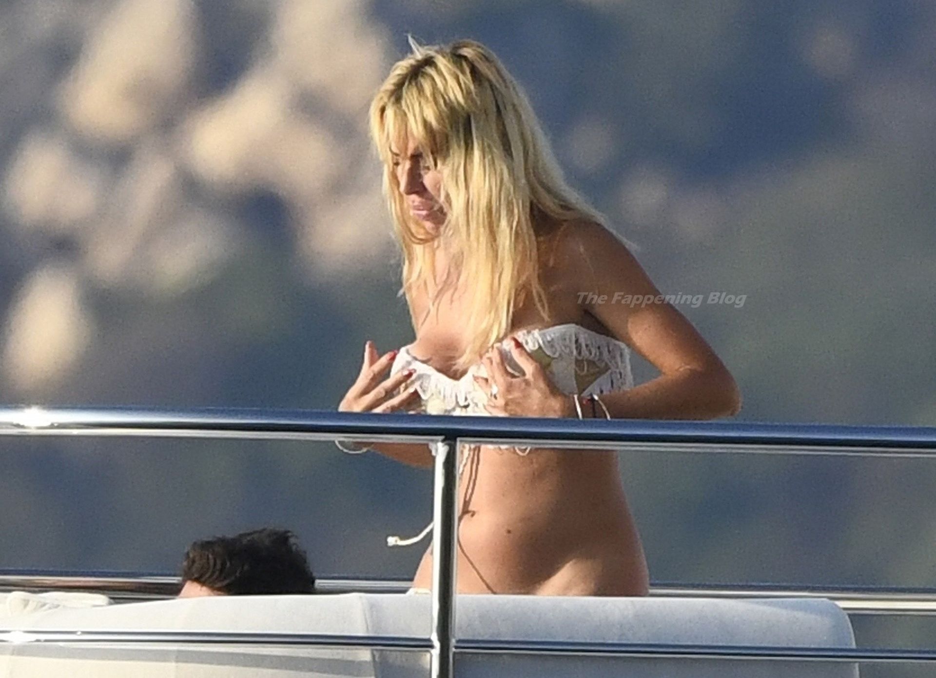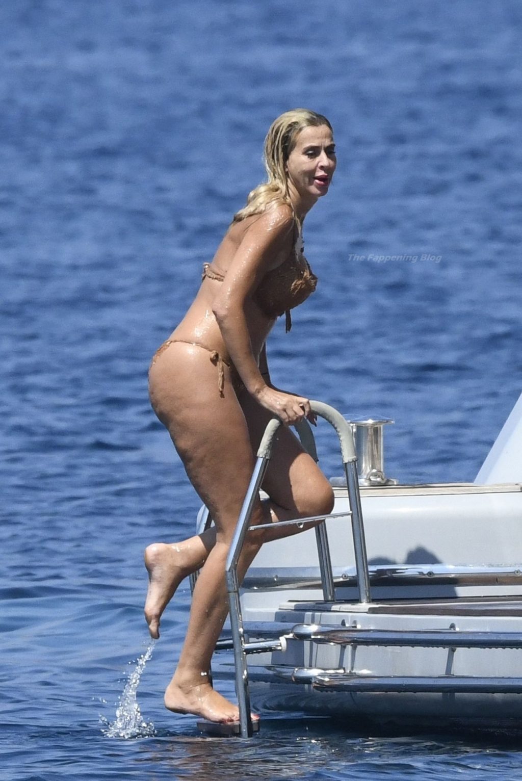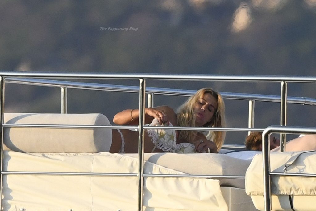A atriz italiana Valeria Marini, que é concorrente da versão espanhola do “Ilha dos Famosos”, foi fotografada nua se divertindo em um barco durante férias com alguns amigos na Ilha de La Maddalena, na Sardenha, em 26/08/2019.