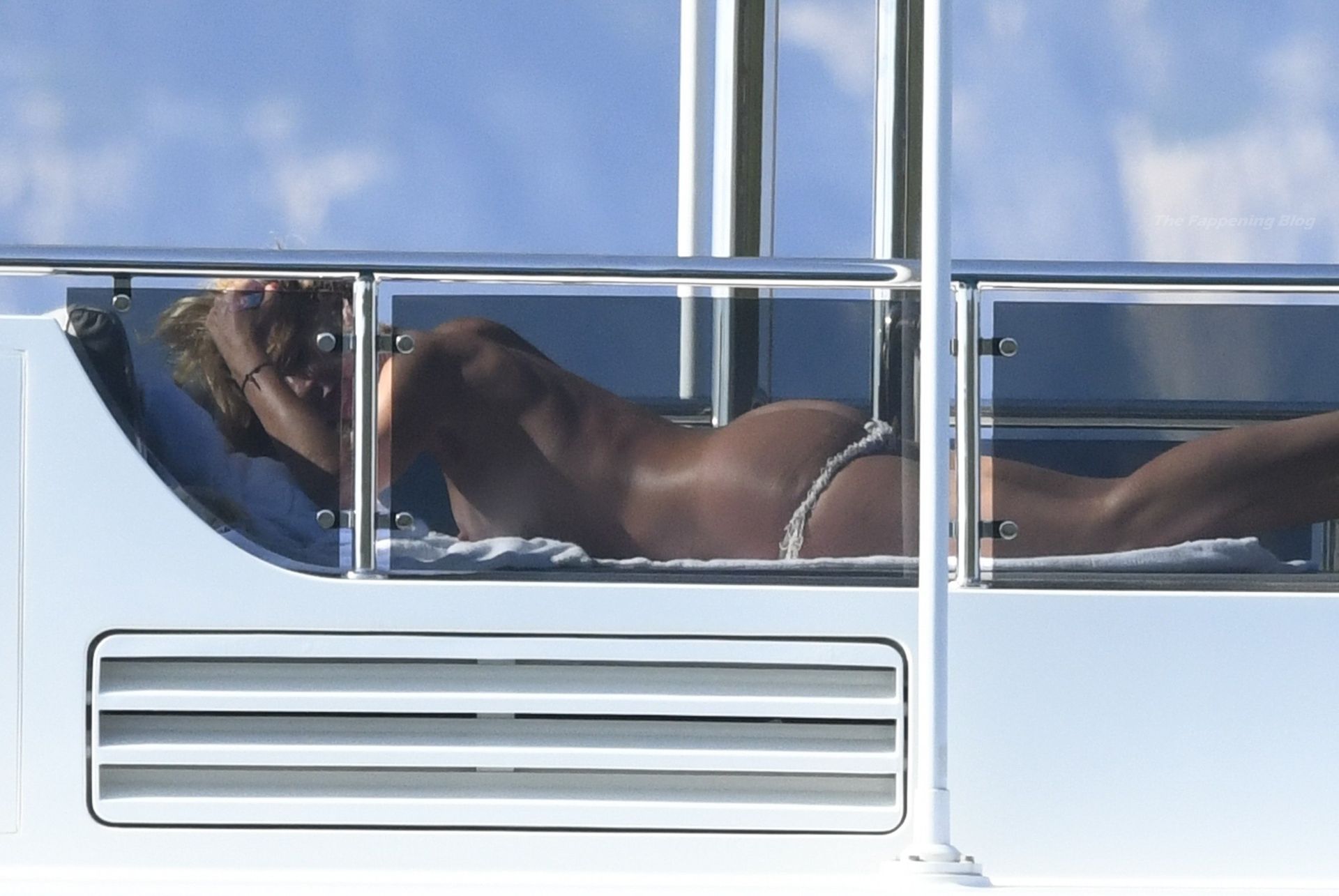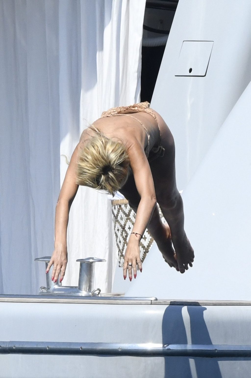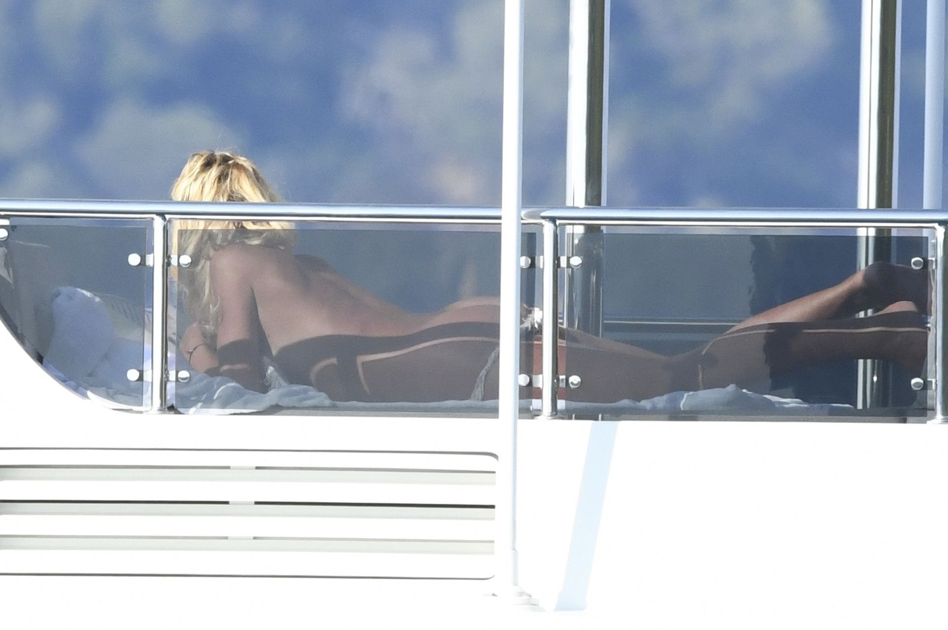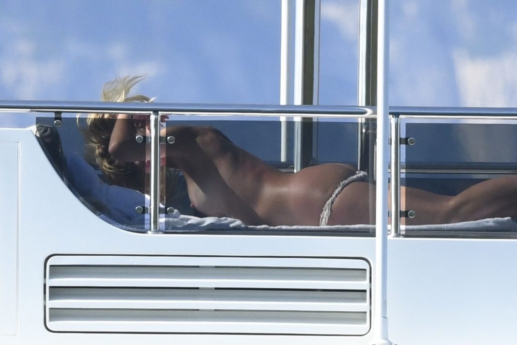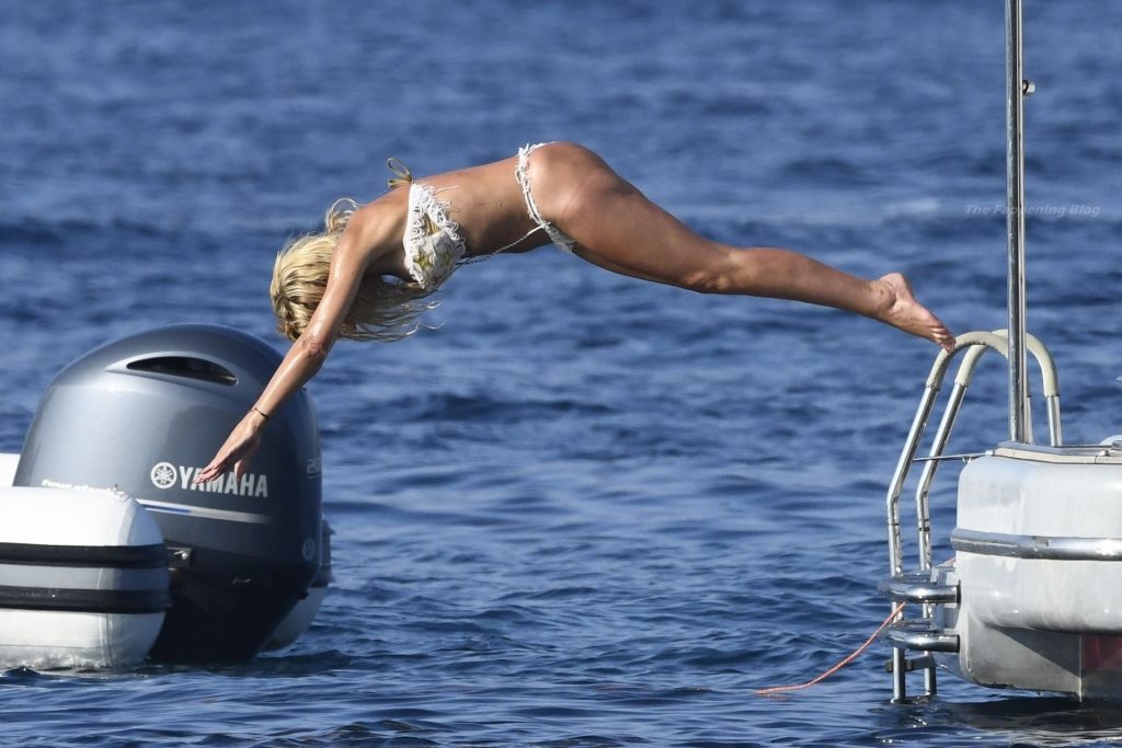 A atriz italiana Valeria Marini, que é concorrente da versão espanhola do “Ilha dos Famosos”, foi fotografada nua se divertindo em um barco durante férias com alguns amigos na Ilha de La Maddalena, na Sardenha, em 26/08/2019.