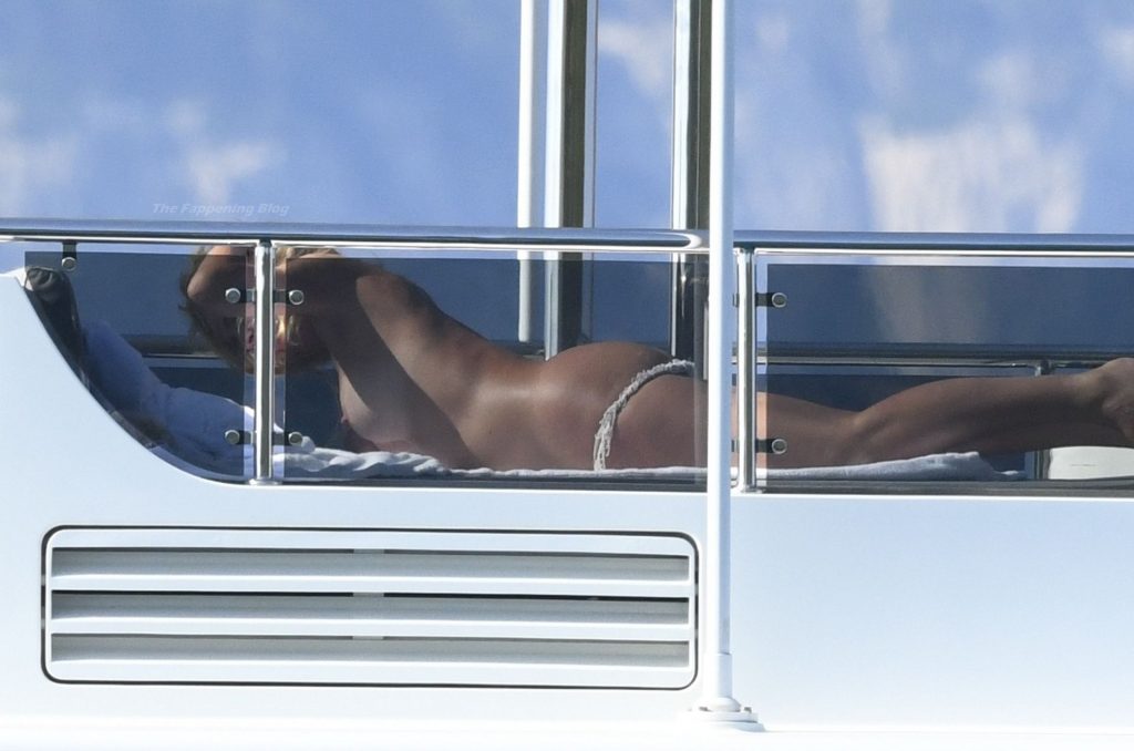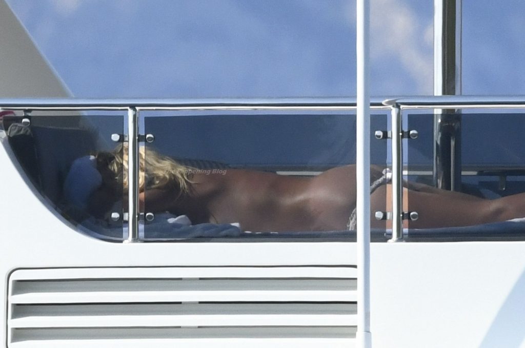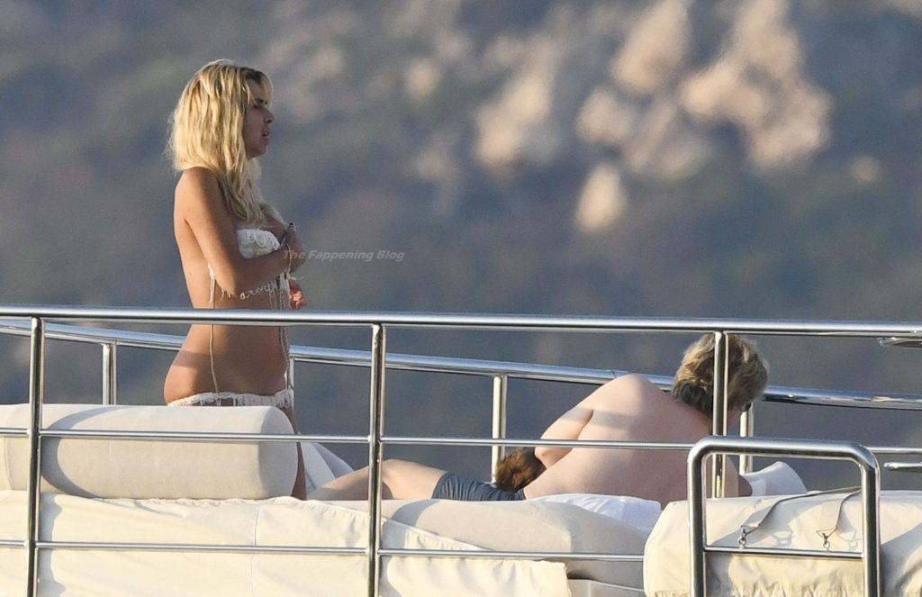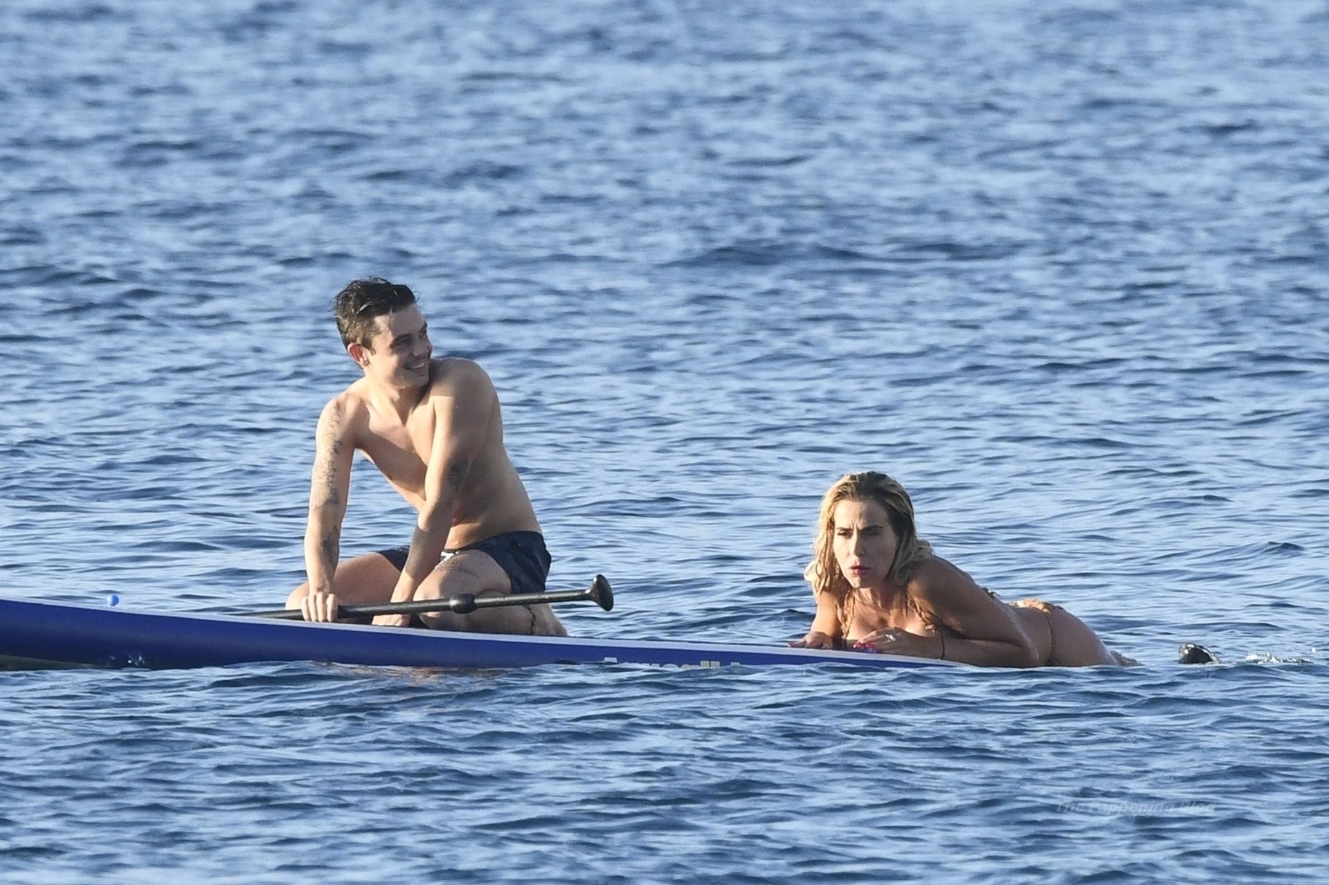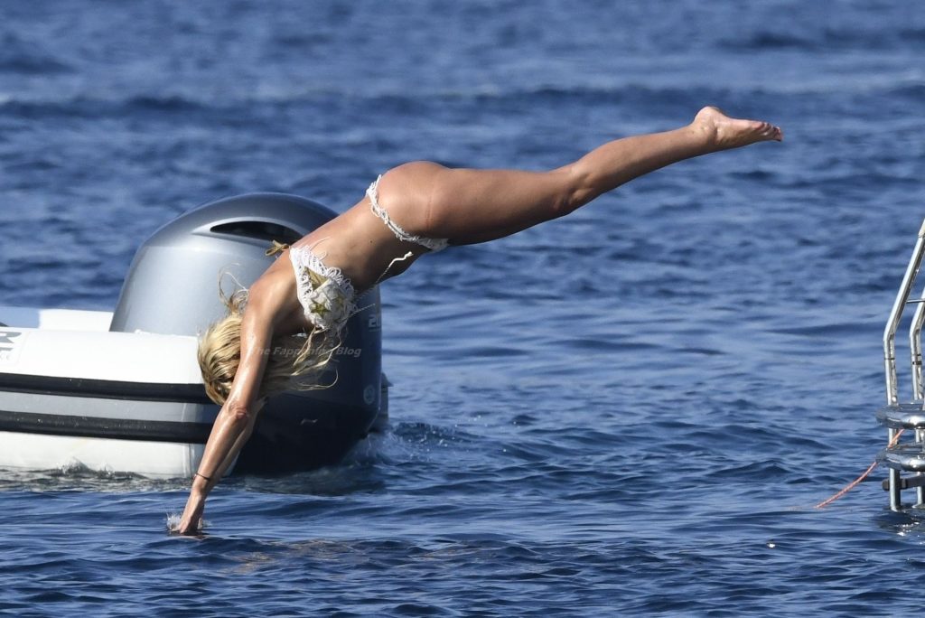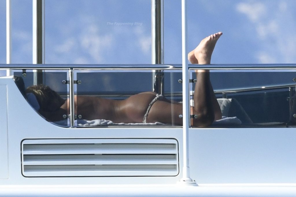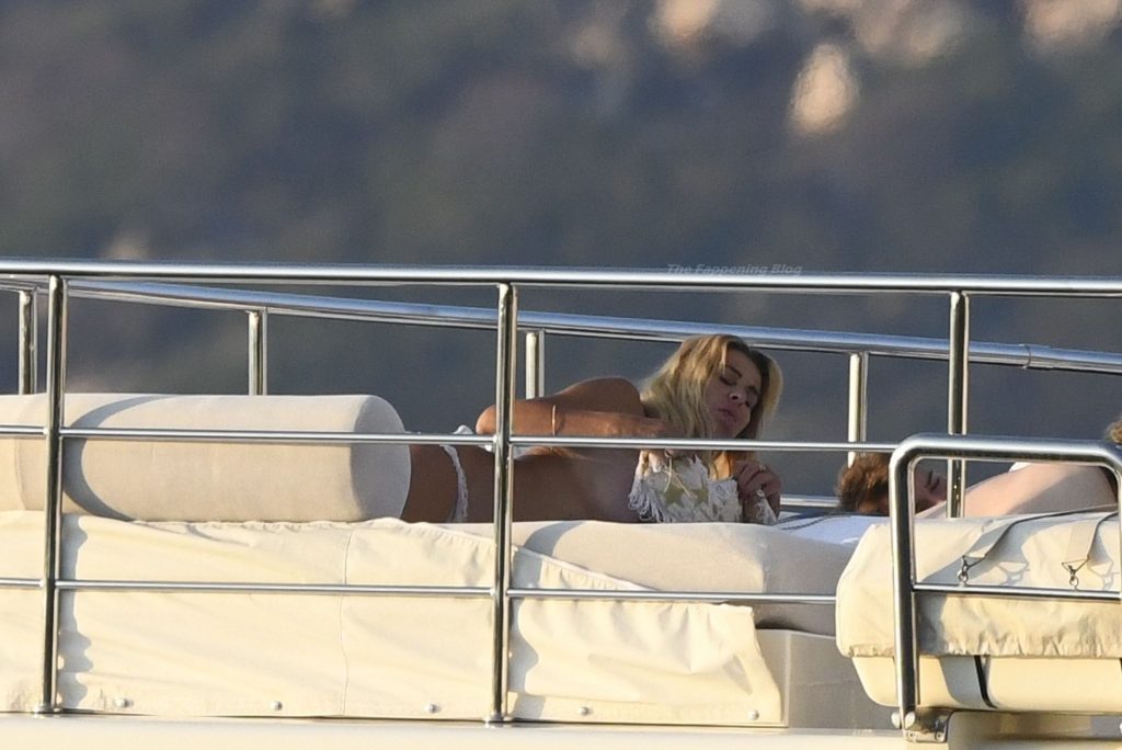 A atriz italiana Valeria Marini, que é concorrente da versão espanhola do “Ilha dos Famosos”, foi fotografada nua se divertindo em um barco durante férias com alguns amigos na Ilha de La Maddalena, na Sardenha, em 26/08/2019.