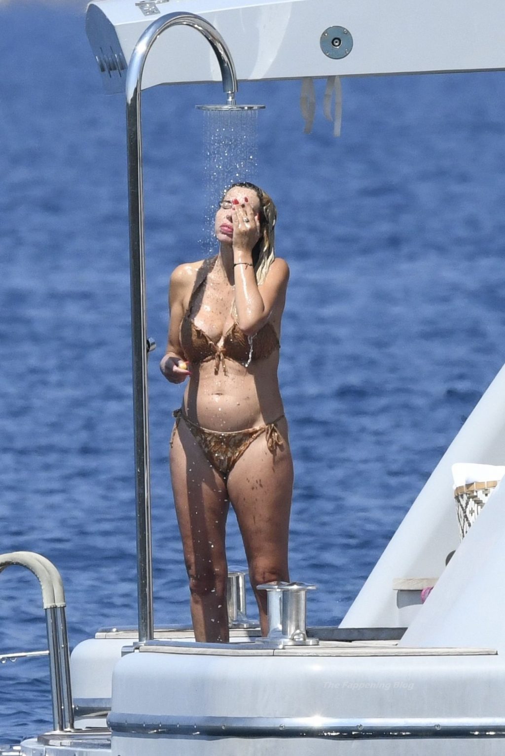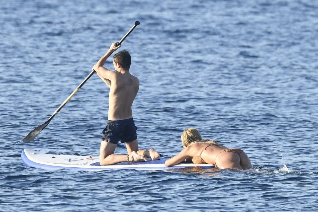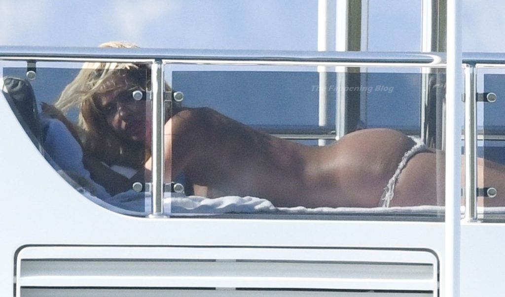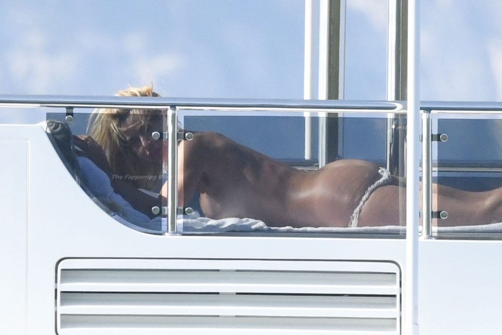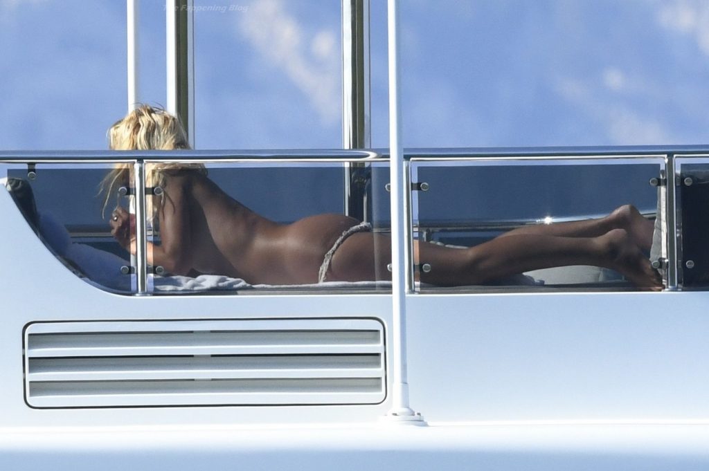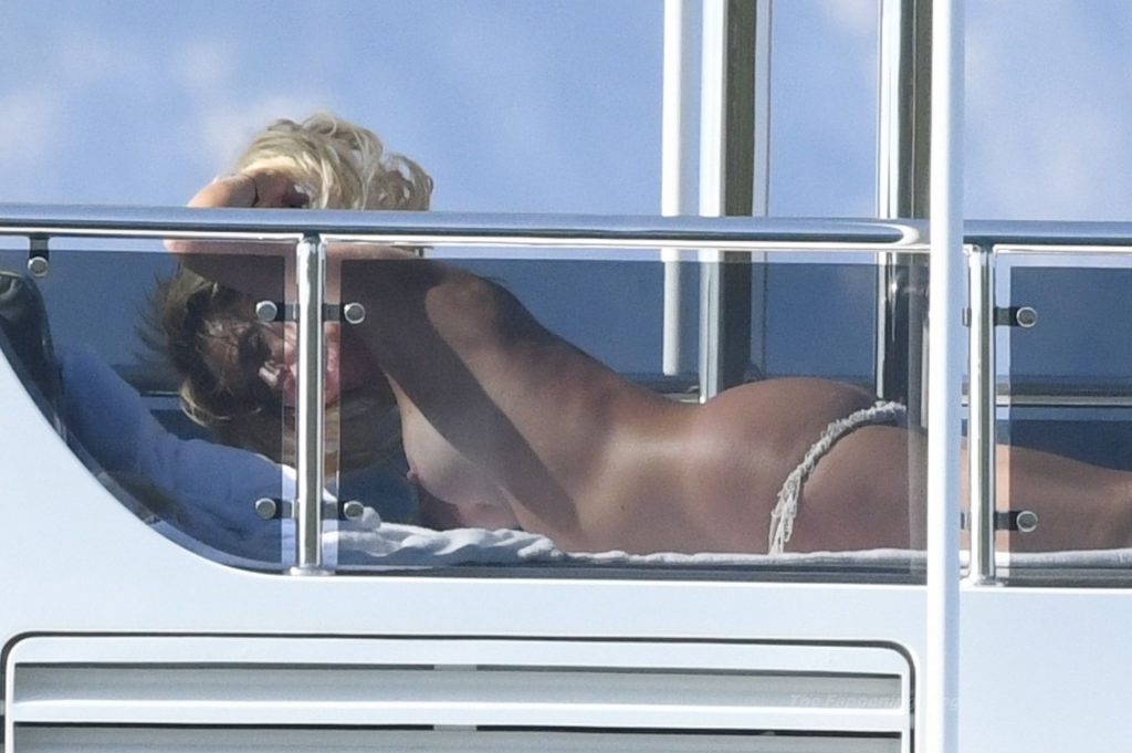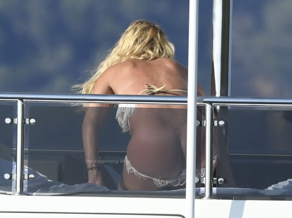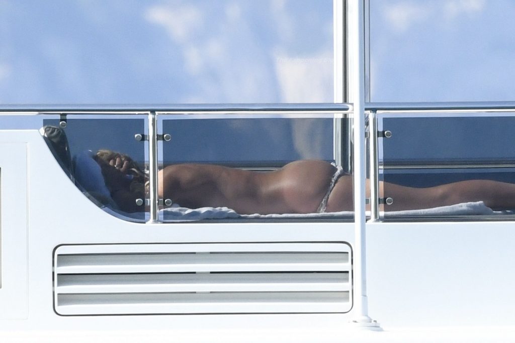 A atriz italiana Valeria Marini, que é concorrente da versão espanhola do “Ilha dos Famosos”, foi fotografada nua se divertindo em um barco durante férias com alguns amigos na Ilha de La Maddalena, na Sardenha, em 26/08/2019.