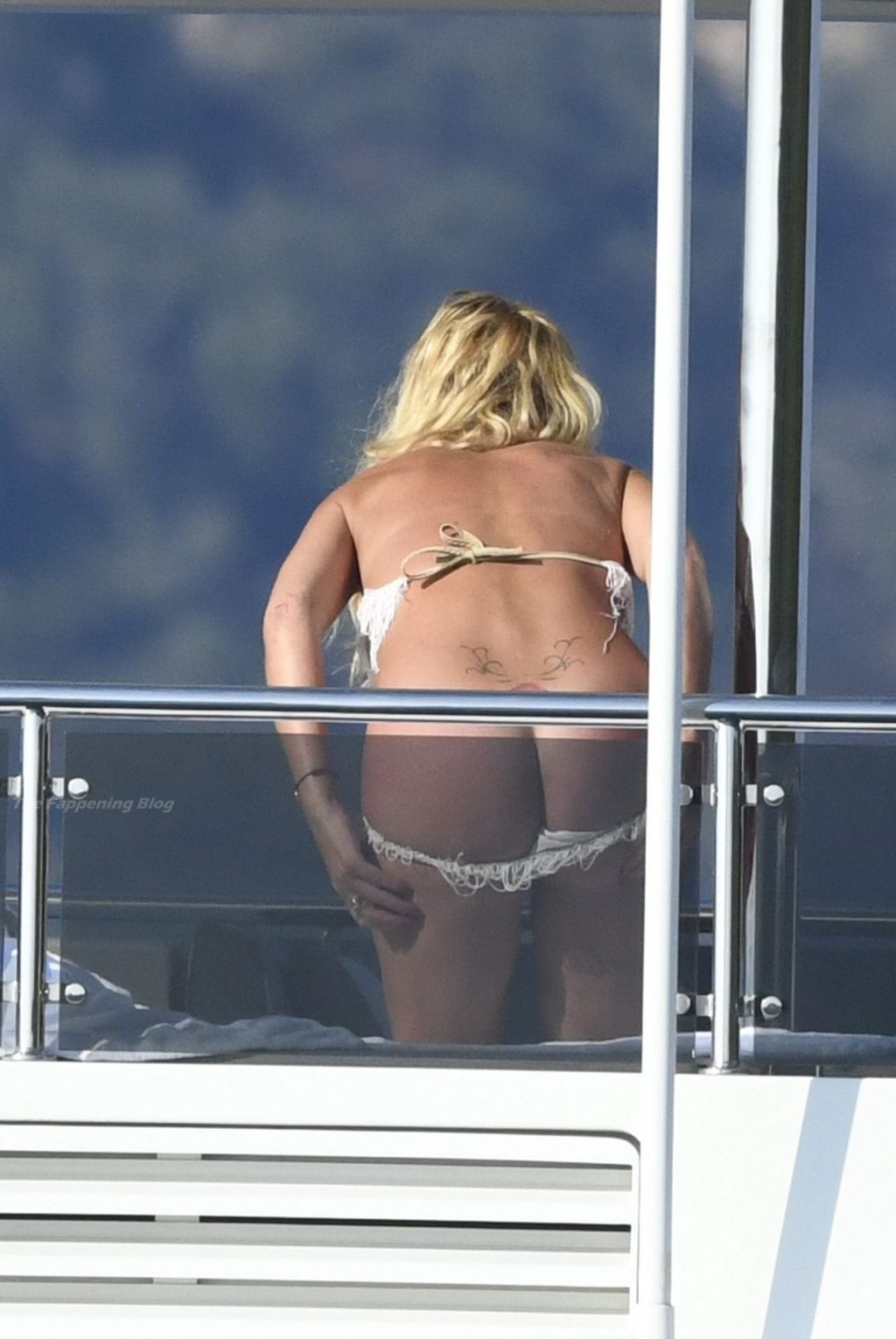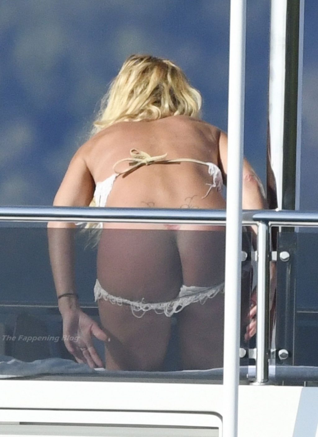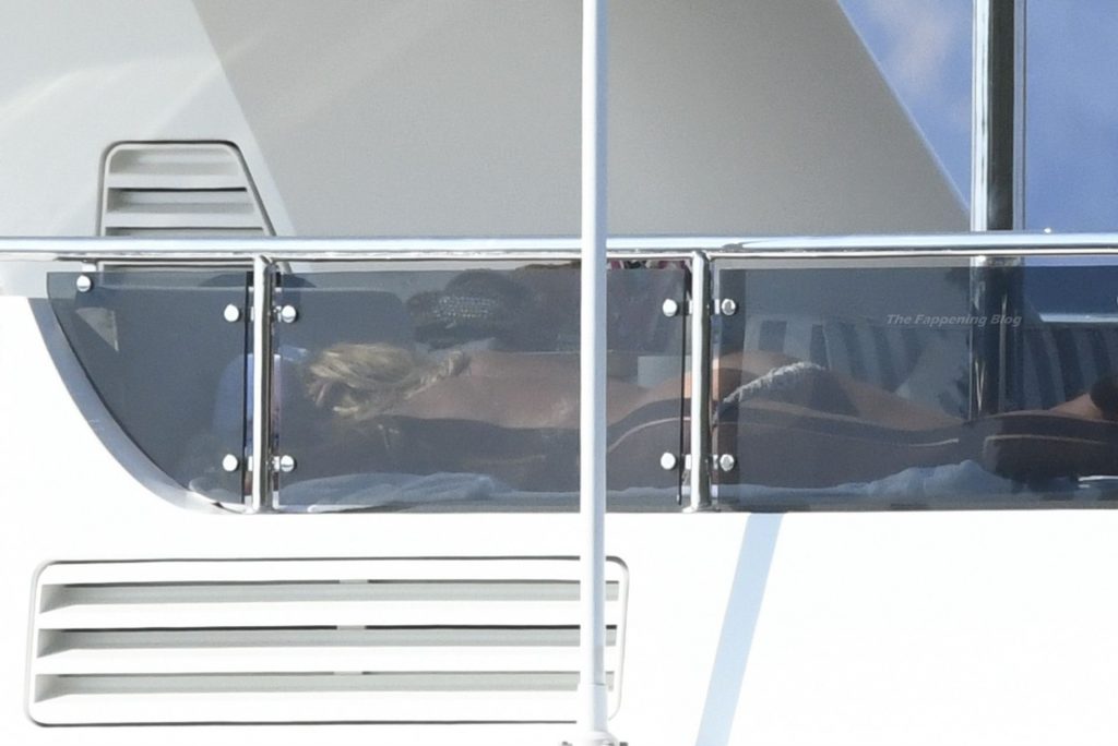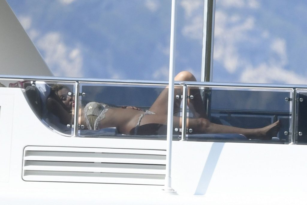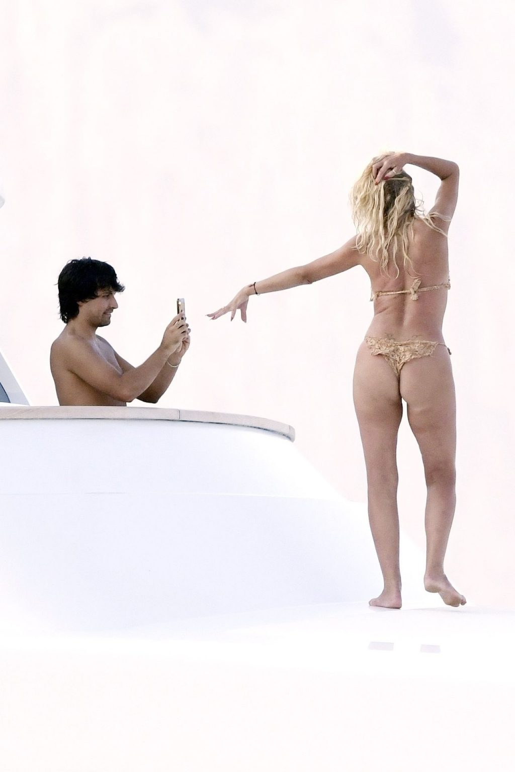 A atriz italiana Valeria Marini, que é concorrente da versão espanhola do “Ilha dos Famosos”, foi fotografada nua se divertindo em um barco durante férias com alguns amigos na Ilha de La Maddalena, na Sardenha, em 26/08/2019.
