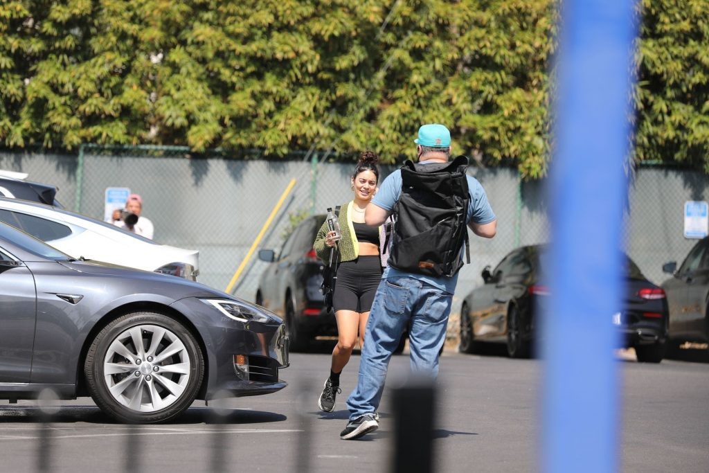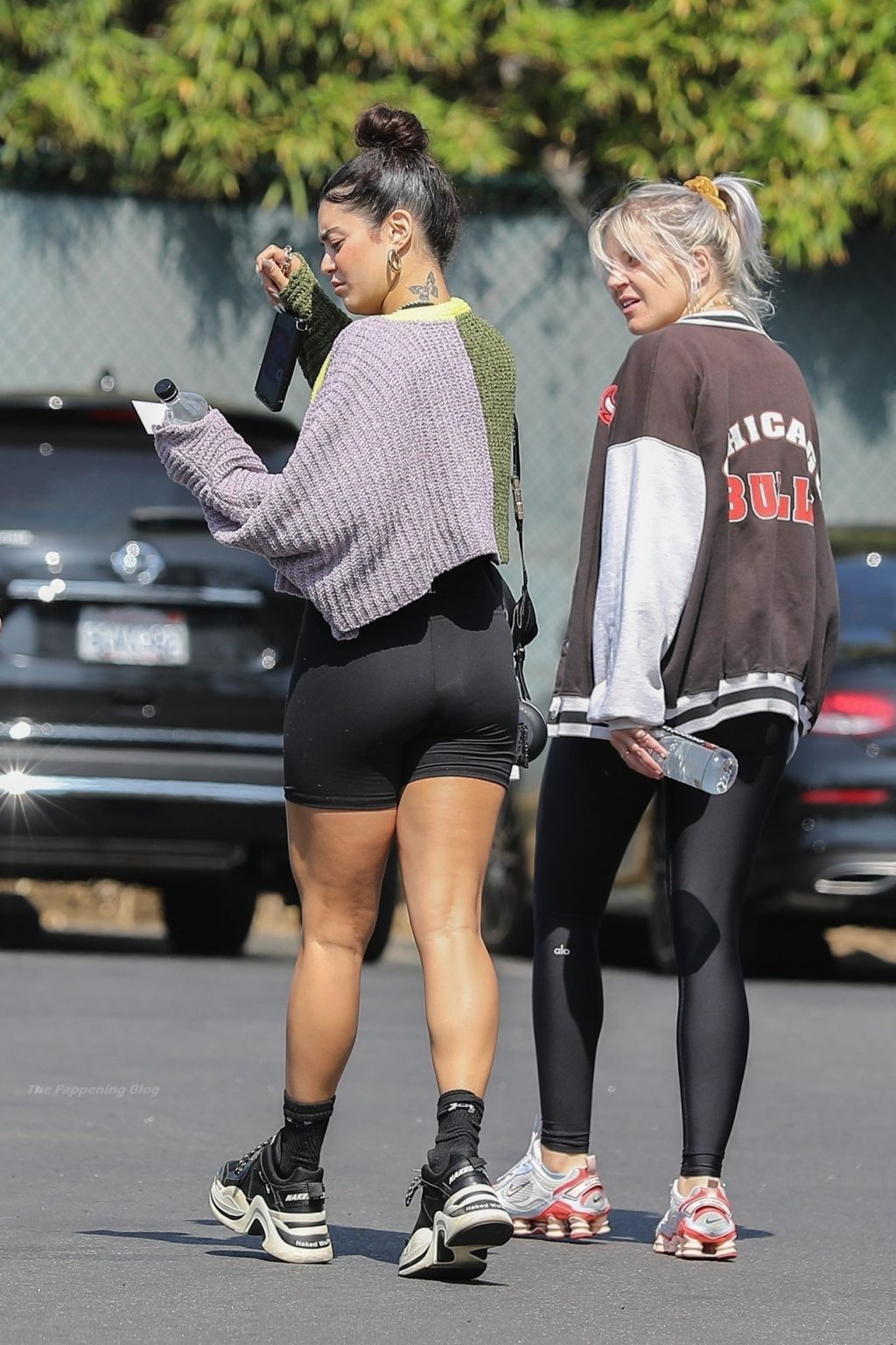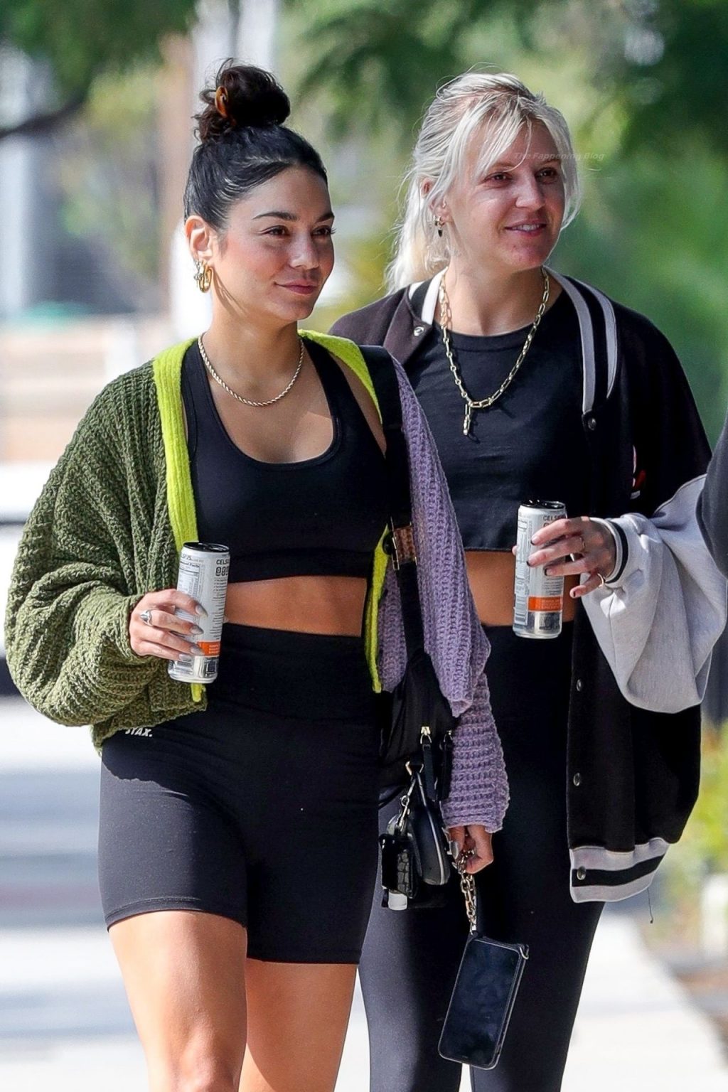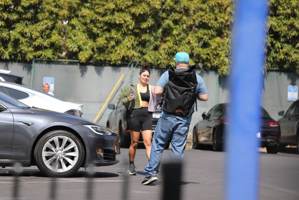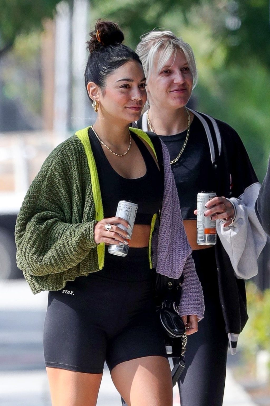 ‘High School Musical’ e a estrela de The Fappening Vanessa Hudgens e GG Magree vão à academia em West Hollywood, 03/06/2021. Vanessa exibe uma figura em forma com shorts de yoga pretos e top esportivo combinando.