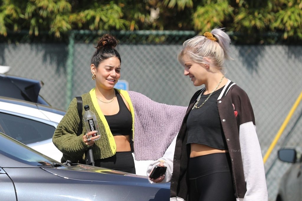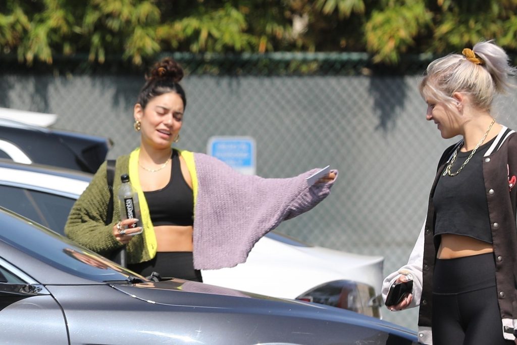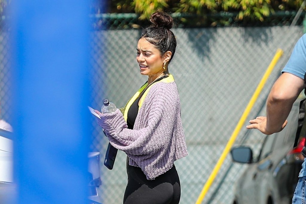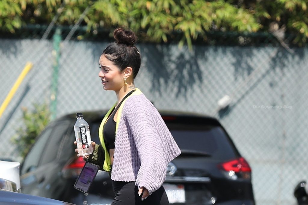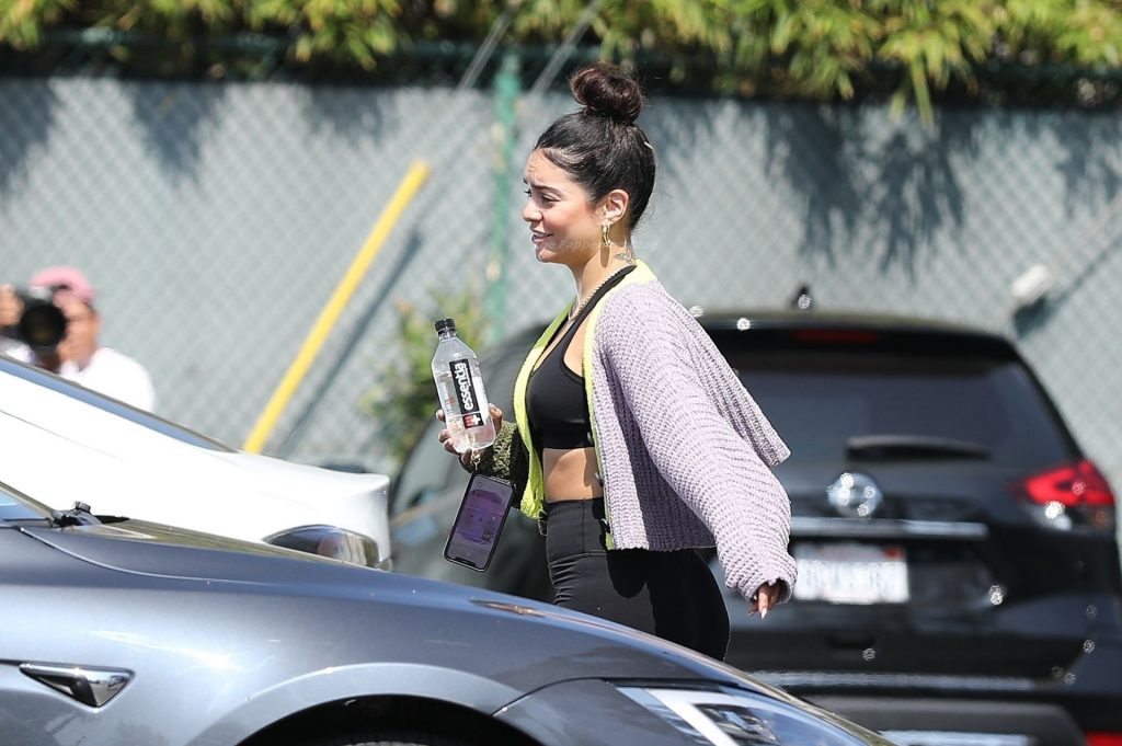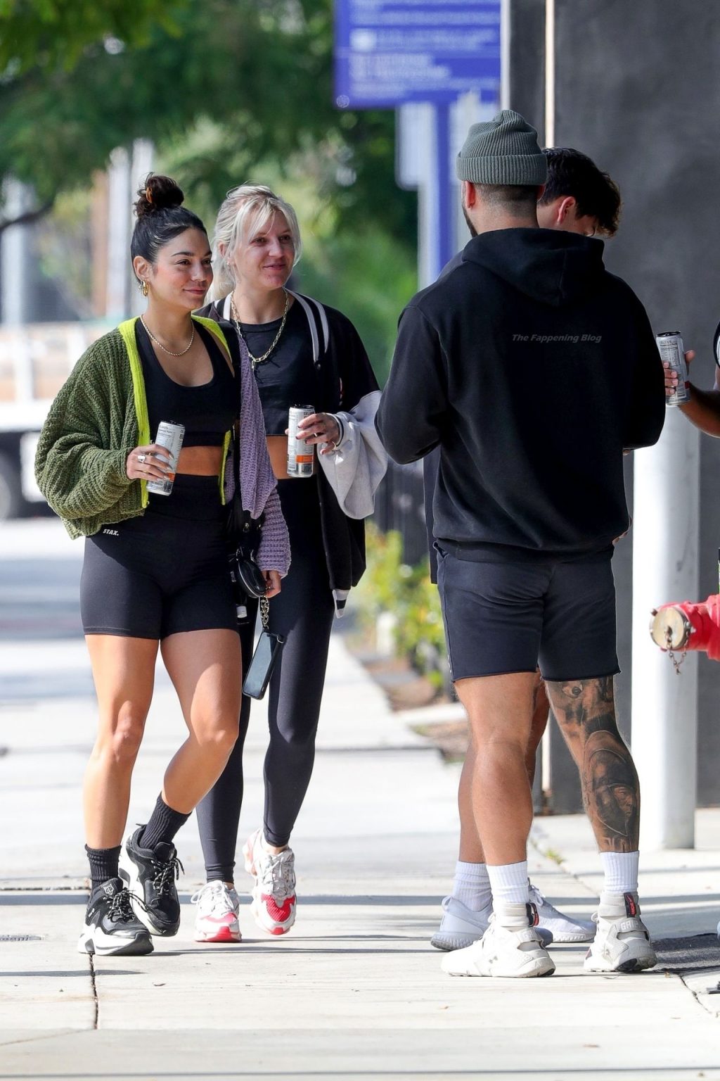 ‘High School Musical’ e a estrela de The Fappening Vanessa Hudgens e GG Magree vão à academia em West Hollywood, 03/06/2021. Vanessa exibe uma figura em forma com shorts de yoga pretos e top esportivo combinando.