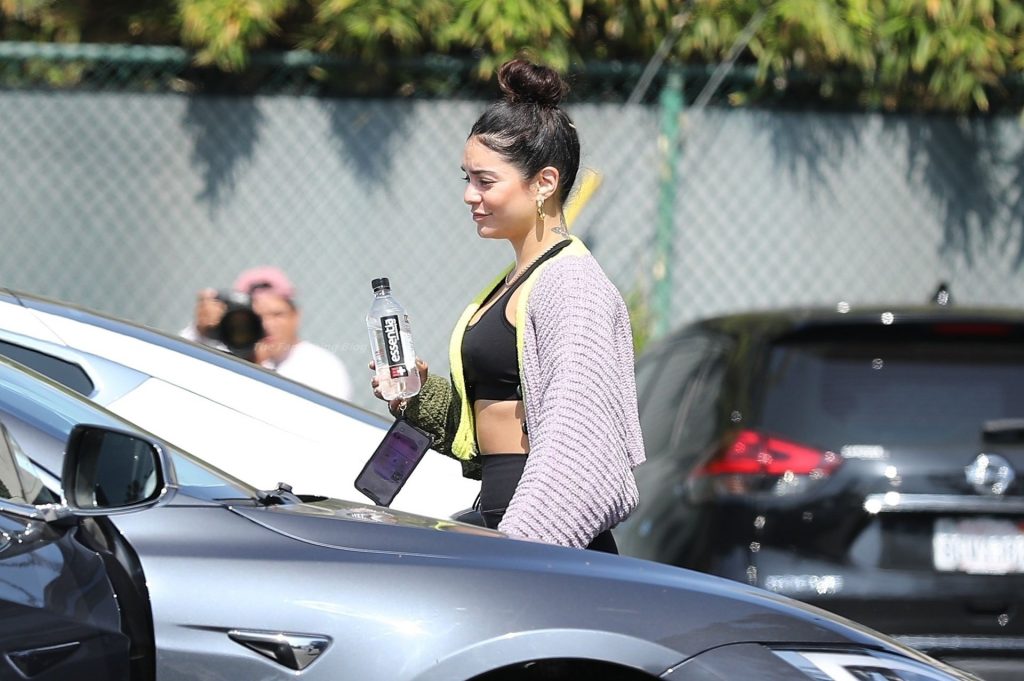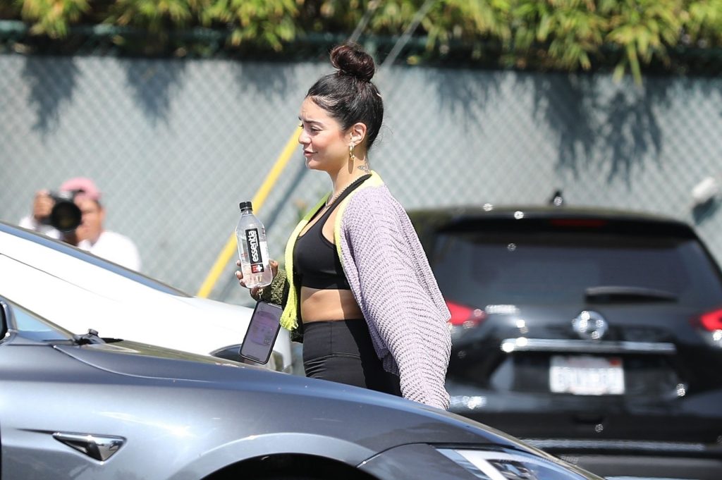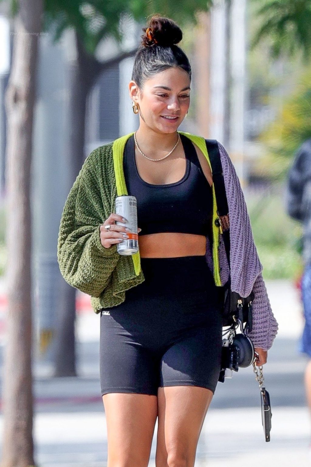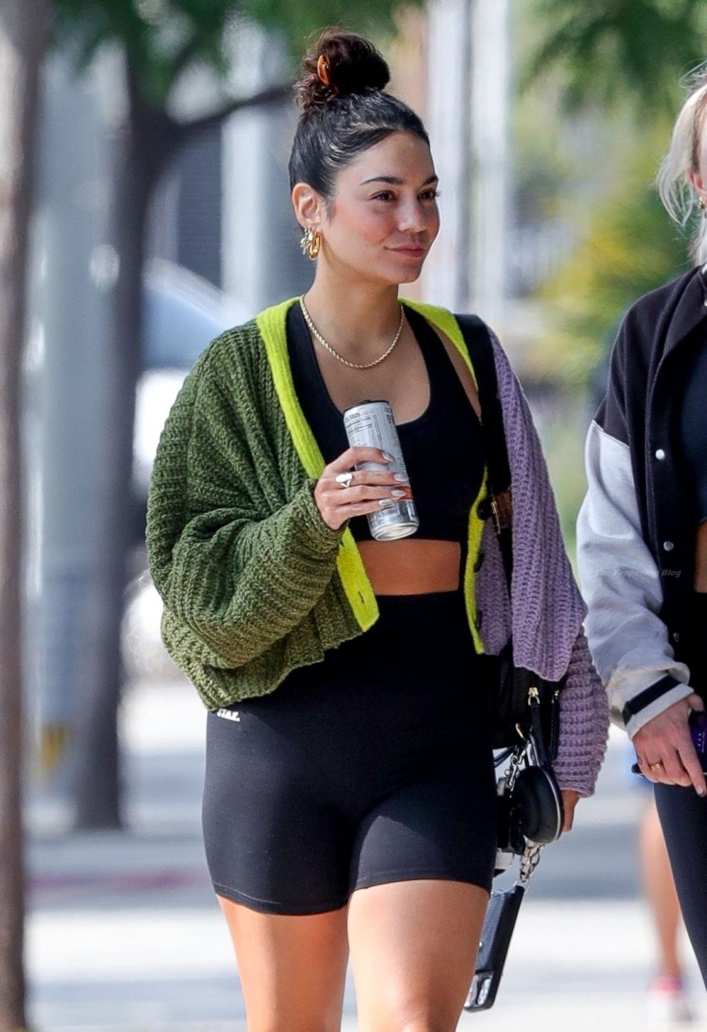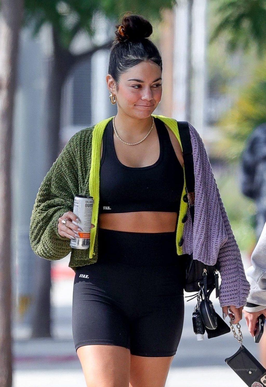 ‘High School Musical’ e a estrela de The Fappening Vanessa Hudgens e GG Magree vão à academia em West Hollywood, 03/06/2021. Vanessa exibe uma figura em forma com shorts de yoga pretos e top esportivo combinando.