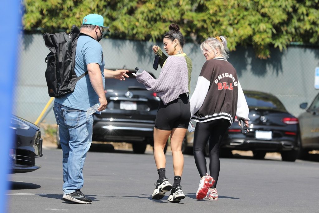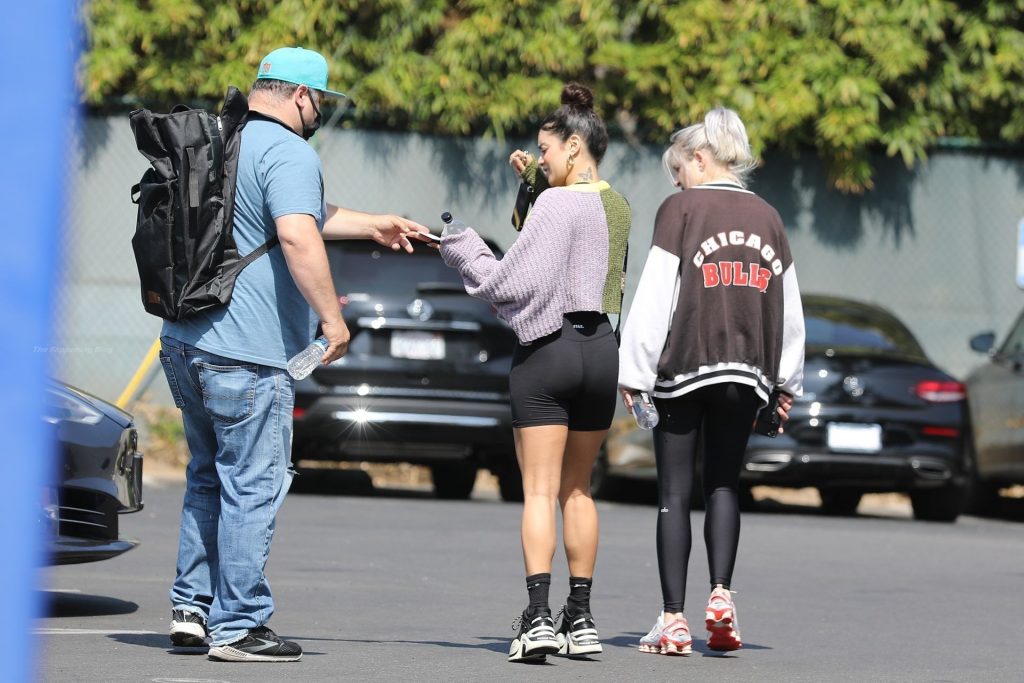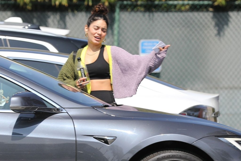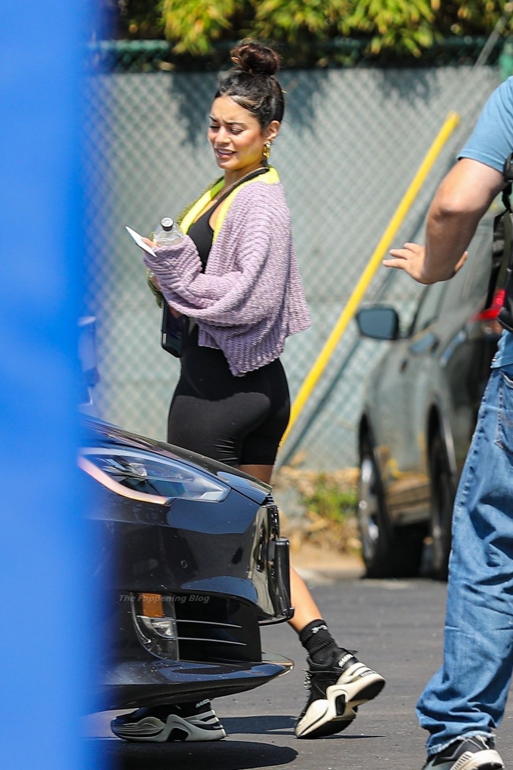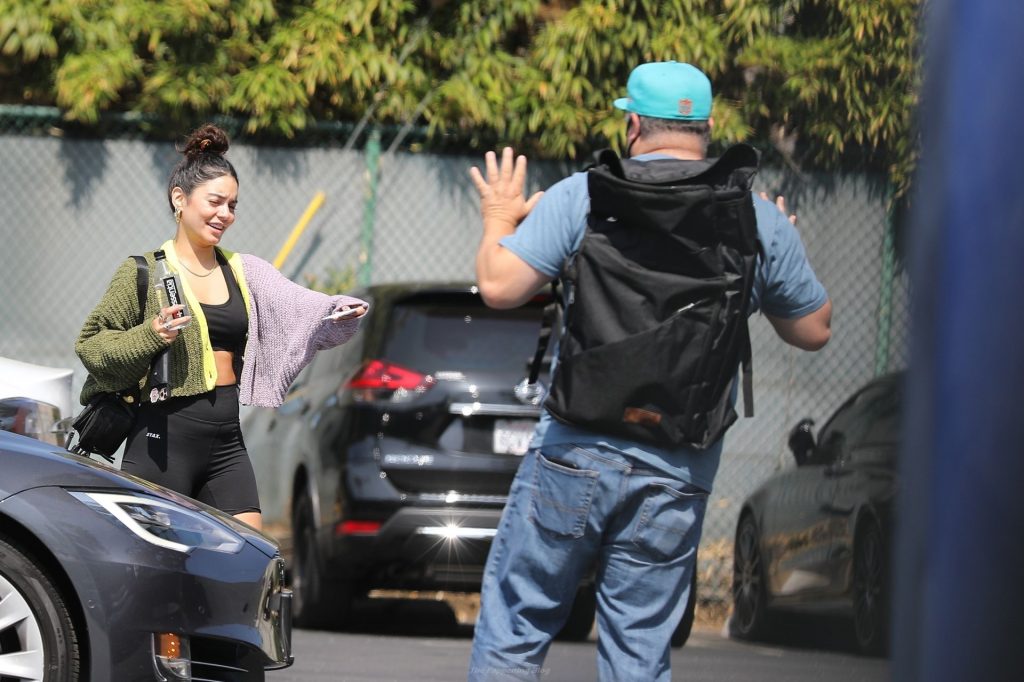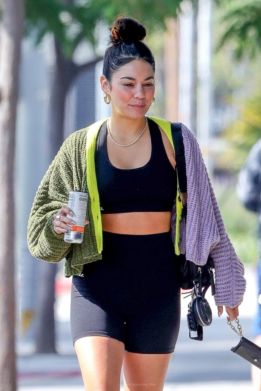 ‘High School Musical’ e a estrela de The Fappening Vanessa Hudgens e GG Magree vão à academia em West Hollywood, 03/06/2021. Vanessa exibe uma figura em forma com shorts de yoga pretos e top esportivo combinando.