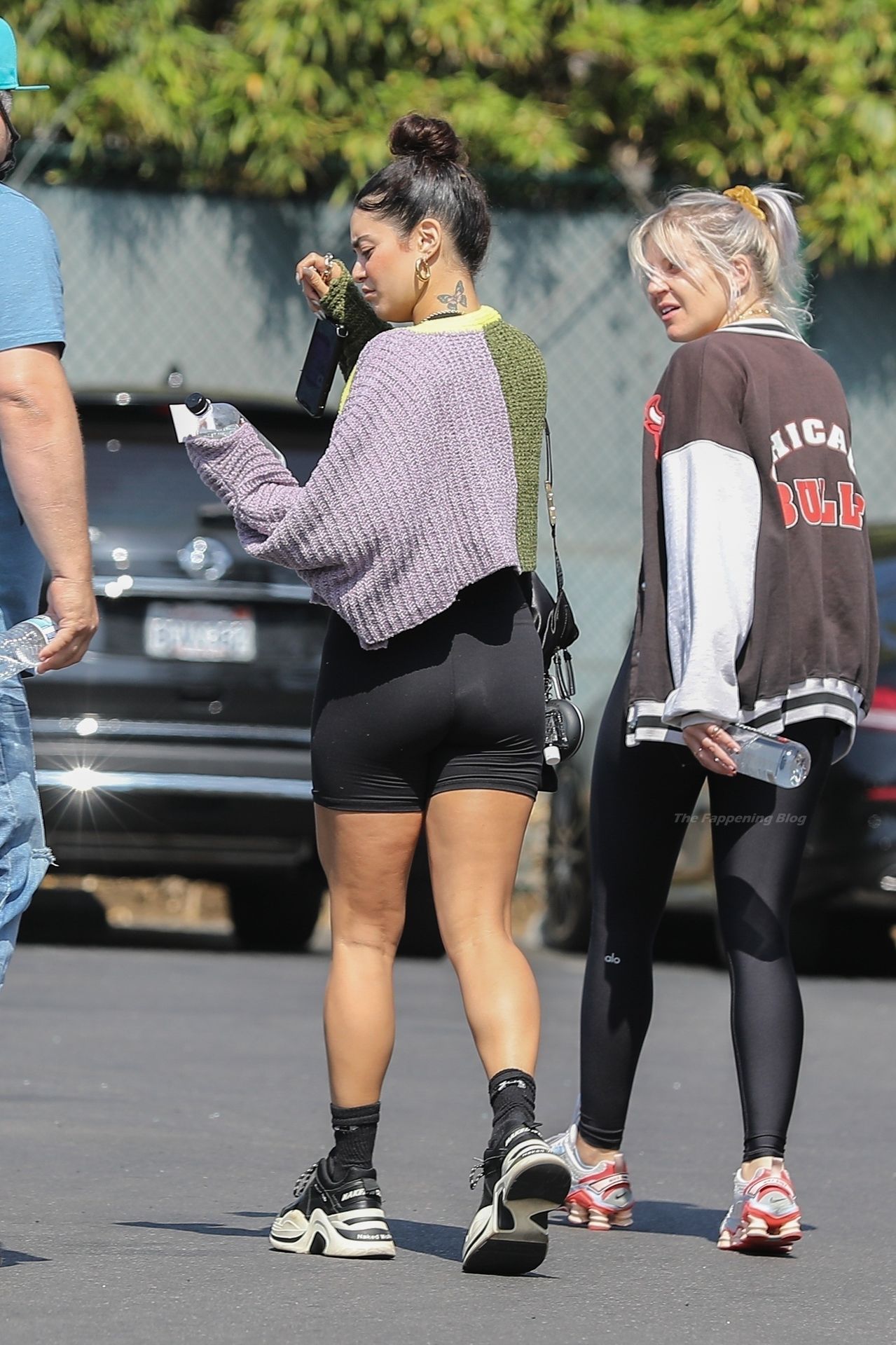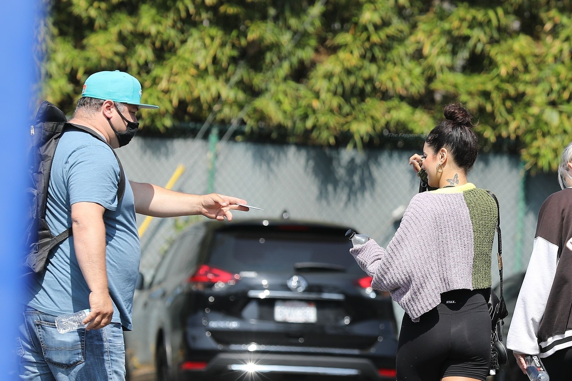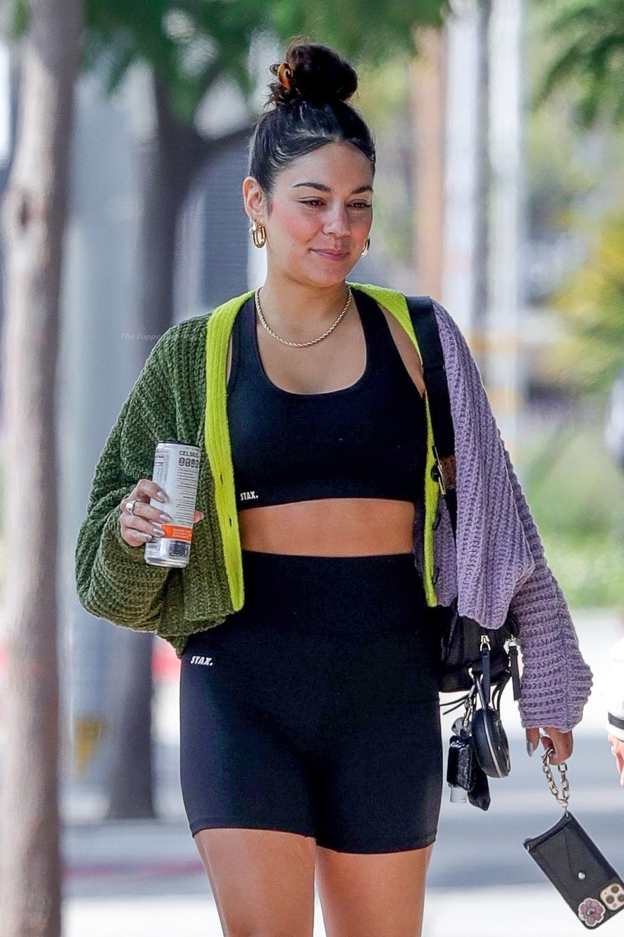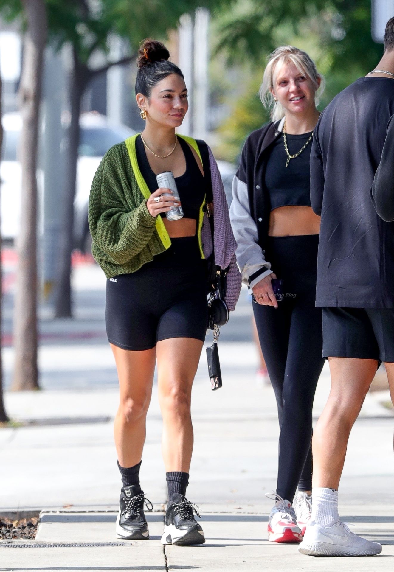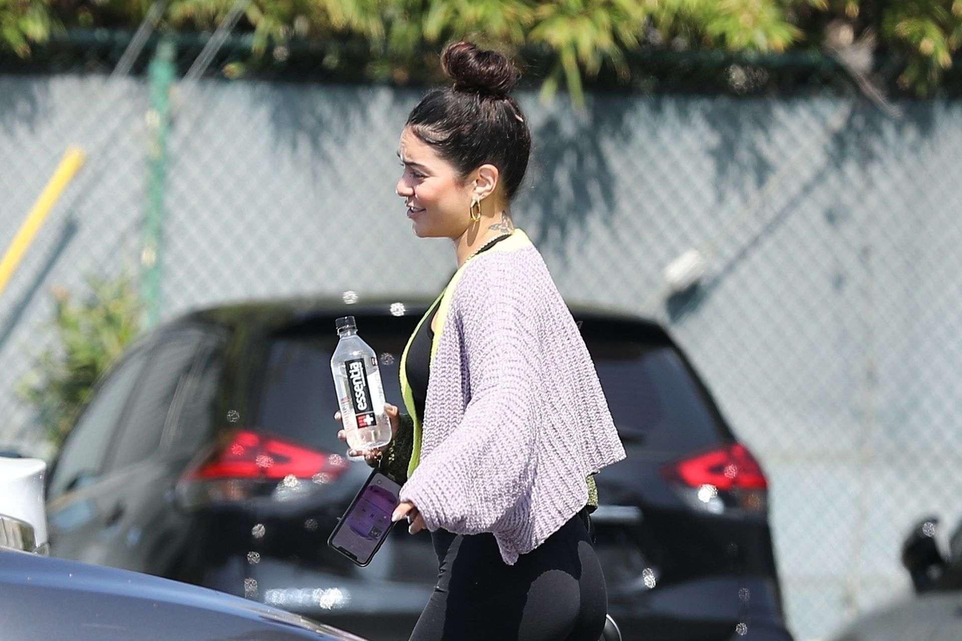 ‘High School Musical’ e a estrela de The Fappening Vanessa Hudgens e GG Magree vão à academia em West Hollywood, 03/06/2021. Vanessa exibe uma figura em forma com shorts de yoga pretos e top esportivo combinando.