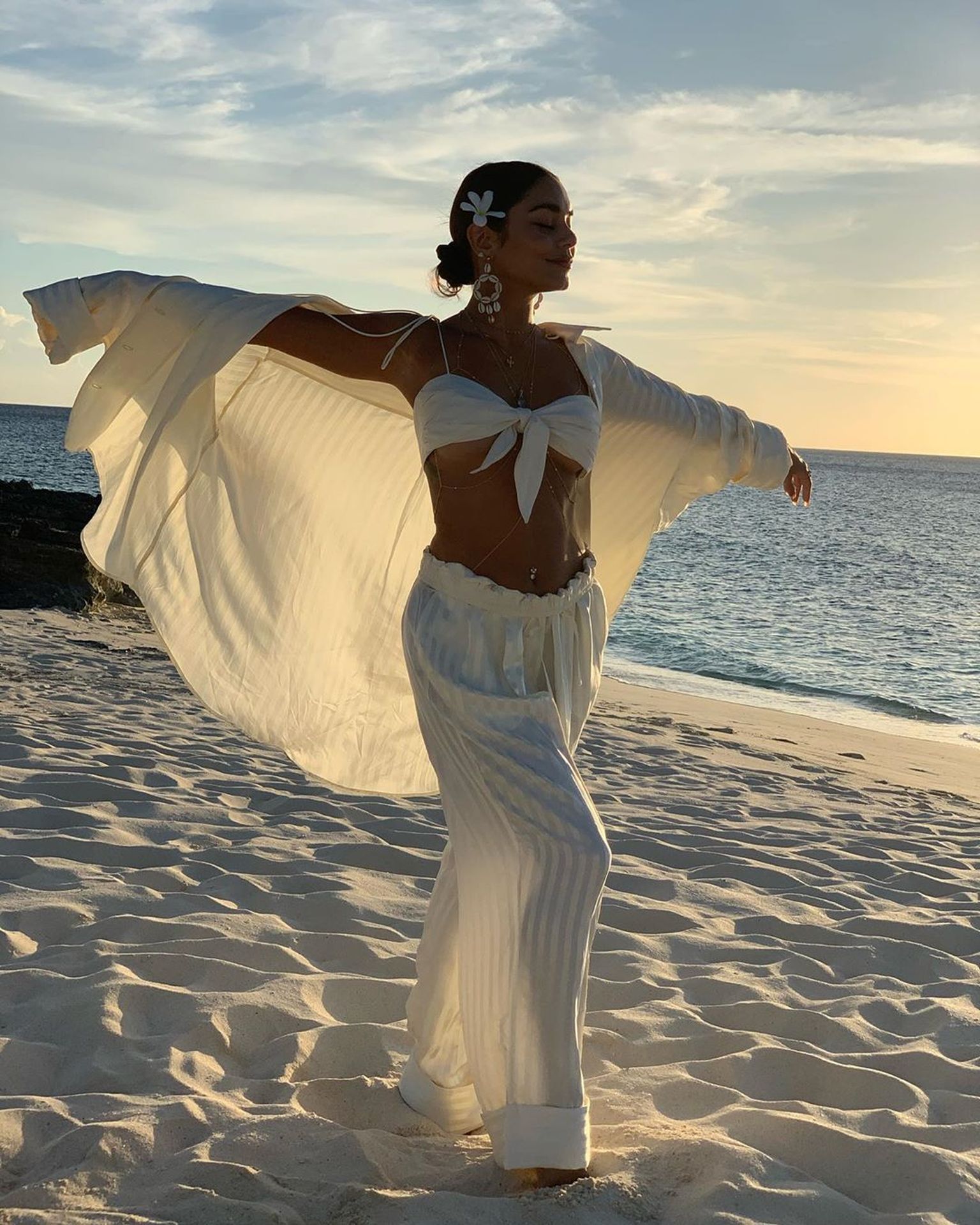 A estrela de The Fappening Vanessa Hudgens exibe seu corpo deslumbrante na praia, enquanto aproveita seu tempo livre com amigos – Instagram (agosto de 2020).