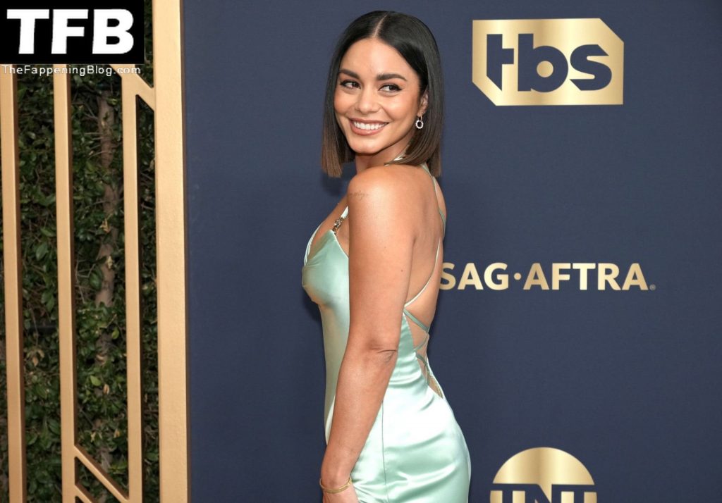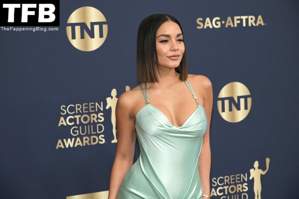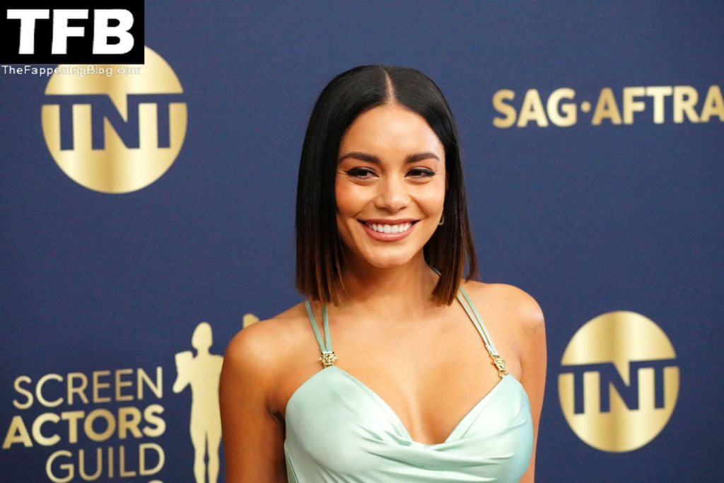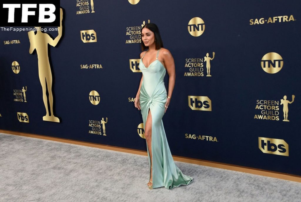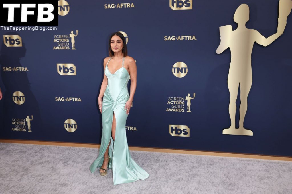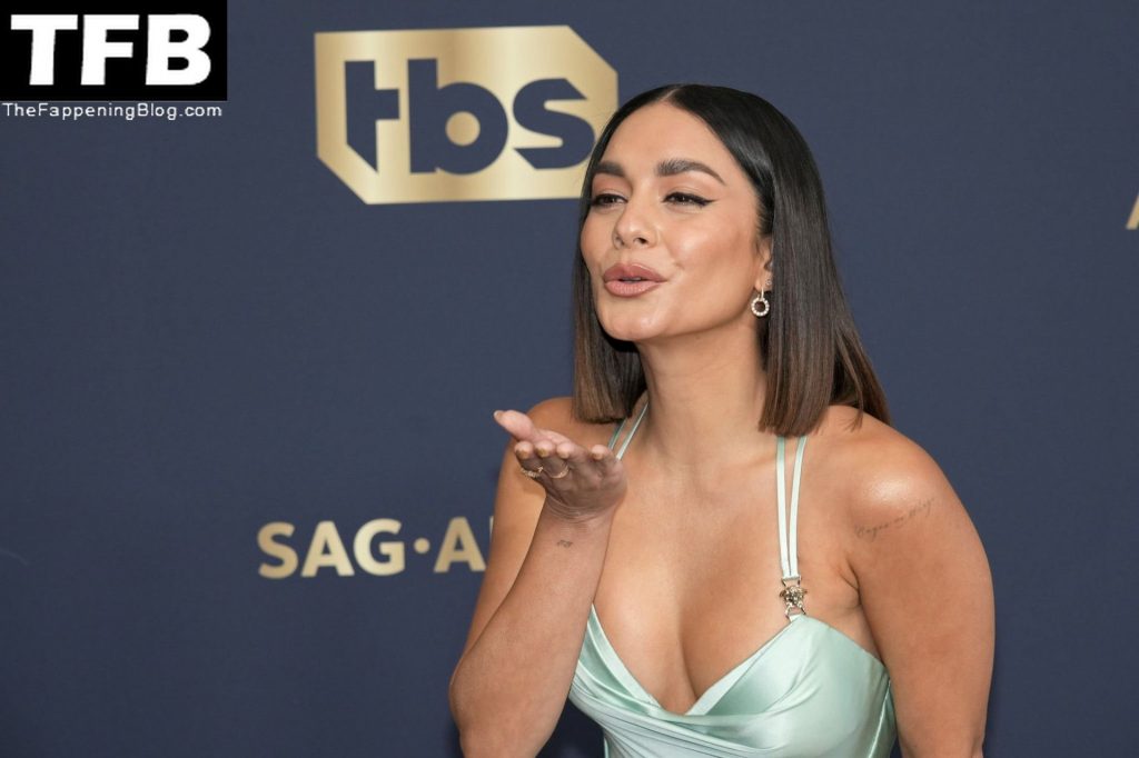 A estrela de The Fappening Vanessa Hudgens posa no tapete vermelho durante o 28º Screen Actors Guild Awards no Barker Hangar em Santa Monica, 27/02/2022.