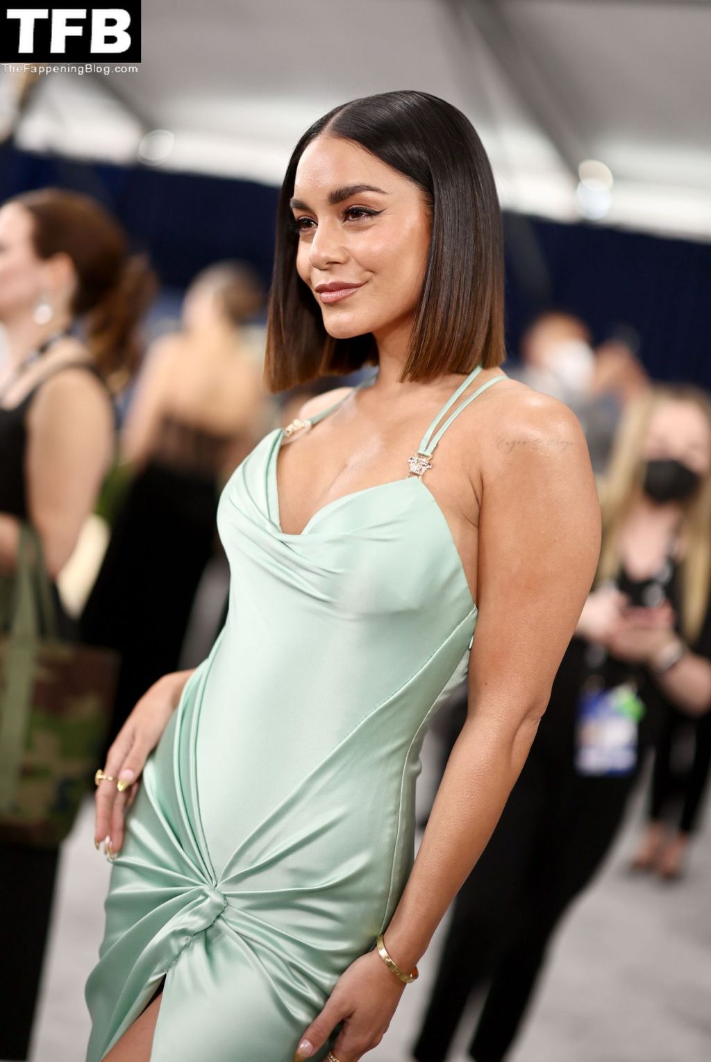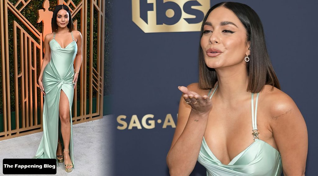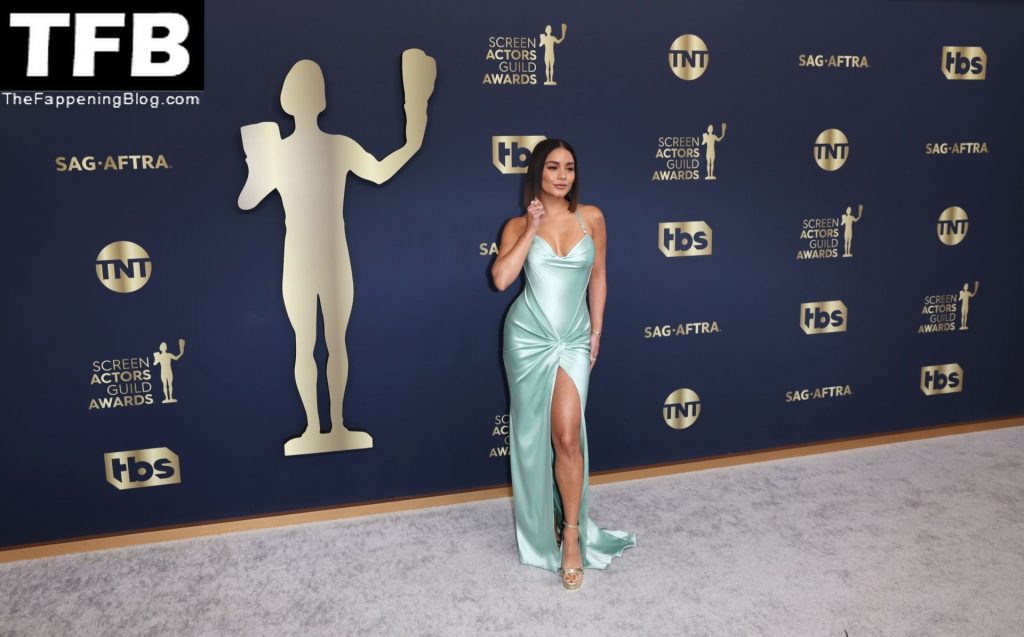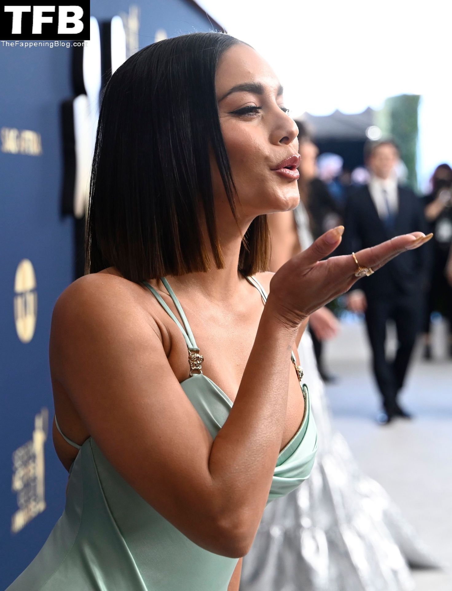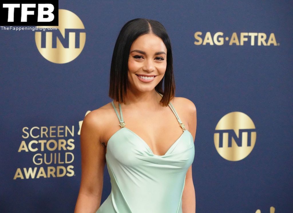 A estrela de The Fappening Vanessa Hudgens posa no tapete vermelho durante o 28º Screen Actors Guild Awards no Barker Hangar em Santa Monica, 27/02/2022.