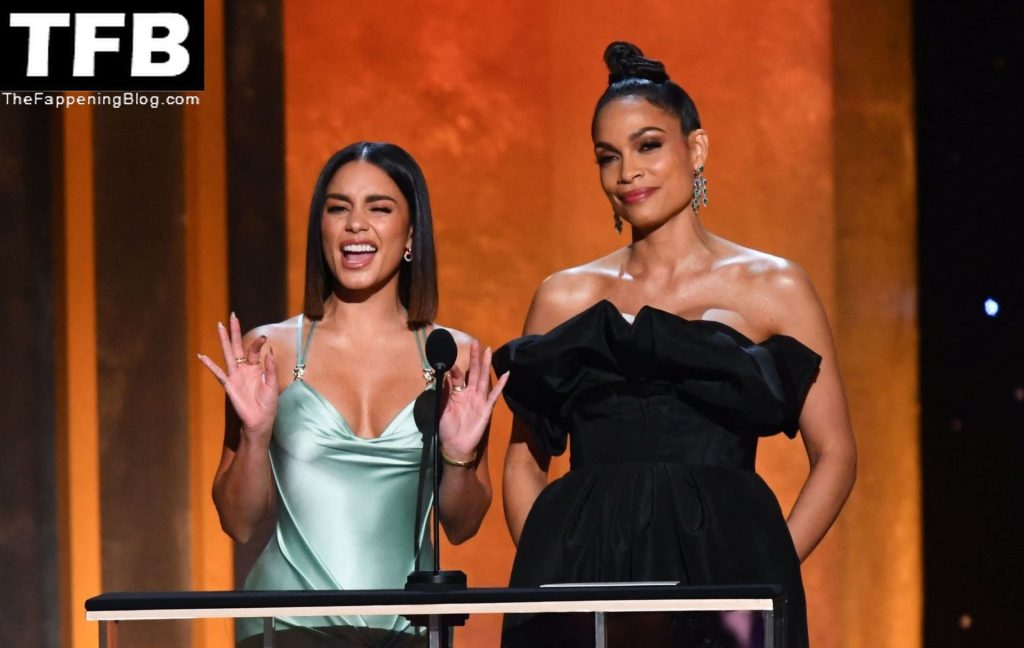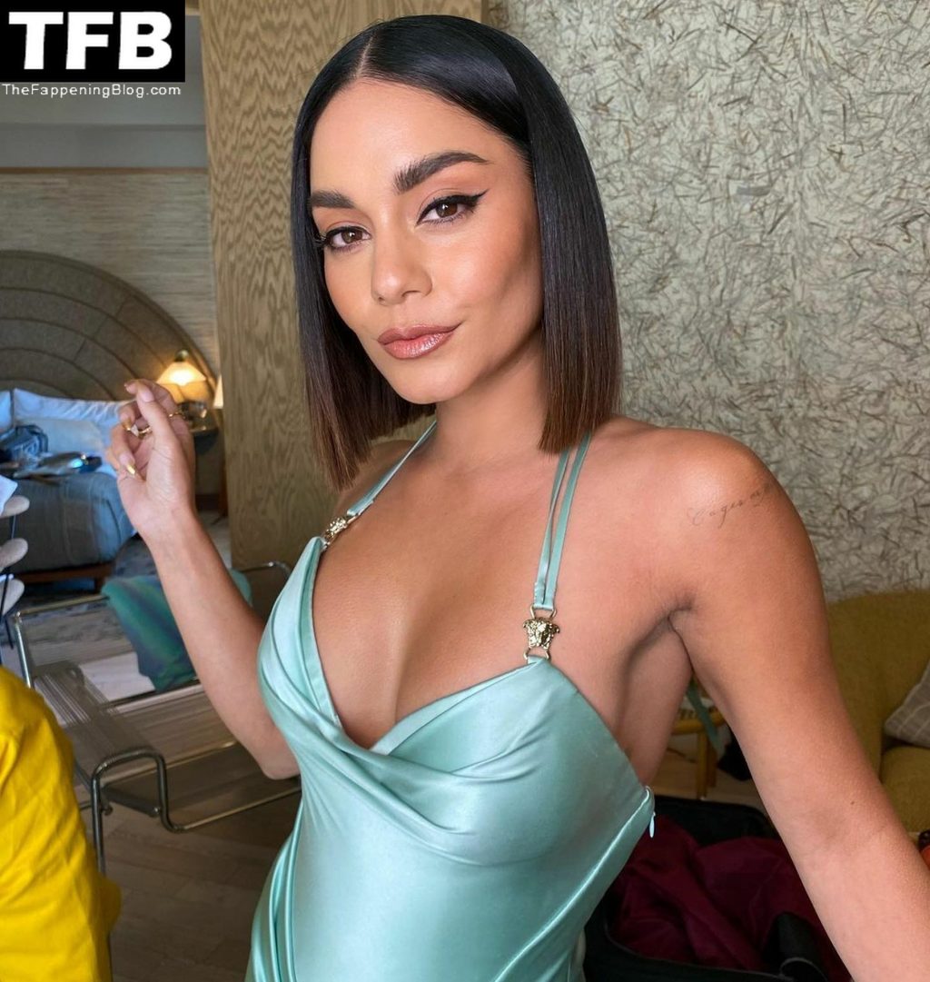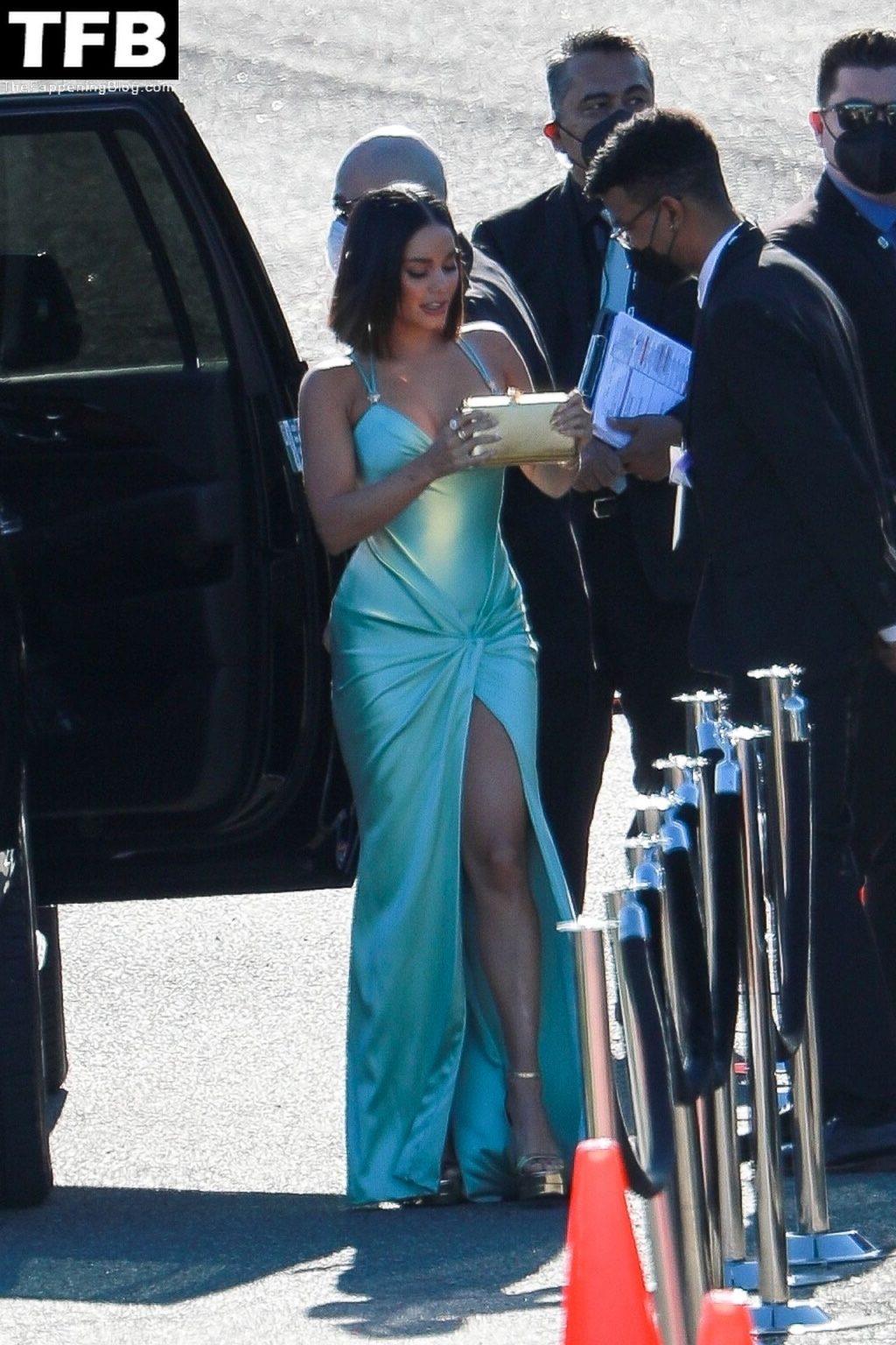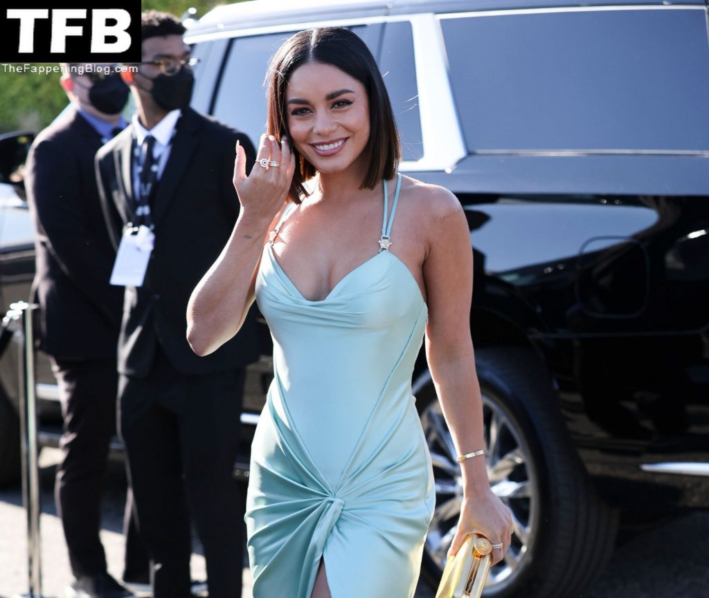 A estrela de The Fappening Vanessa Hudgens posa no tapete vermelho durante o 28º Screen Actors Guild Awards no Barker Hangar em Santa Monica, 27/02/2022.