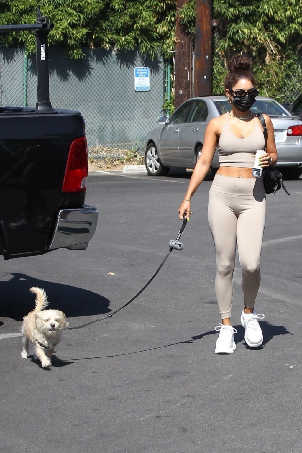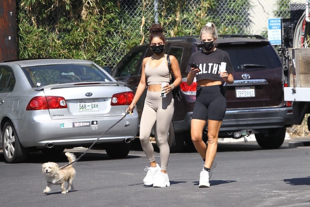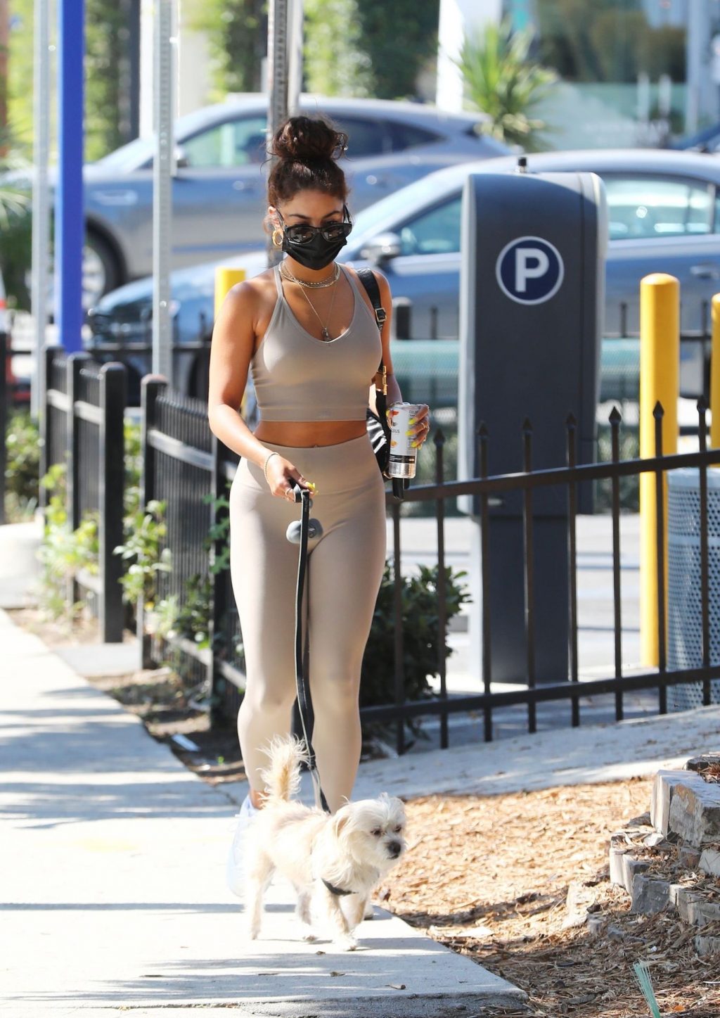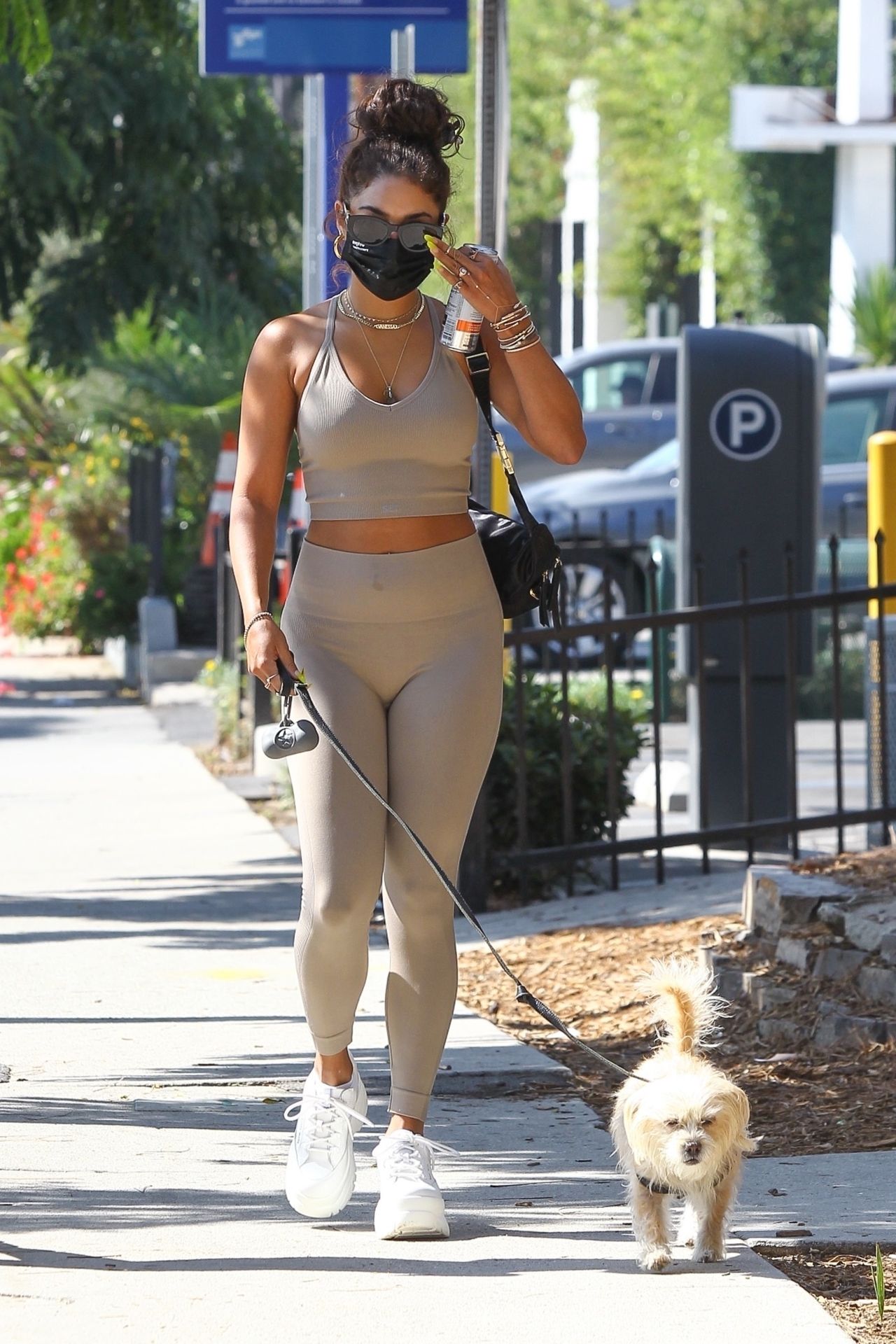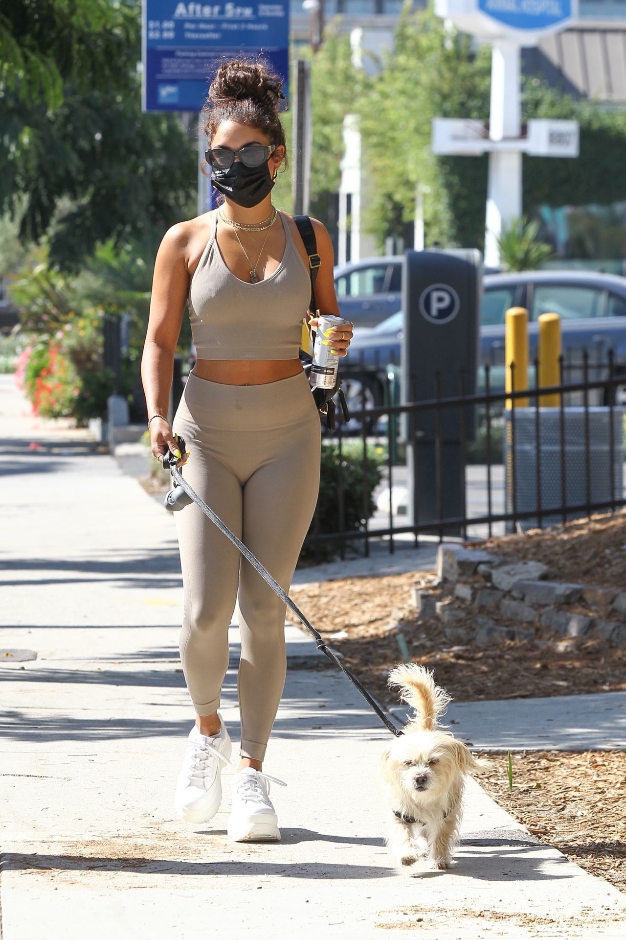A Estrela do Fappening Vanessa Hudgens (31) leva seu cachorro para a academia em West Hollywood, 26/08/2020.
