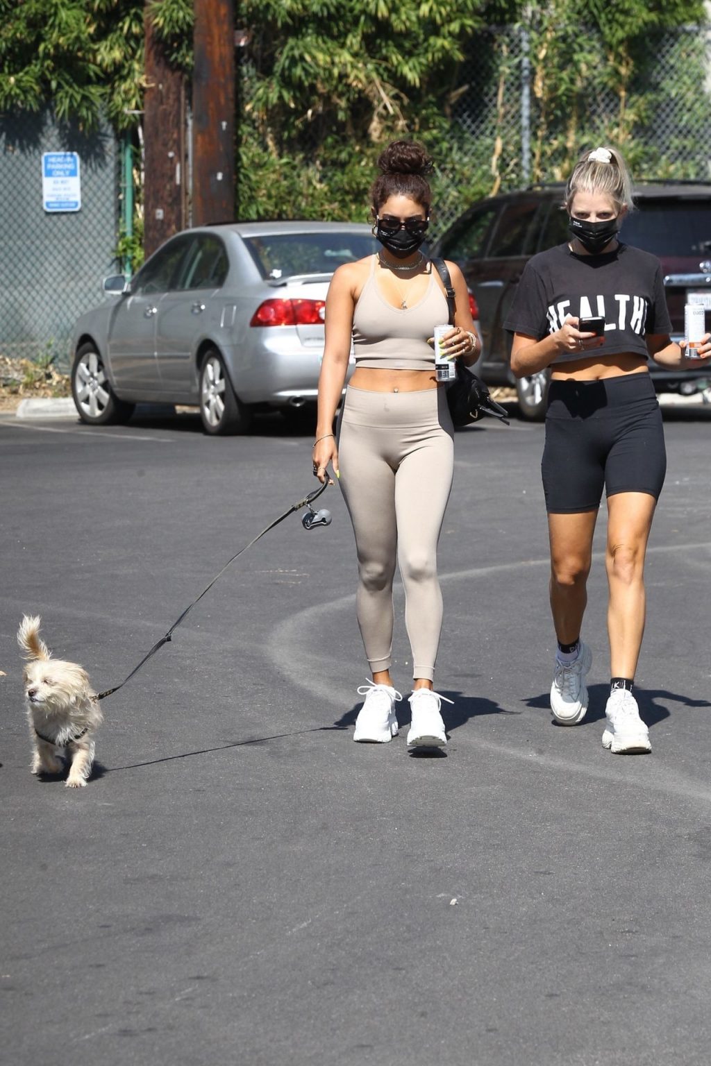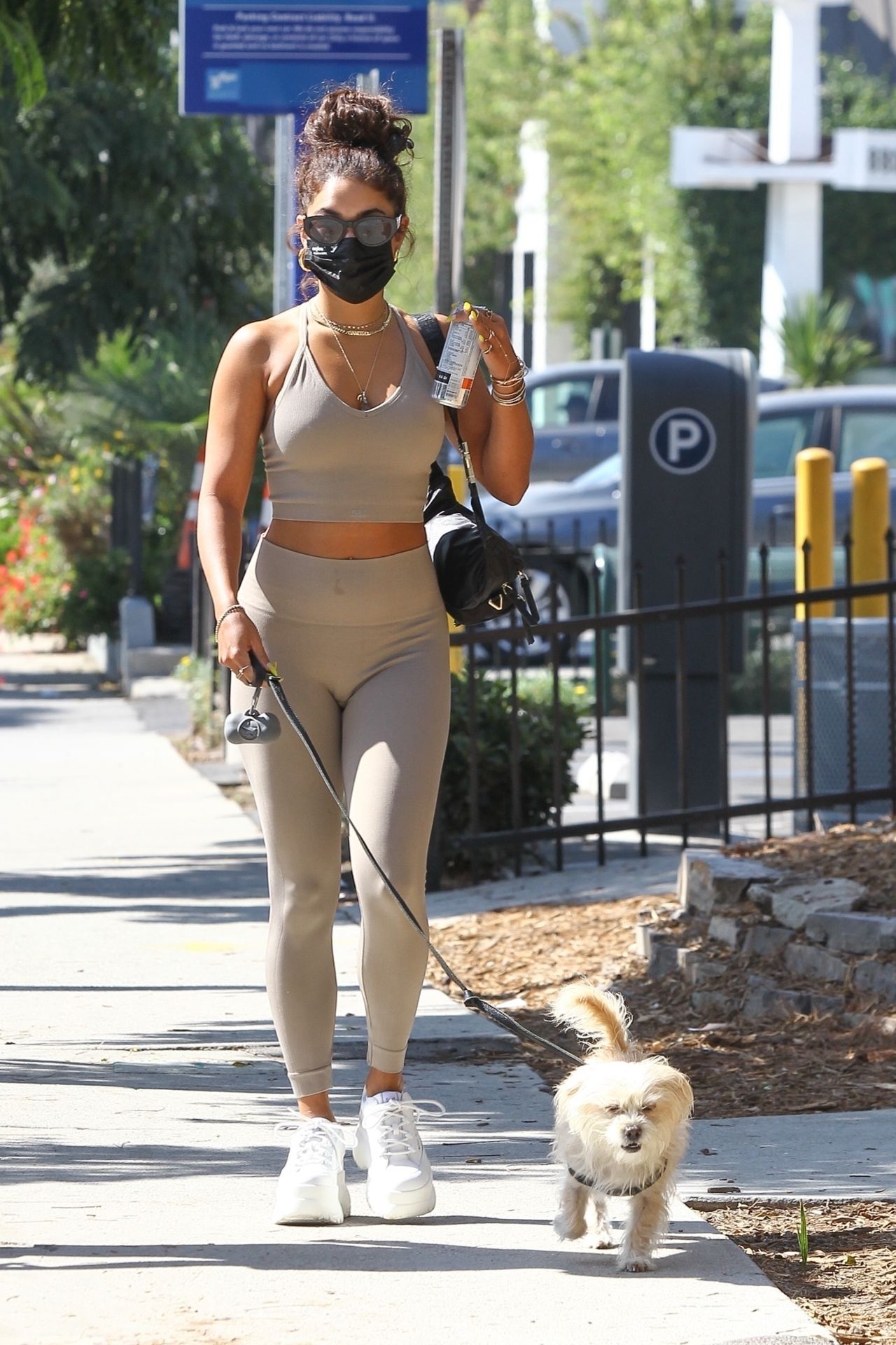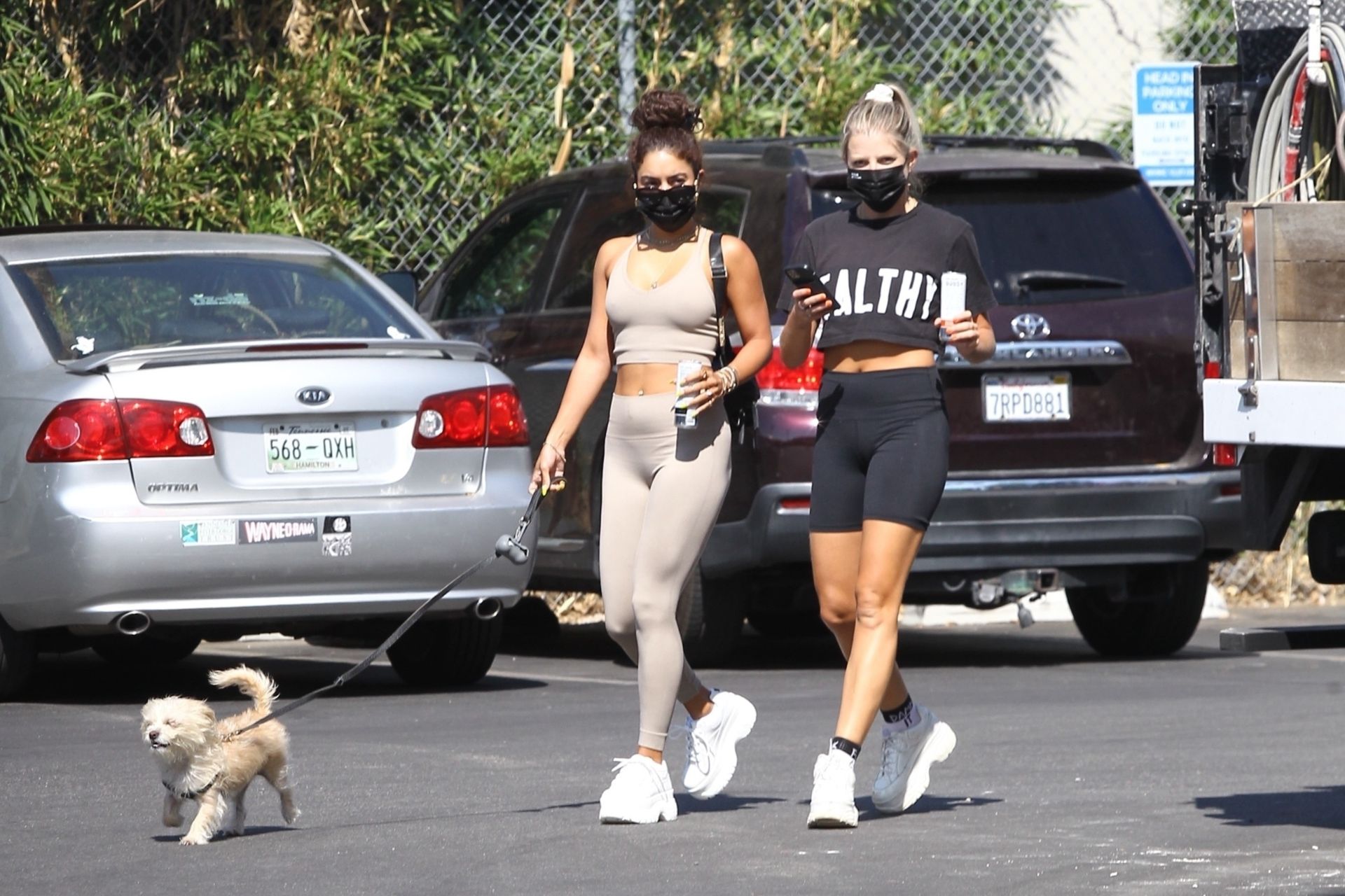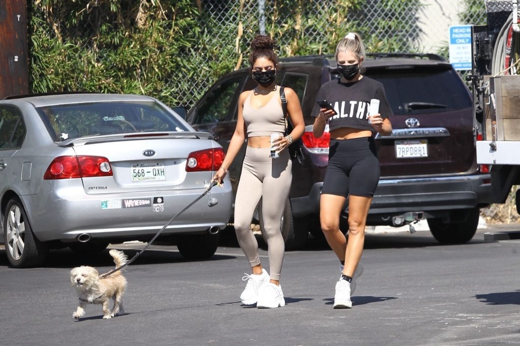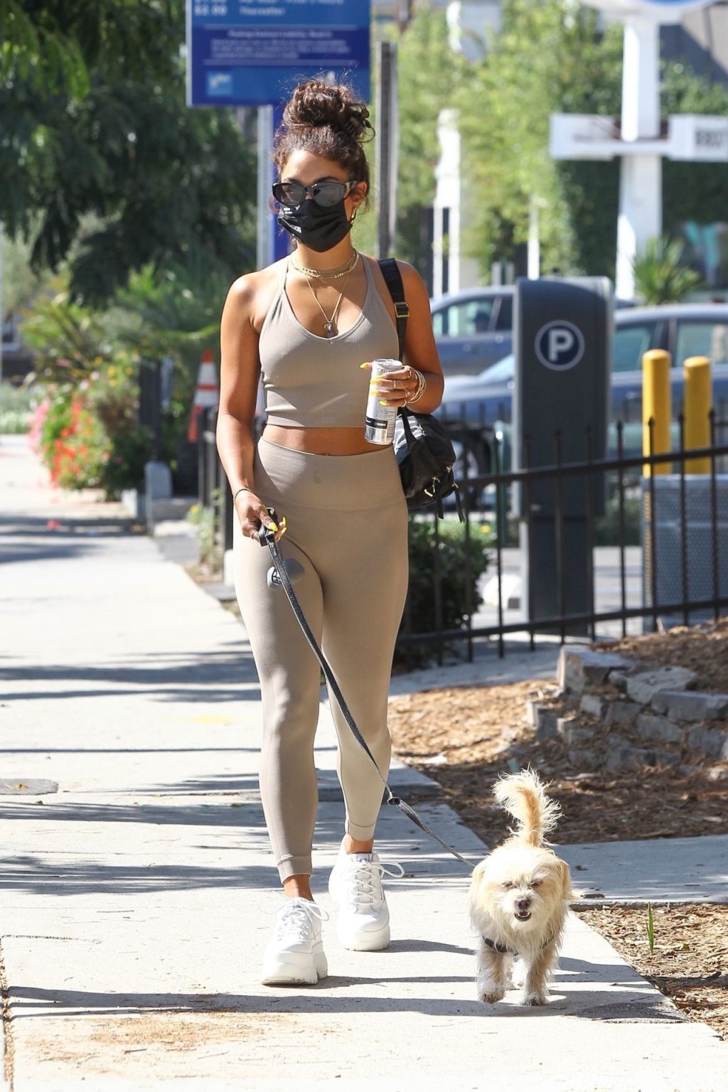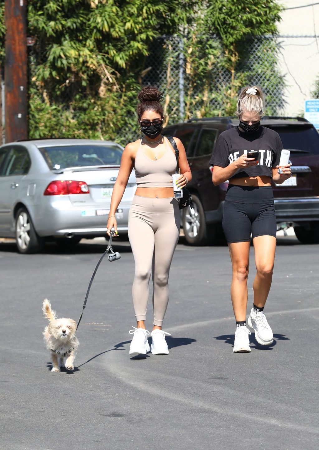 A Estrela do Fappening Vanessa Hudgens (31) leva seu cachorro para a academia em West Hollywood, 26/08/2020.