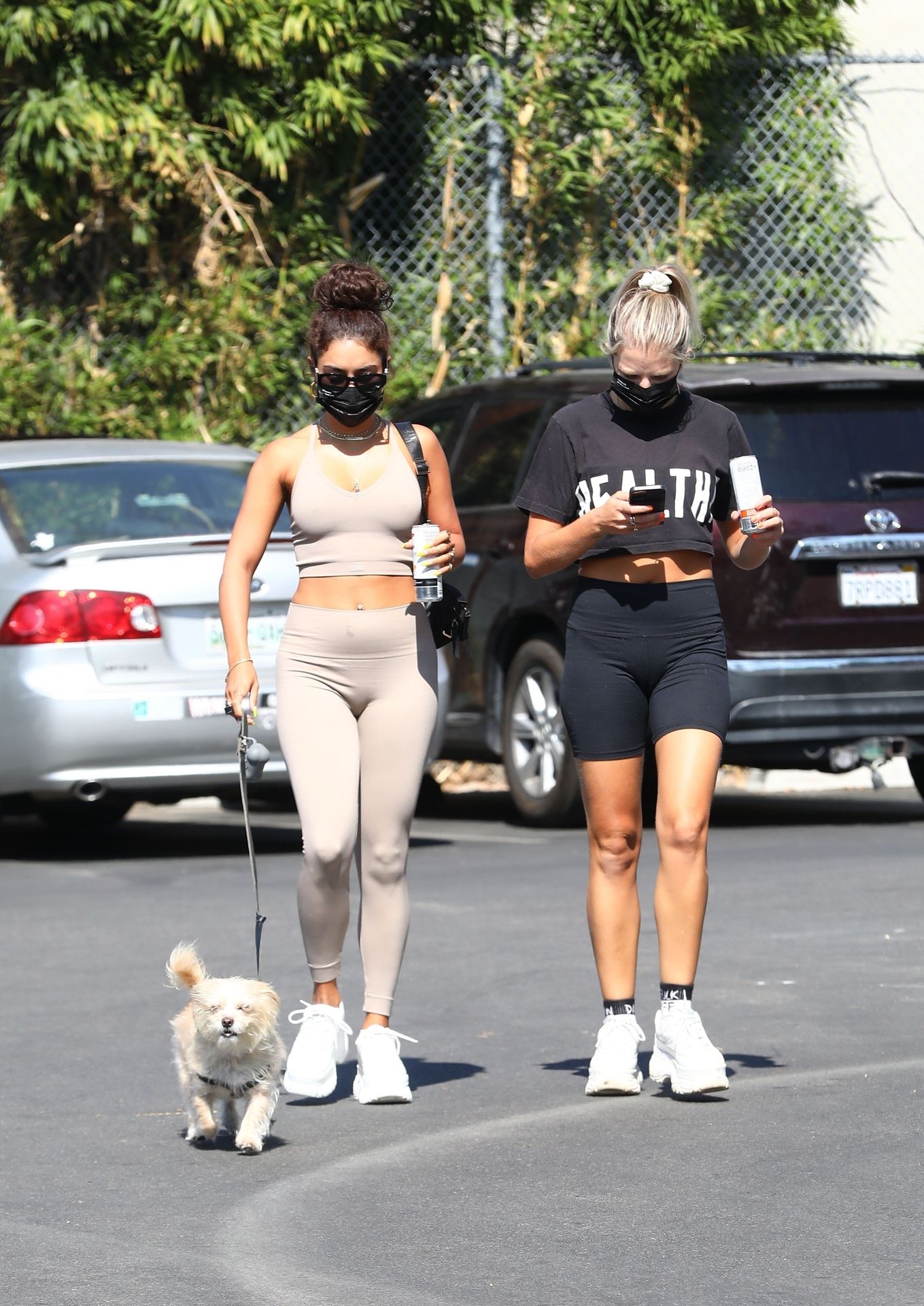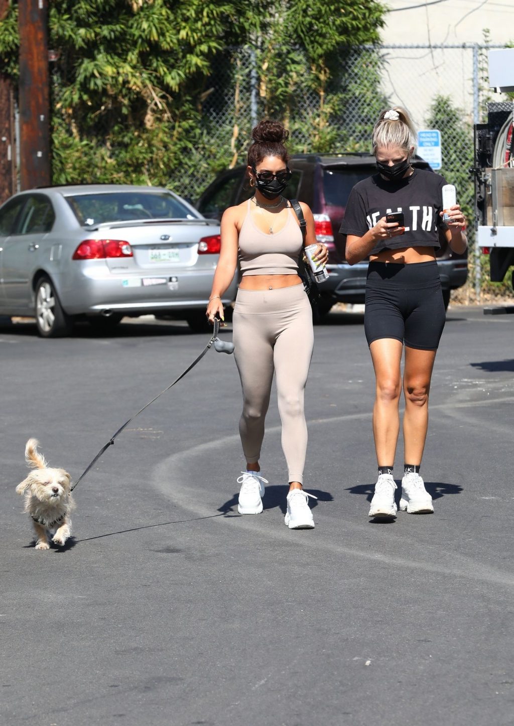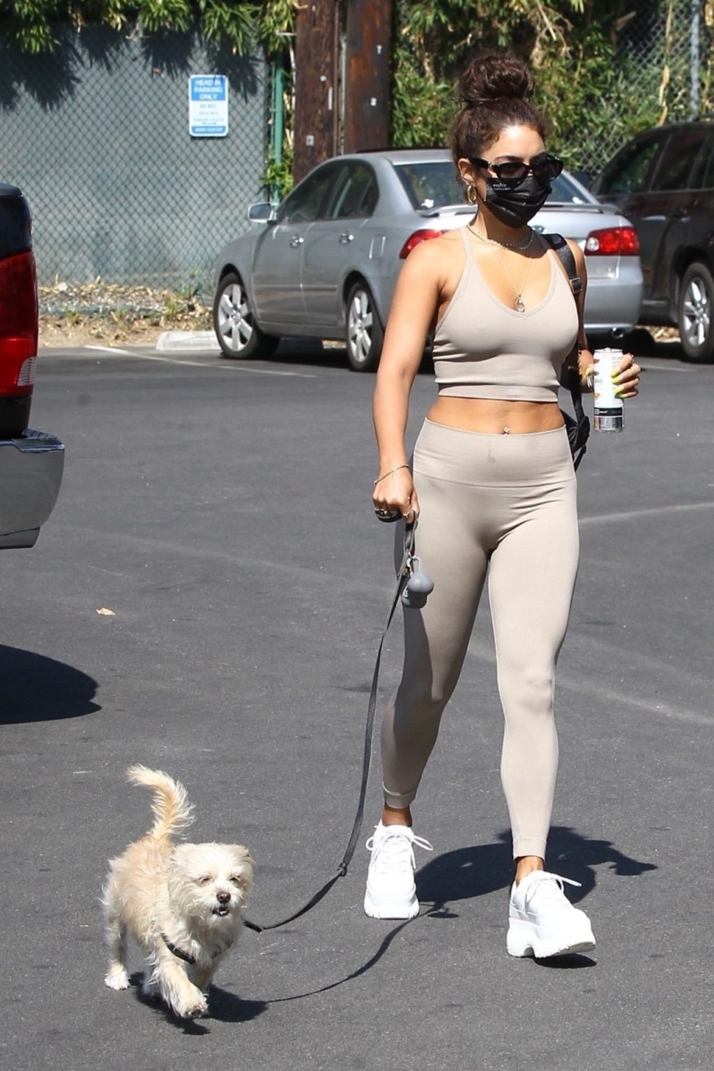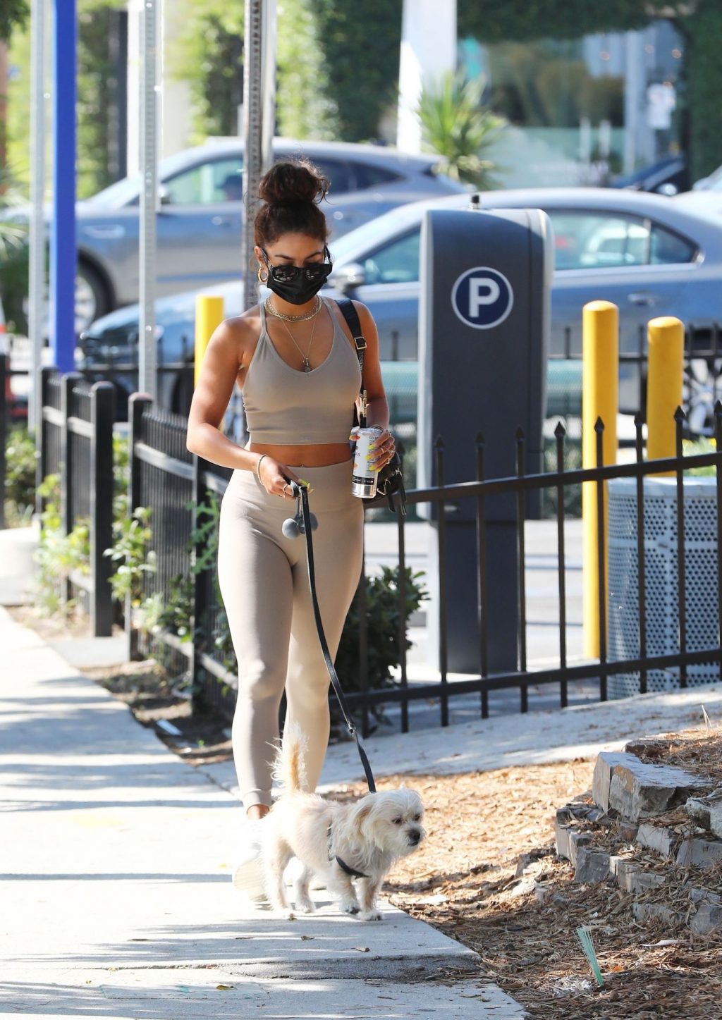 A Estrela do Fappening Vanessa Hudgens (31) leva seu cachorro para a academia em West Hollywood, 26/08/2020.