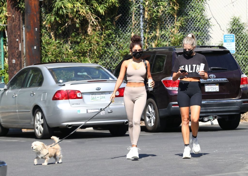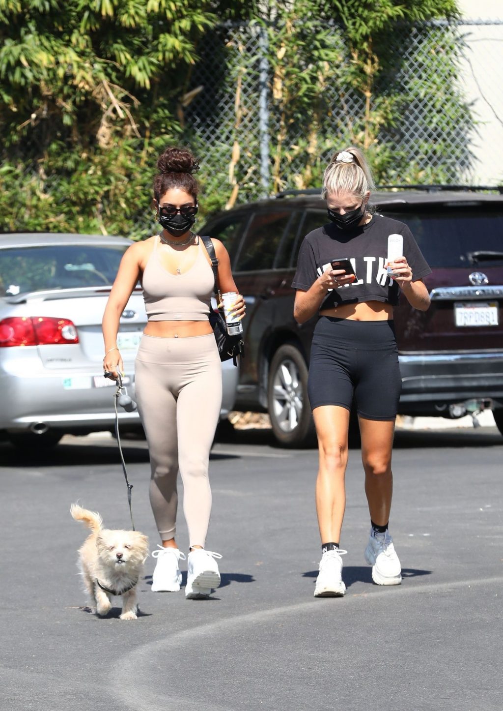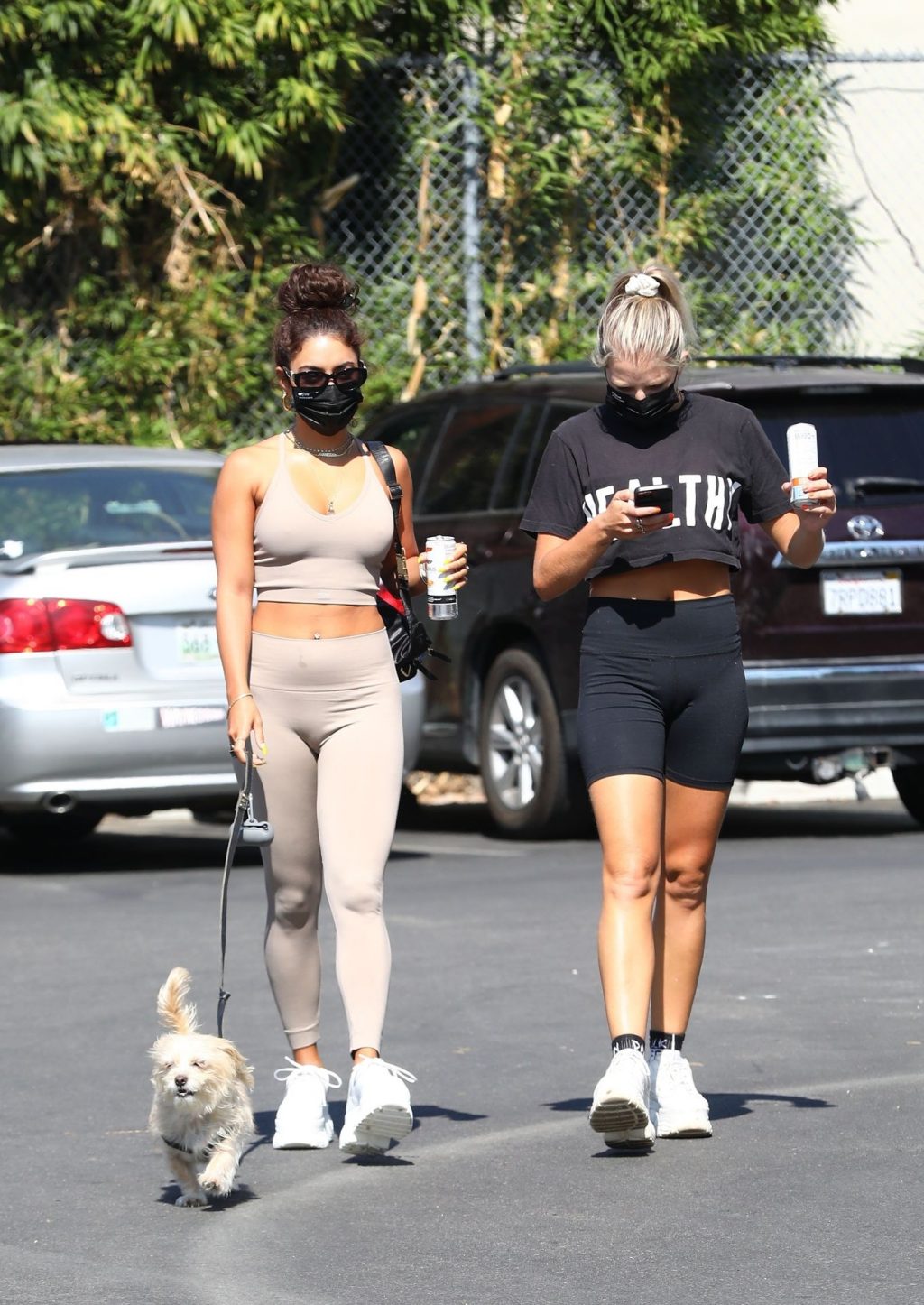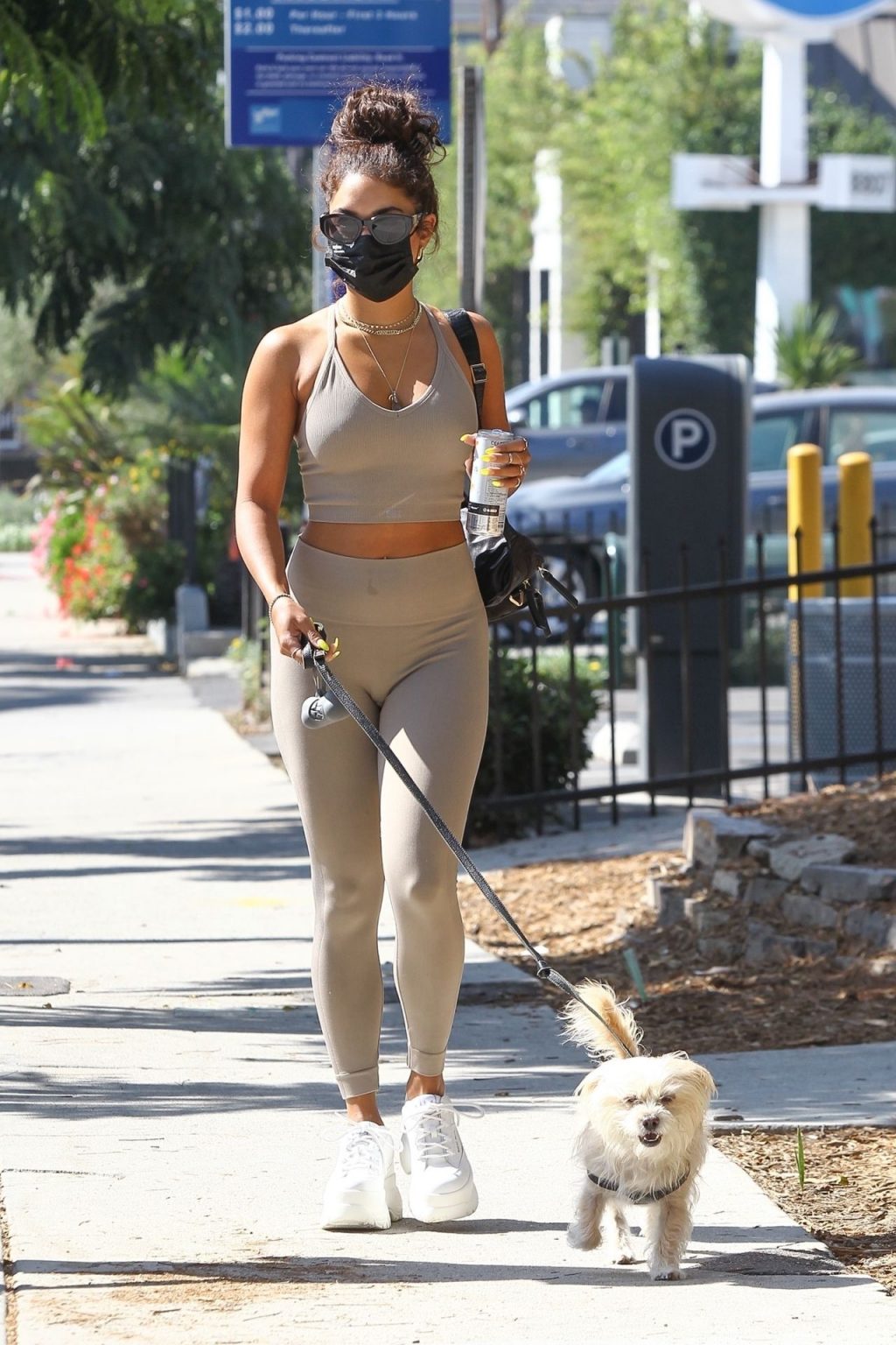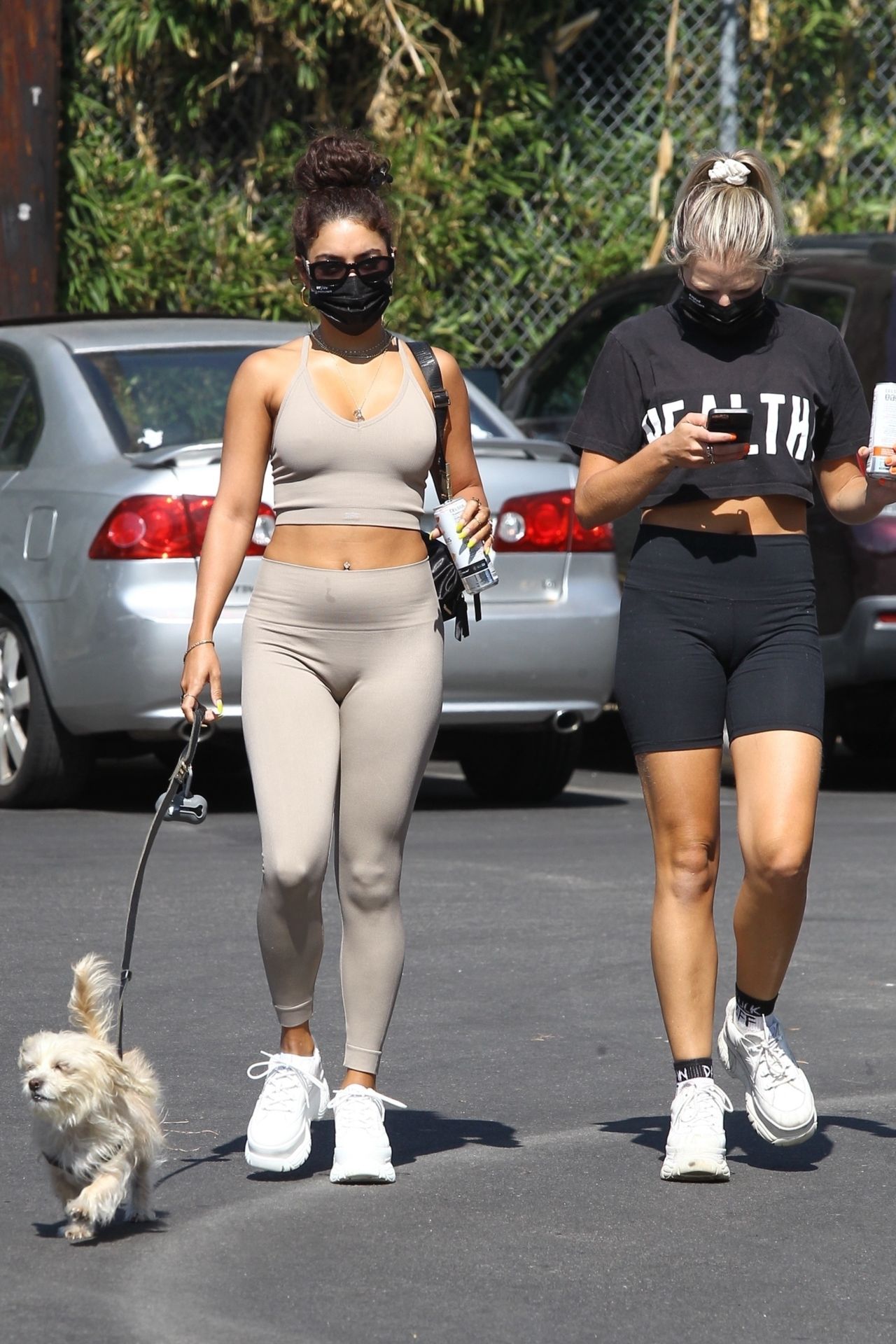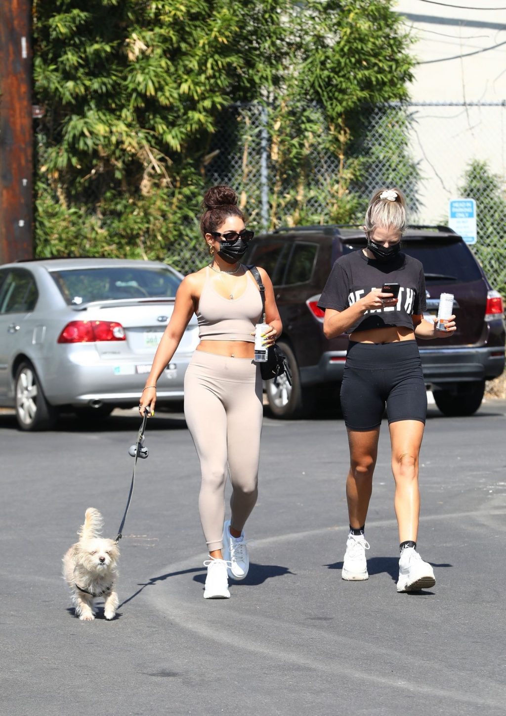 A Estrela do Fappening Vanessa Hudgens (31) leva seu cachorro para a academia em West Hollywood, 26/08/2020.