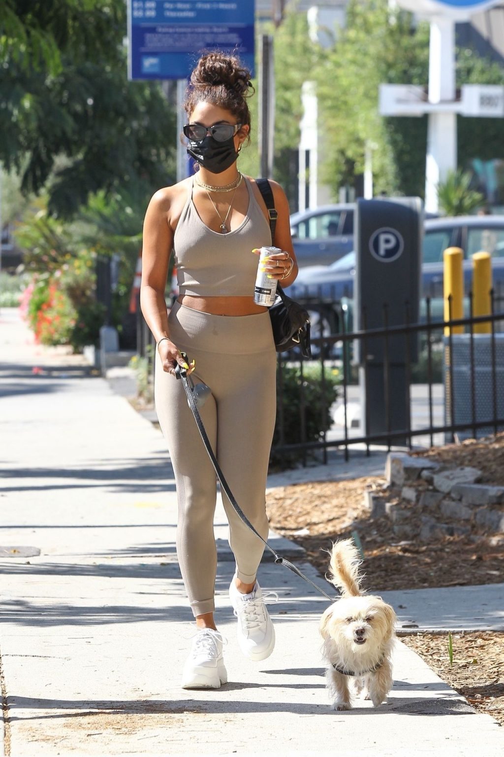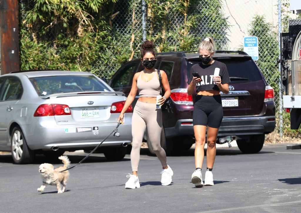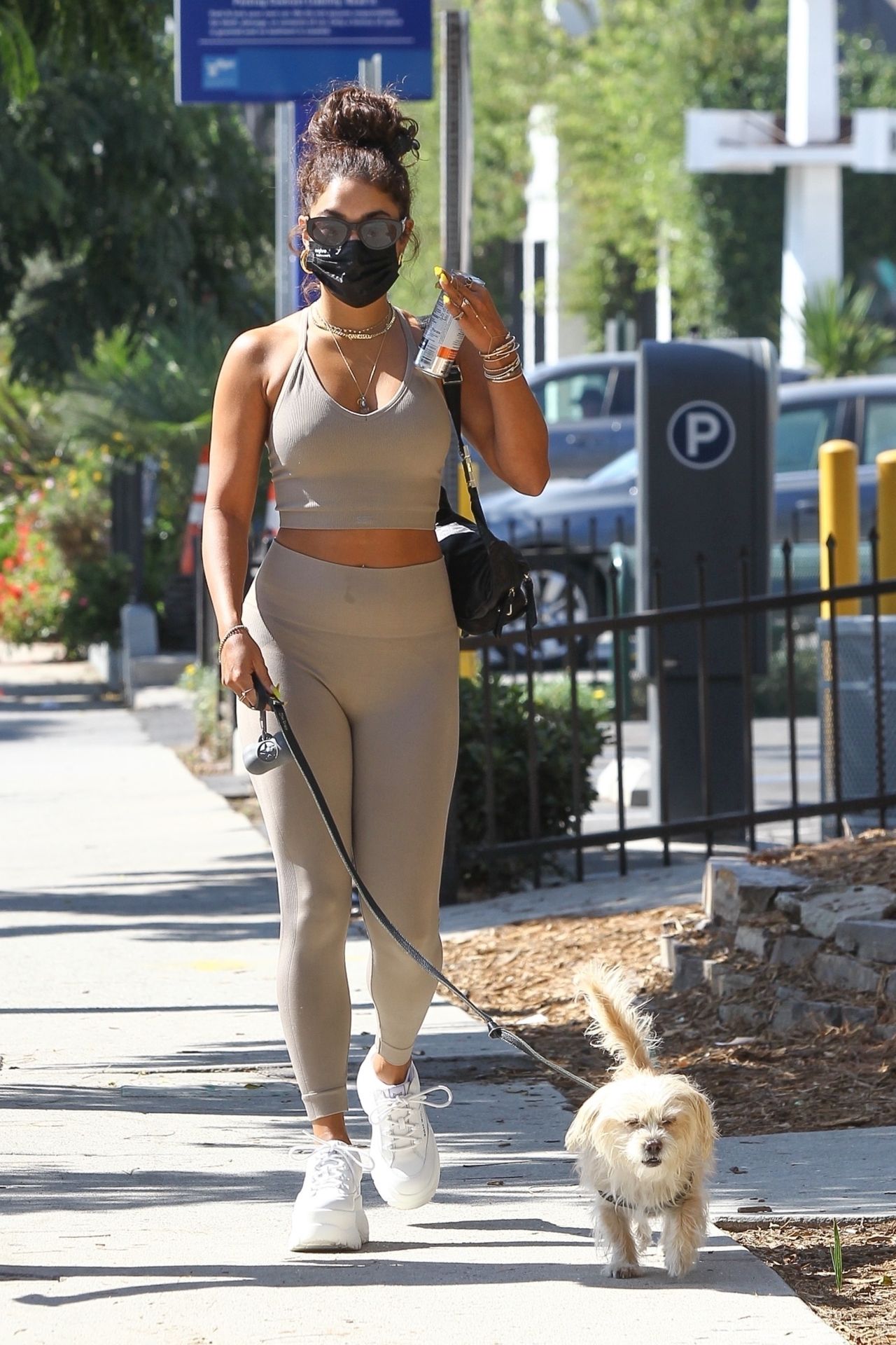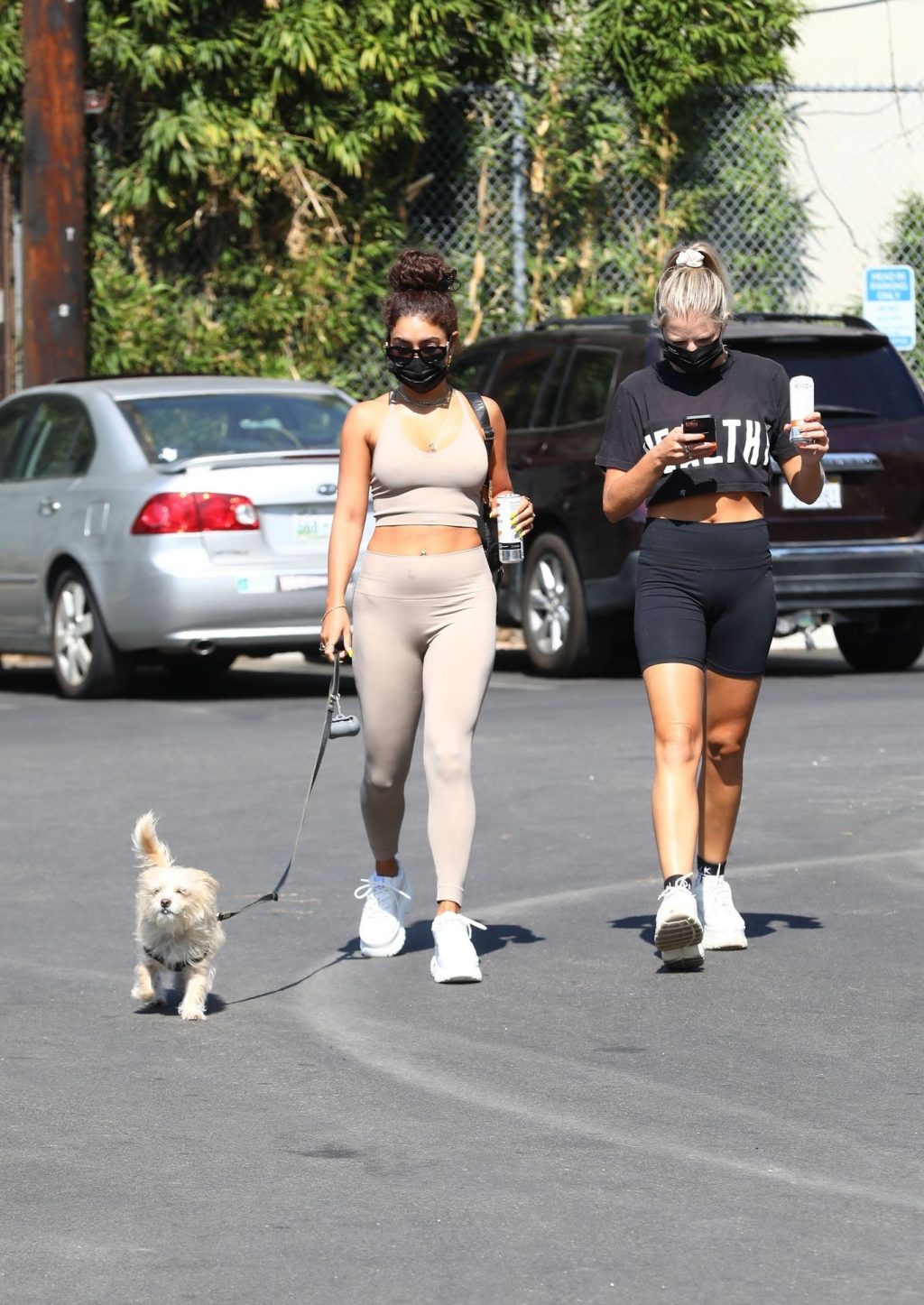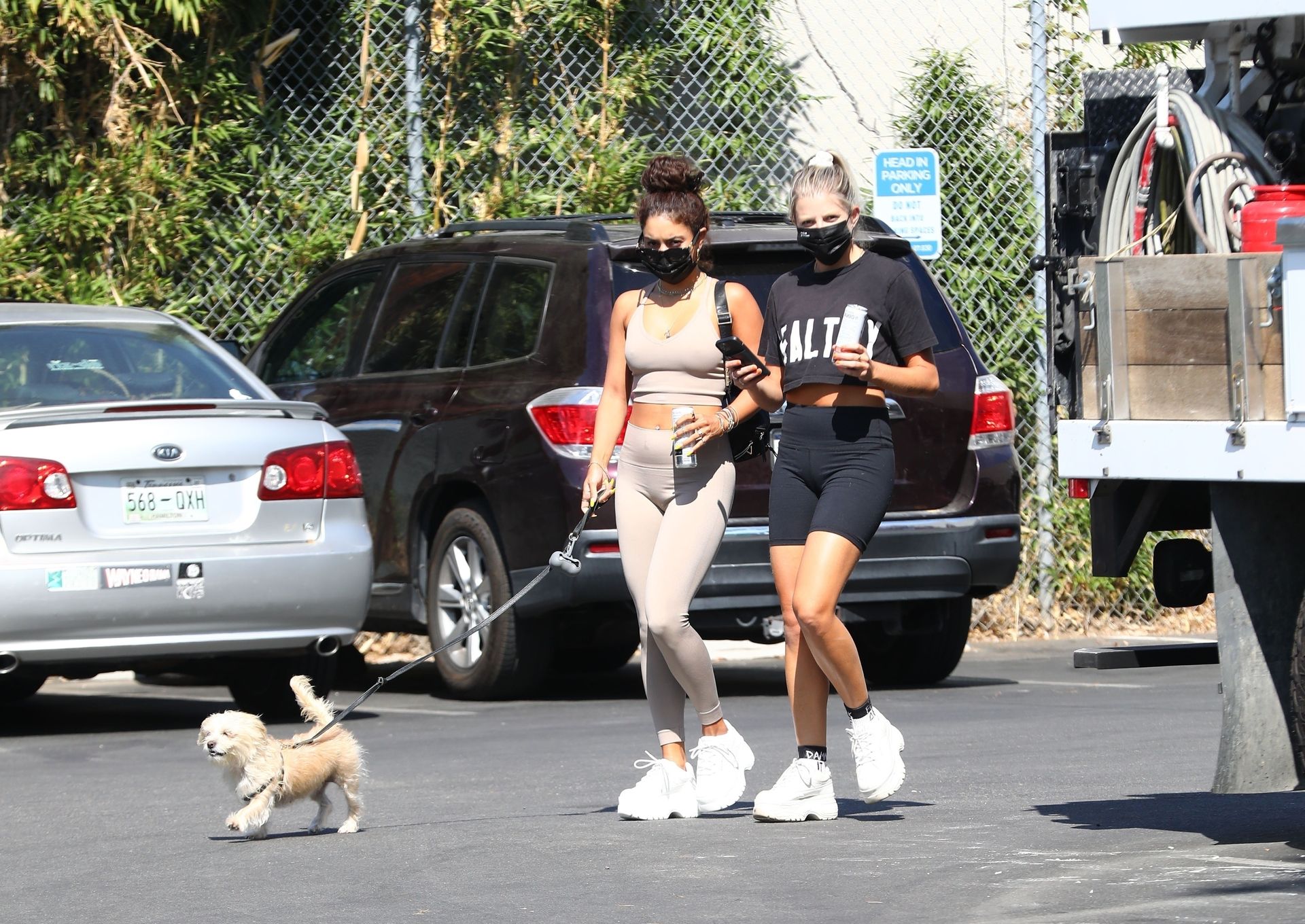 A Estrela do Fappening Vanessa Hudgens (31) leva seu cachorro para a academia em West Hollywood, 26/08/2020.
