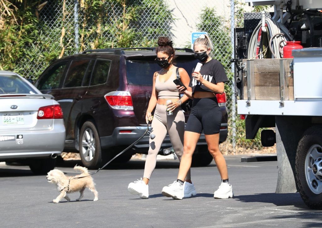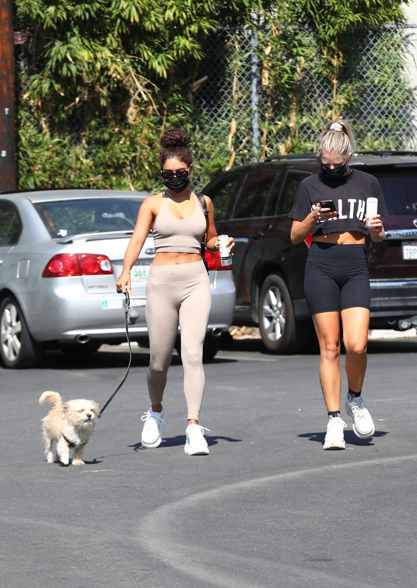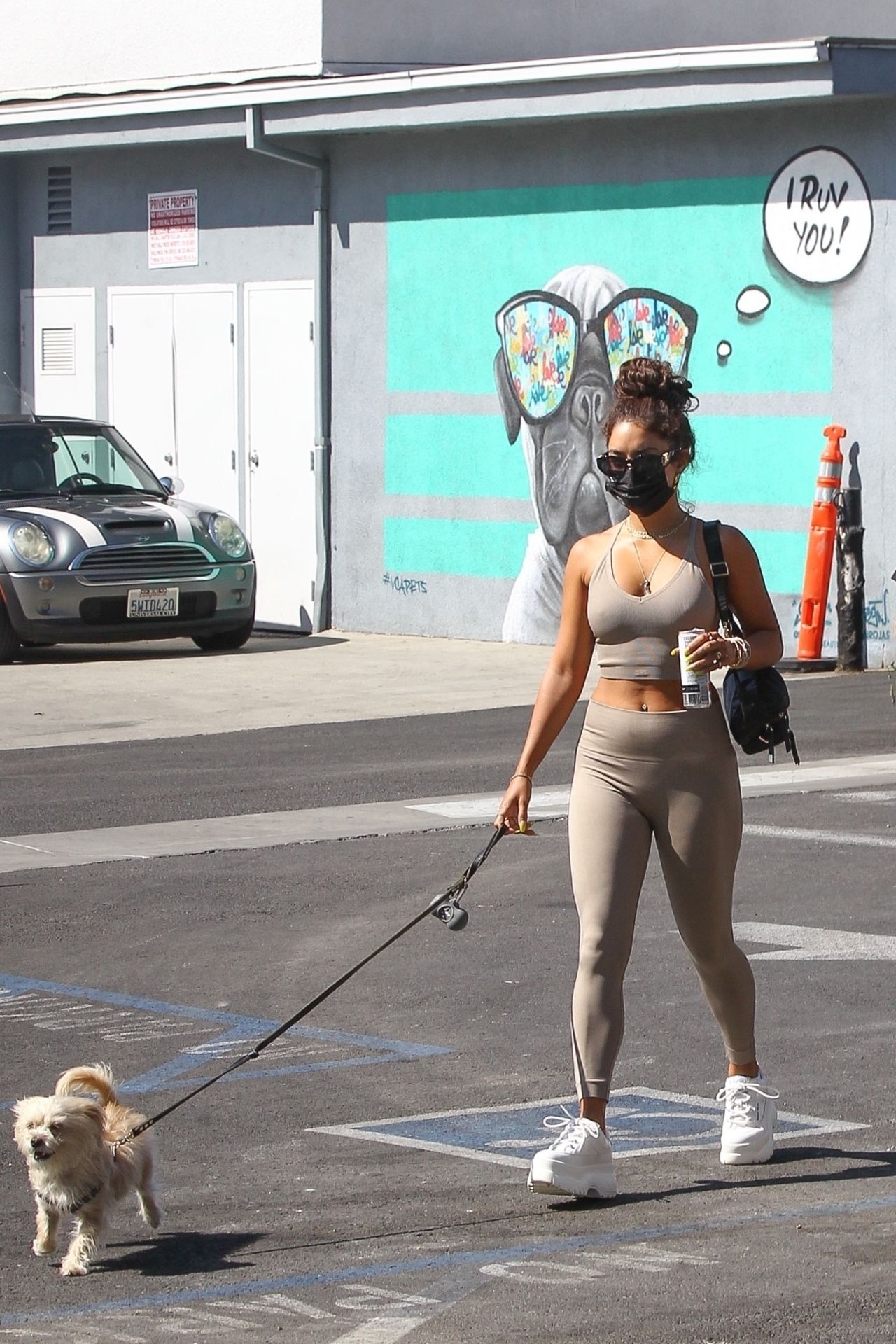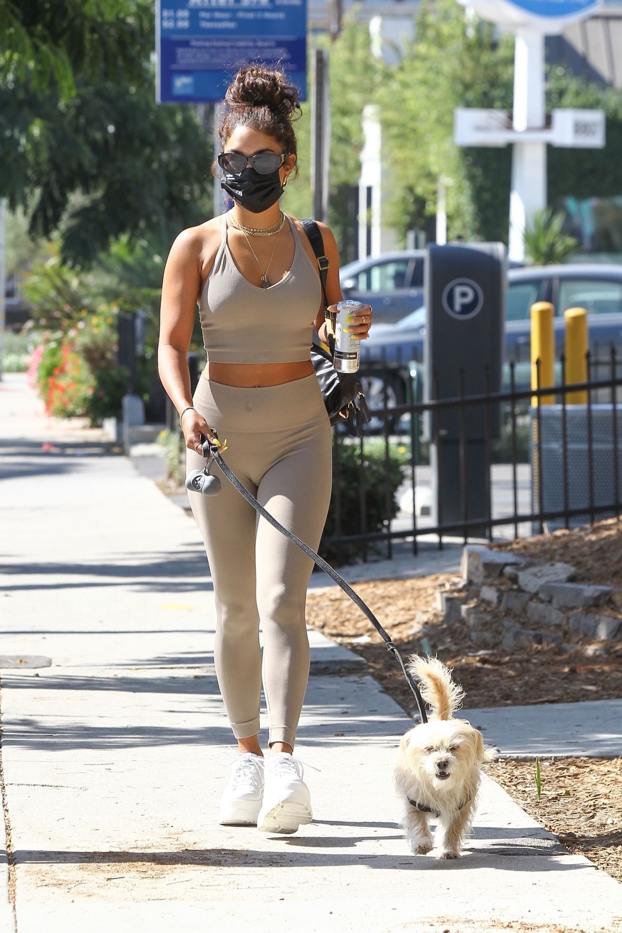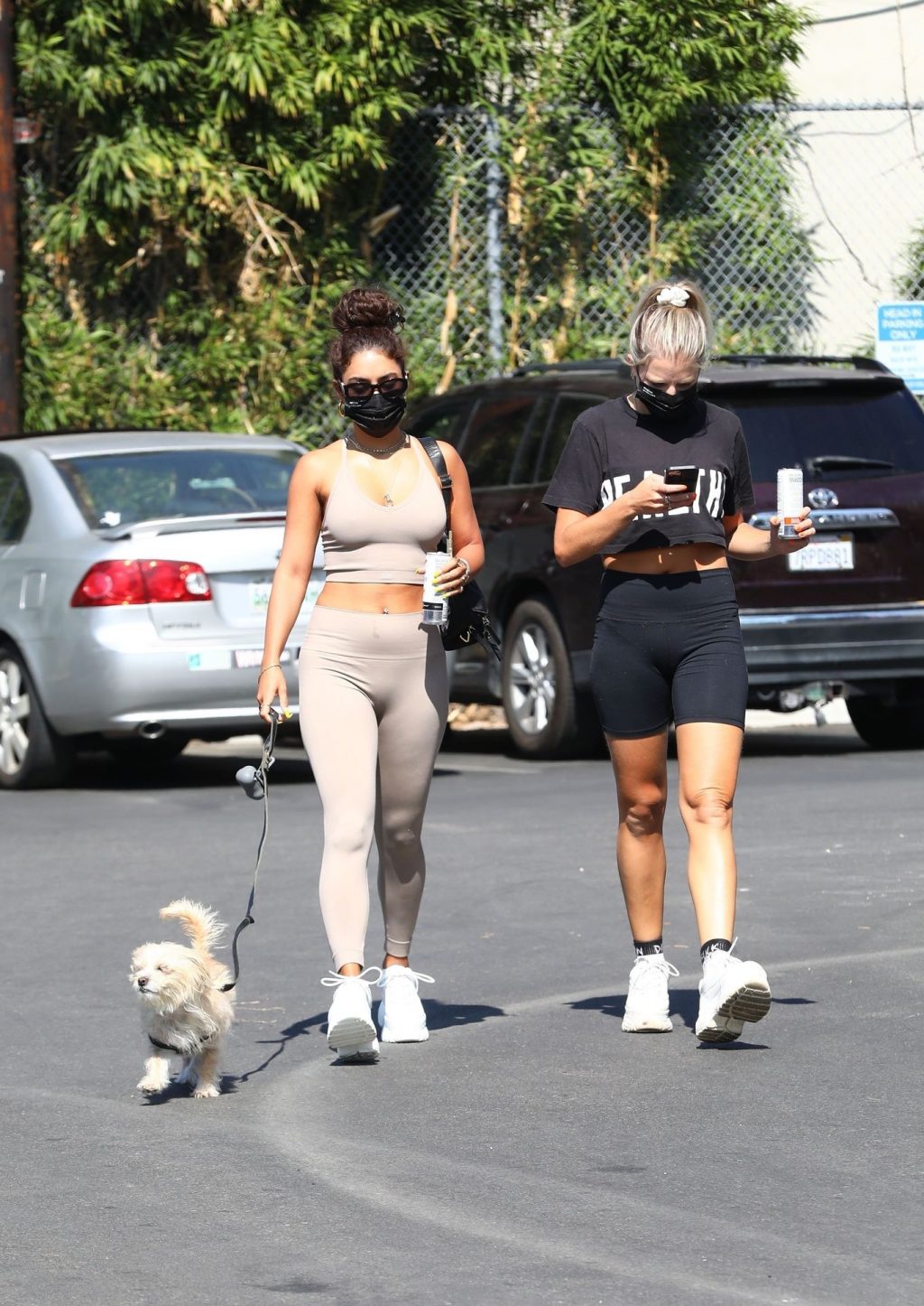 A Estrela do Fappening Vanessa Hudgens (31) leva seu cachorro para a academia em West Hollywood, 26/08/2020.