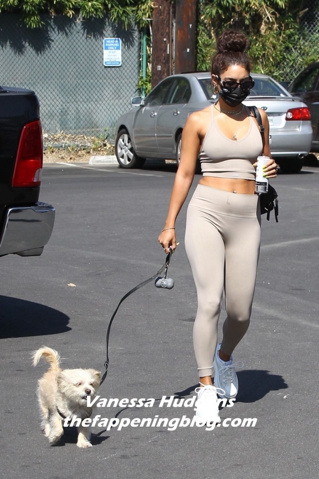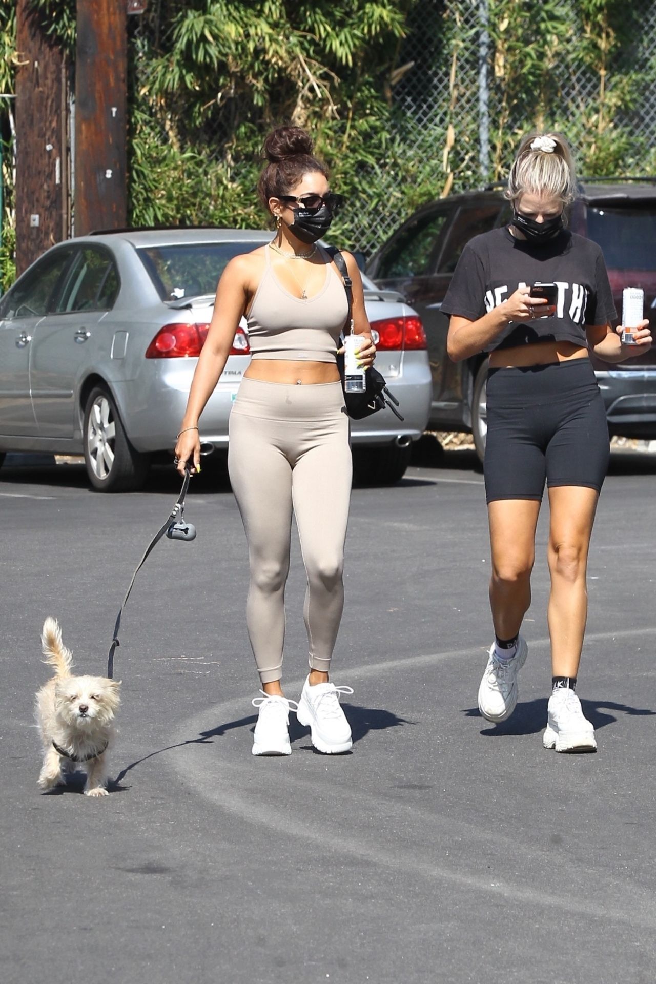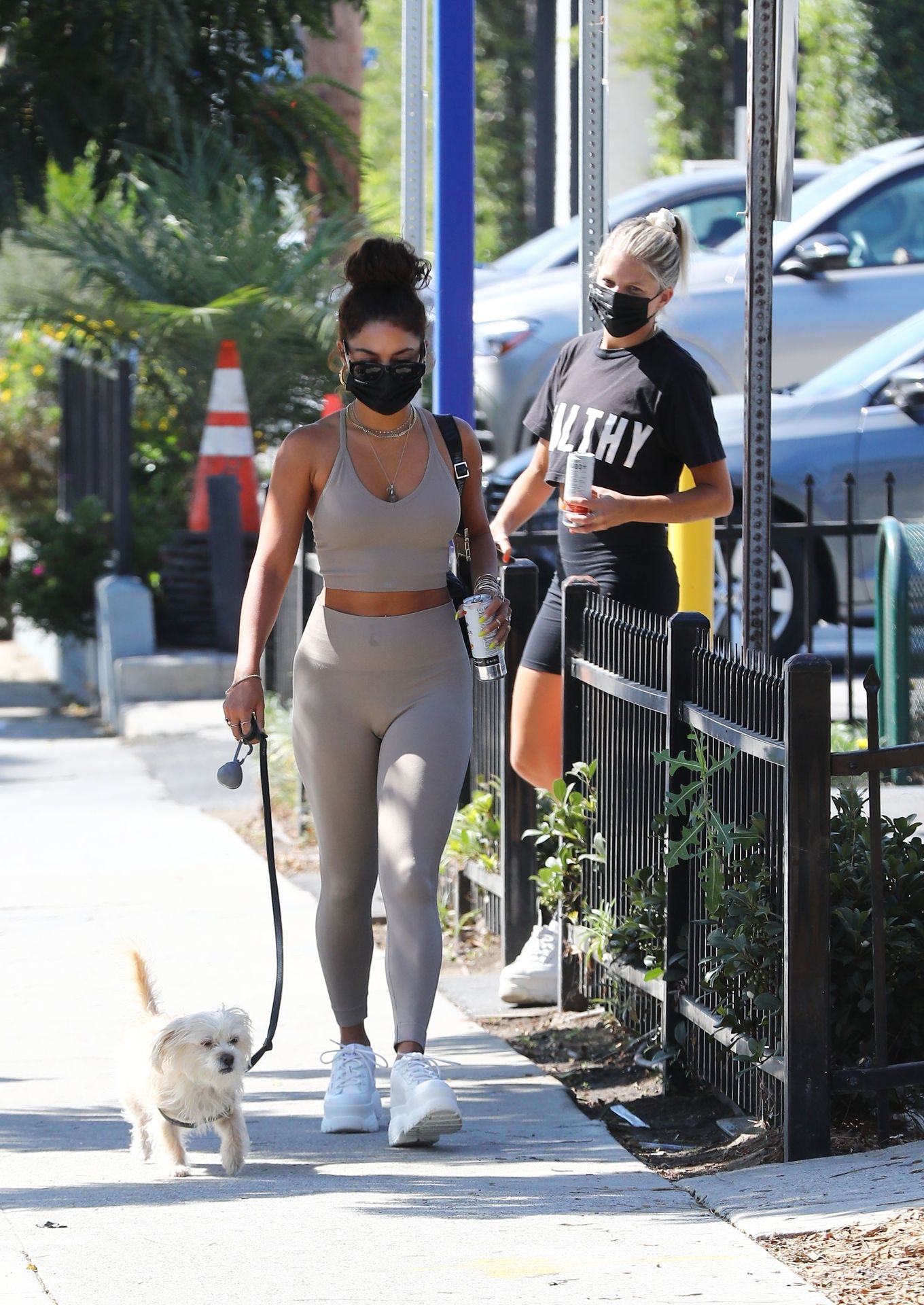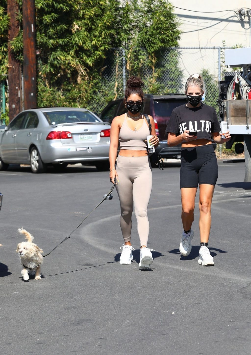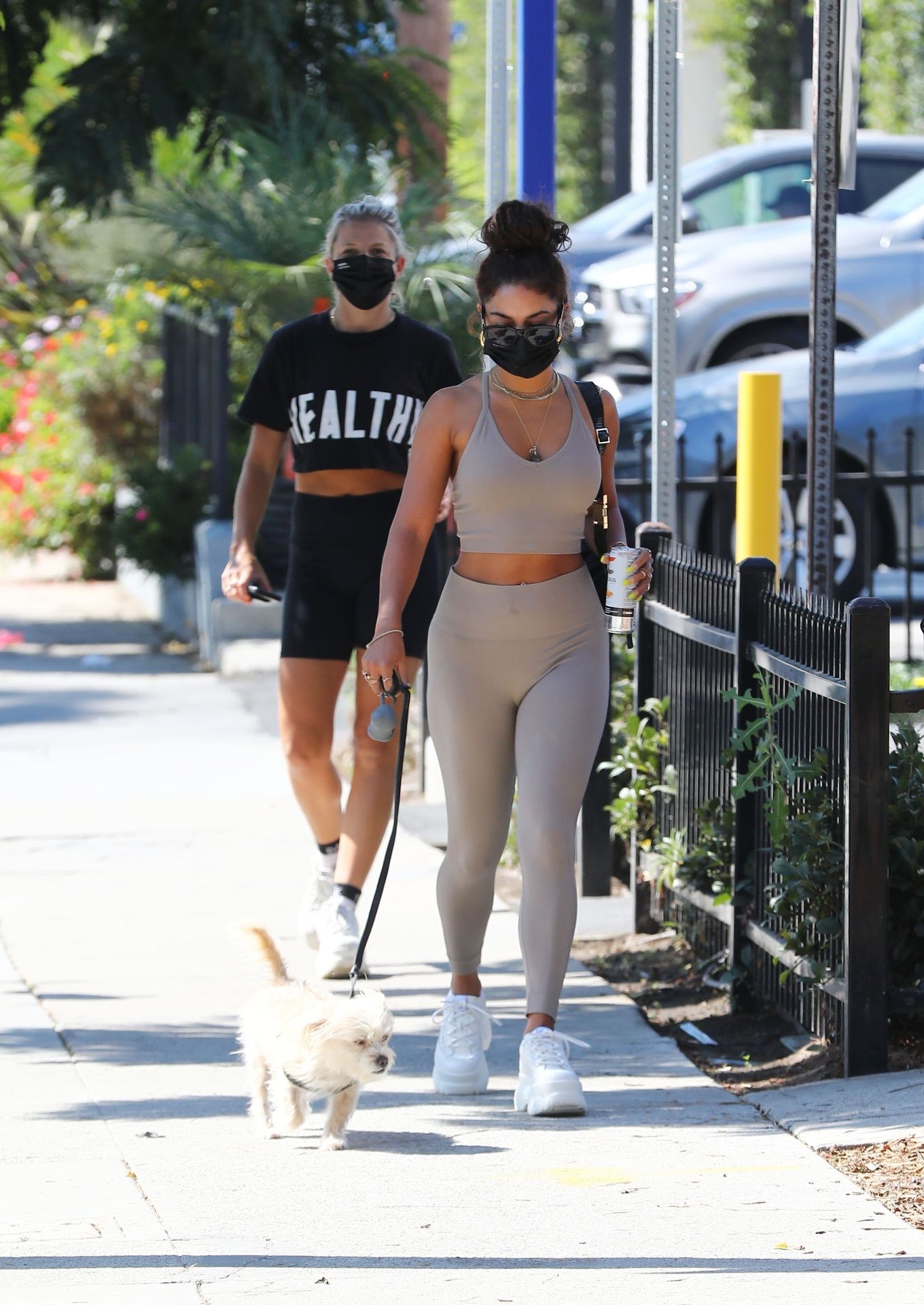 A Estrela do Fappening Vanessa Hudgens (31) leva seu cachorro para a academia em West Hollywood, 26/08/2020.