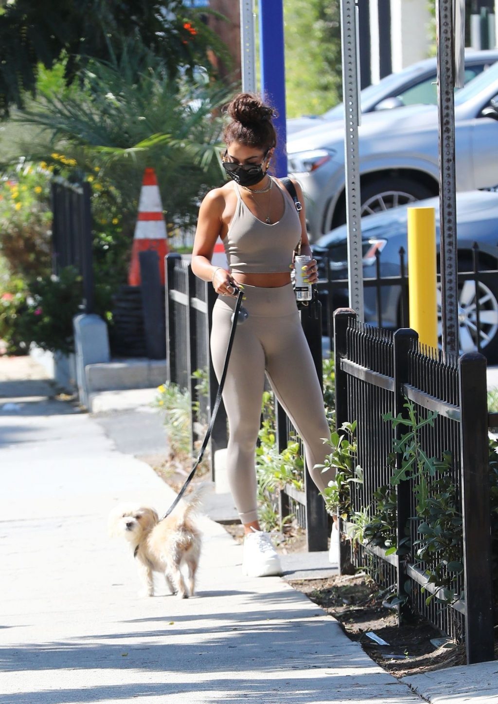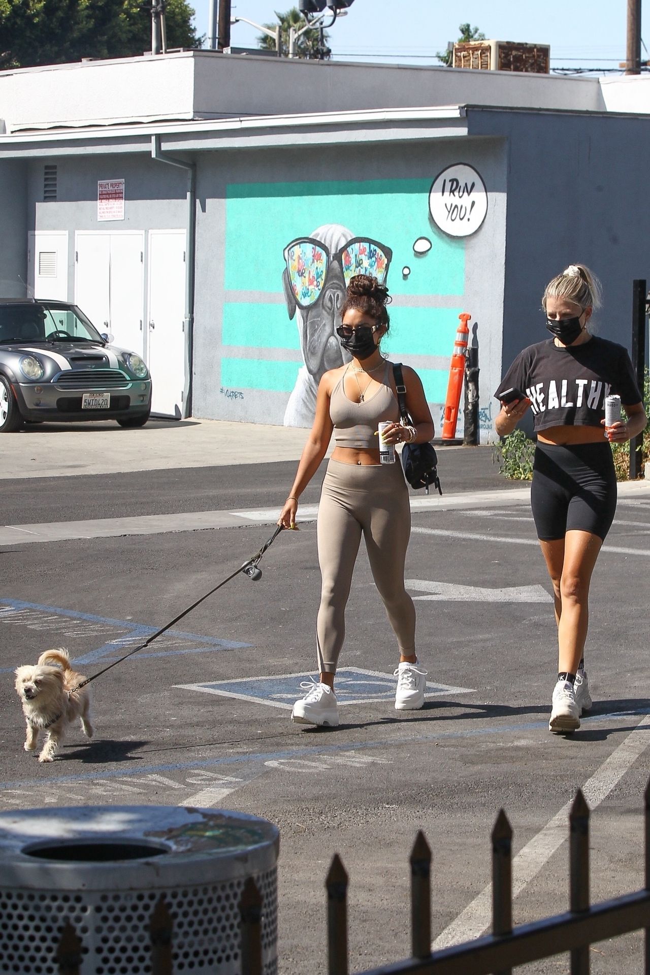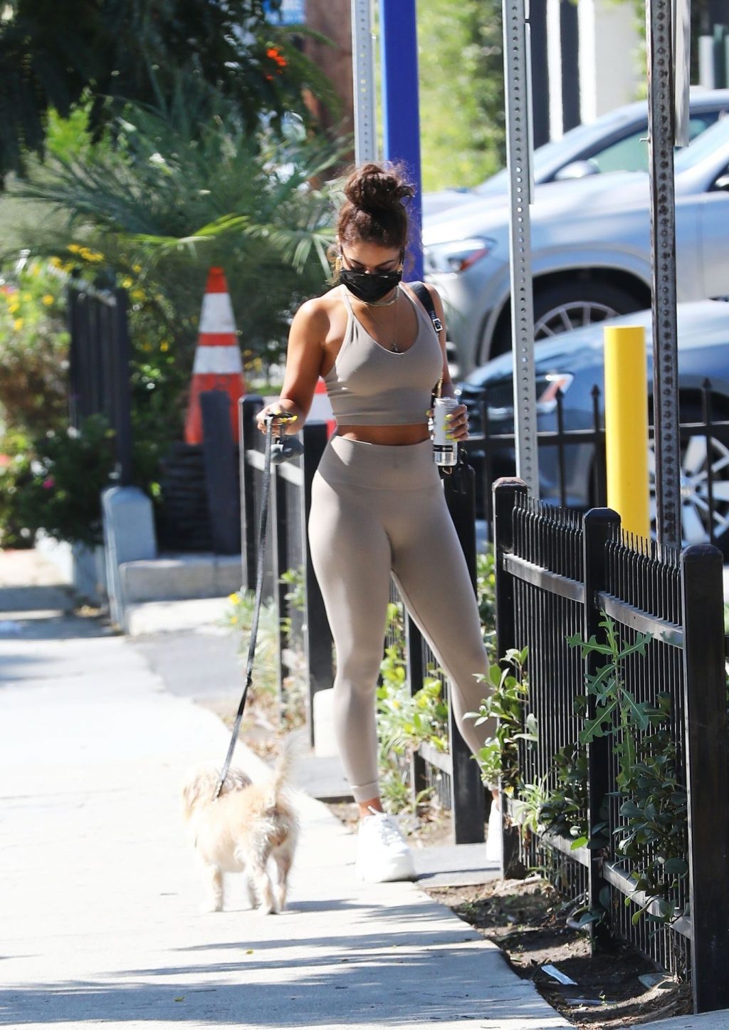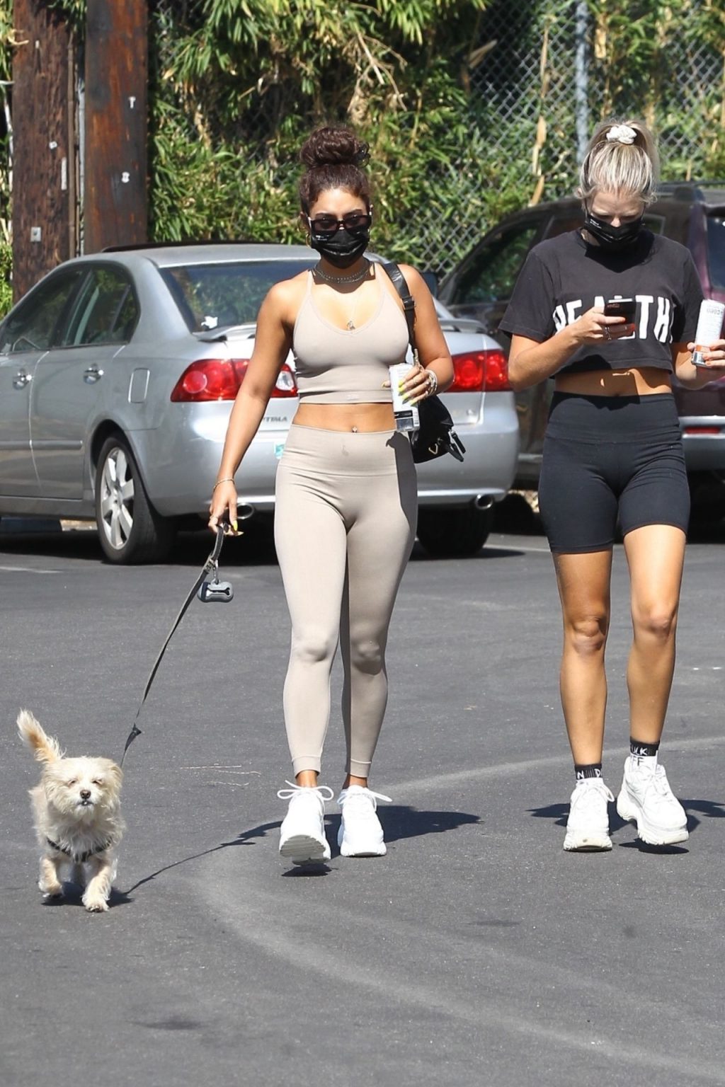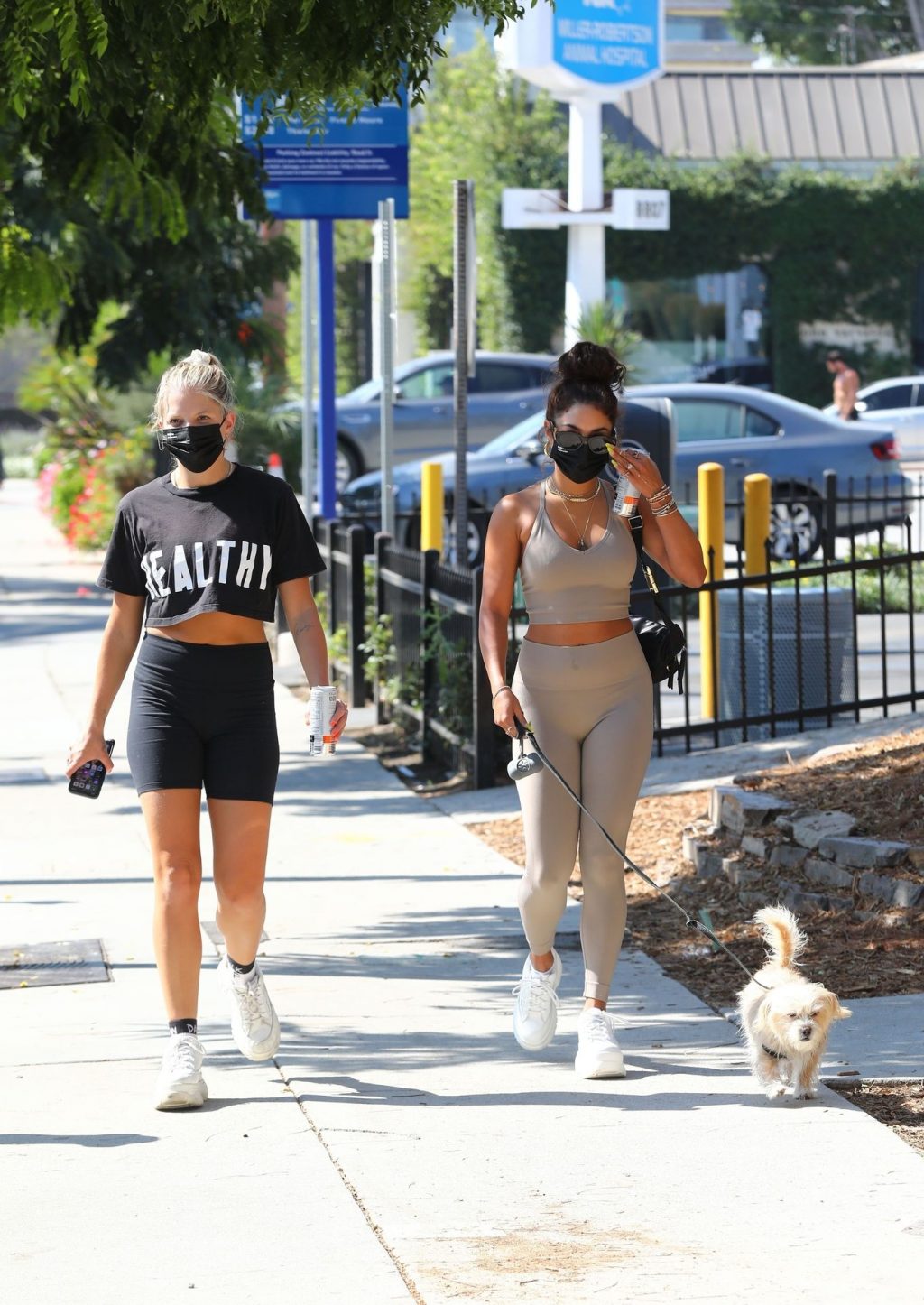 A Estrela do Fappening Vanessa Hudgens (31) leva seu cachorro para a academia em West Hollywood, 26/08/2020.
