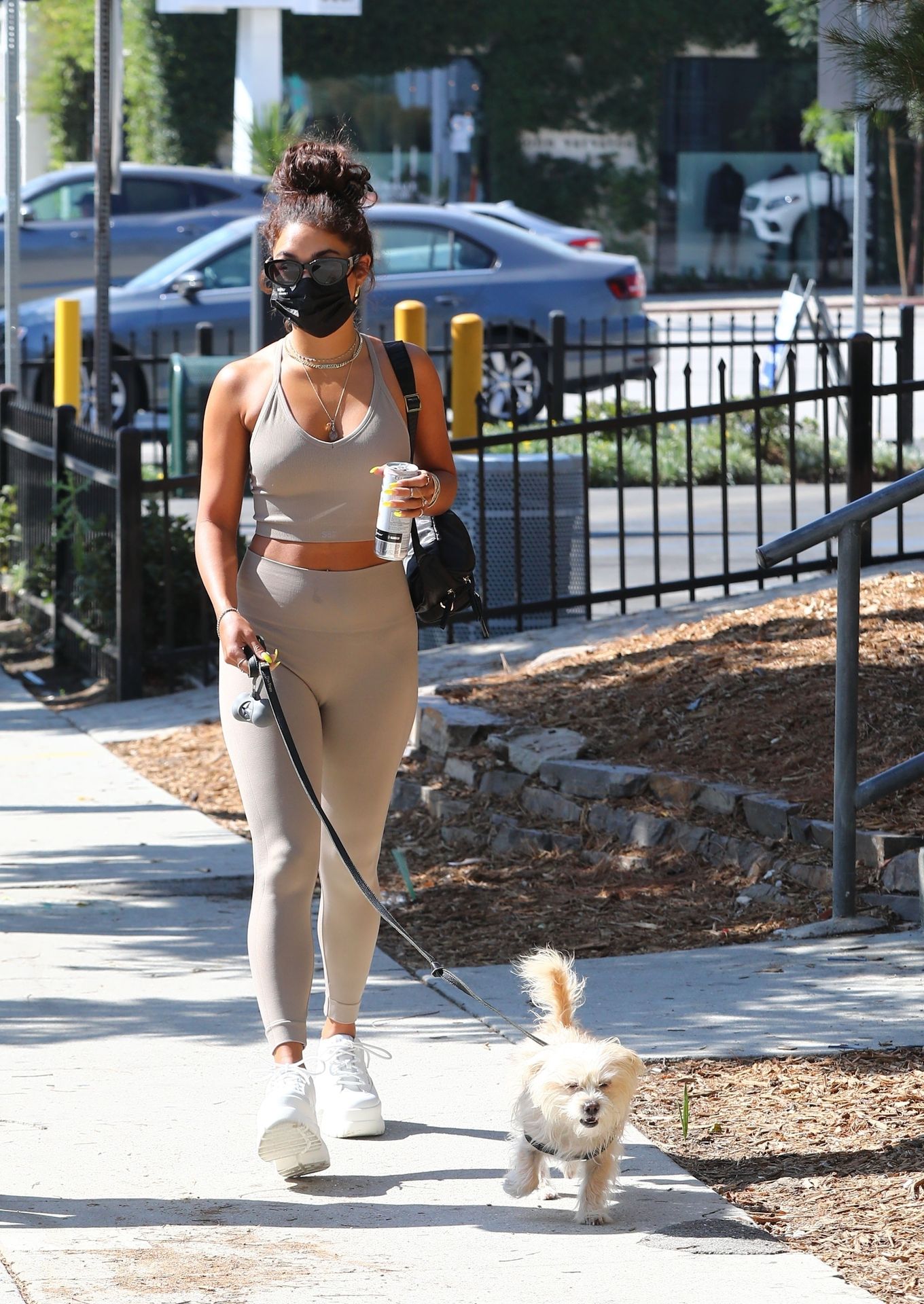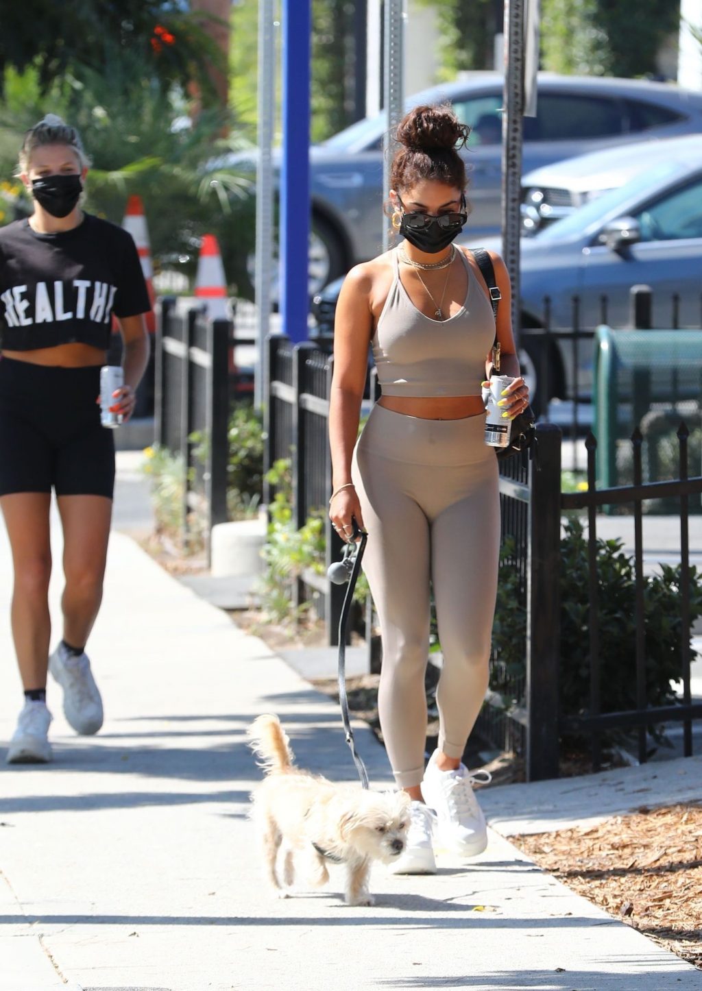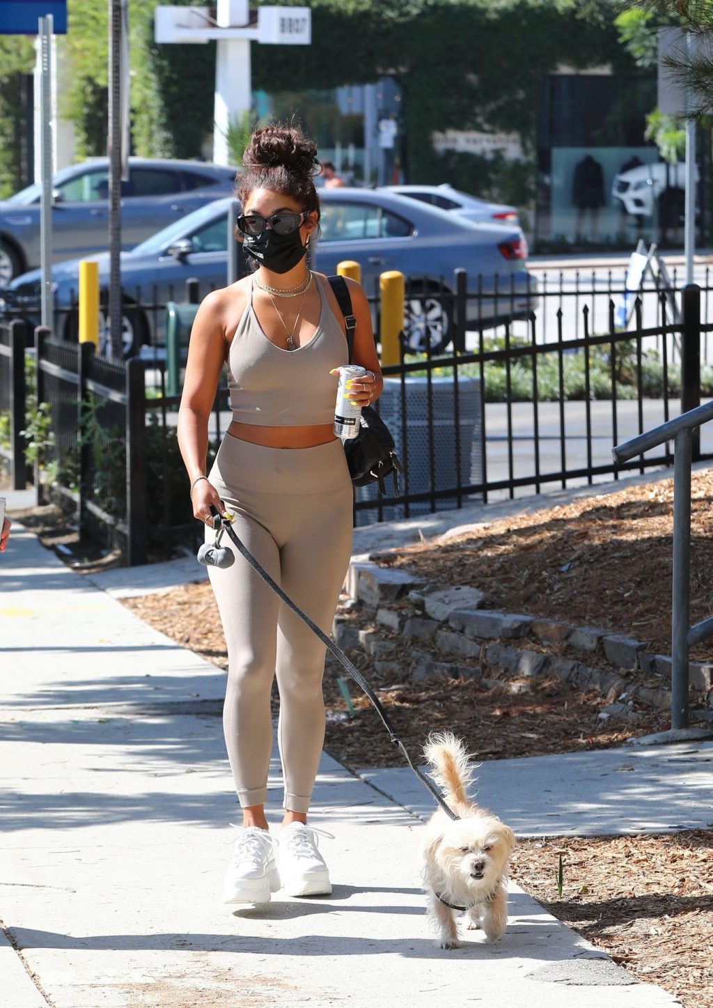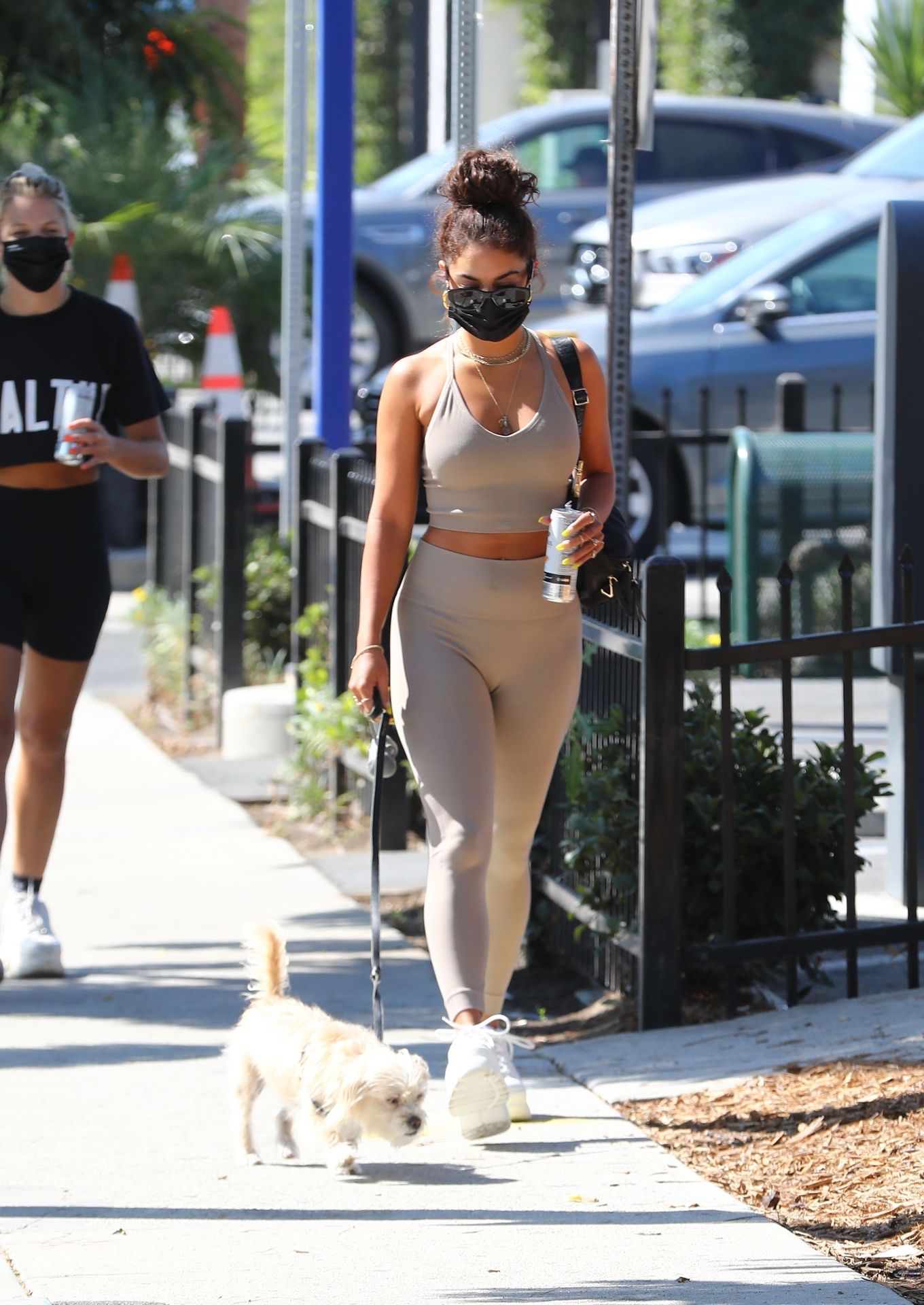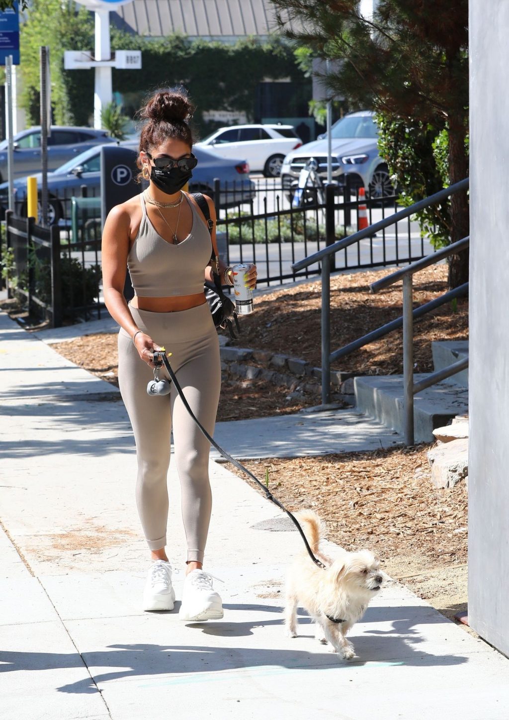A Estrela do Fappening Vanessa Hudgens (31) leva seu cachorro para a academia em West Hollywood, 26/08/2020.